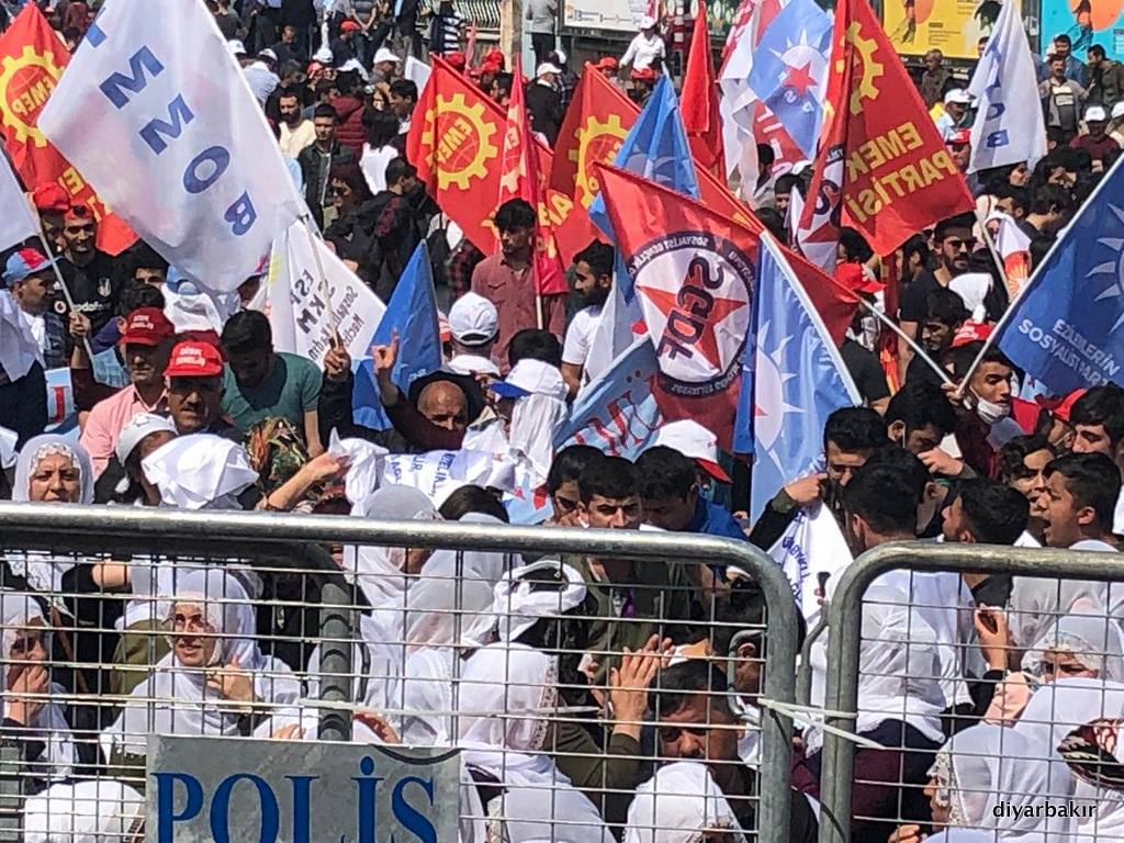 İnsanca bir yaşam ve daha iyi çalışma koşulları talebinin öne çıktığı 1 Mayıs’ta güvenceli iş, güvenceli gelecek, demokrasi ve barış temelinde sendikal hak ve özgürlüklerin, hak aramanın önünün açıldığı, grevlerin yasaklanmadığı, düşünmenin, düşünceyi ifade etmenin cezalandırılmadığı, emeğin, eşitliğin, özgürlüğün, hukuk ve adalet ile laikliğin hâkim olduğu bir ülke ve gelecek için yüzbinler yerini aldı.