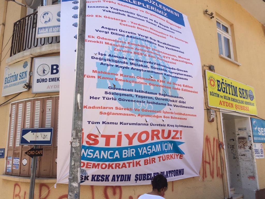 Daha sonra Aydın’a geçen Muğla kolumuz, burada Efeler belediye Başkanı’nı ziyaret etti, TİS taleplerimize ve ihraçlara ilişkin basın açıklaması gerçekleştirerek KESK Aydın Şubeler Platformumuz tarafından İzmir’e uğurlandı.