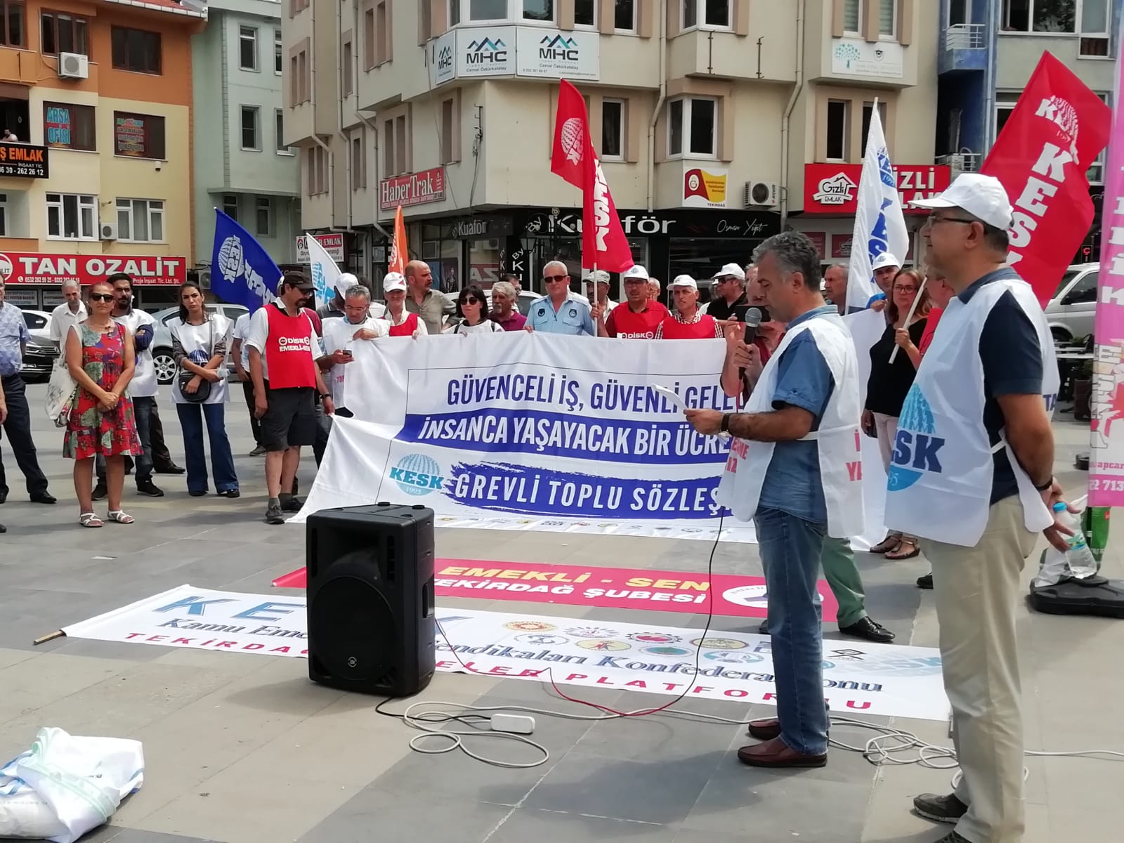 Basın açıklaması beş milyon kamu emekçisinin ve kamu emeklisinin ortak ekonomik, sosyal, demokratik, özlük ve mesleki hak ve çıkarlarını temel alan TİS taleplerimizin kamuoyu ile paylaşılması ve KESK Heyetininin Tekirdağ’a uğurlanmasıyla sona erdi.