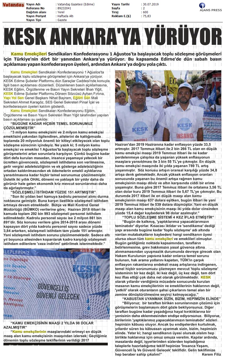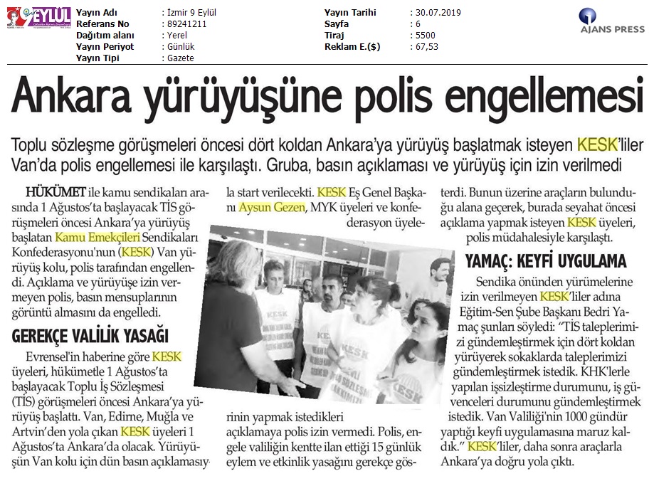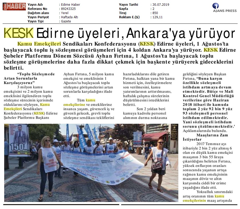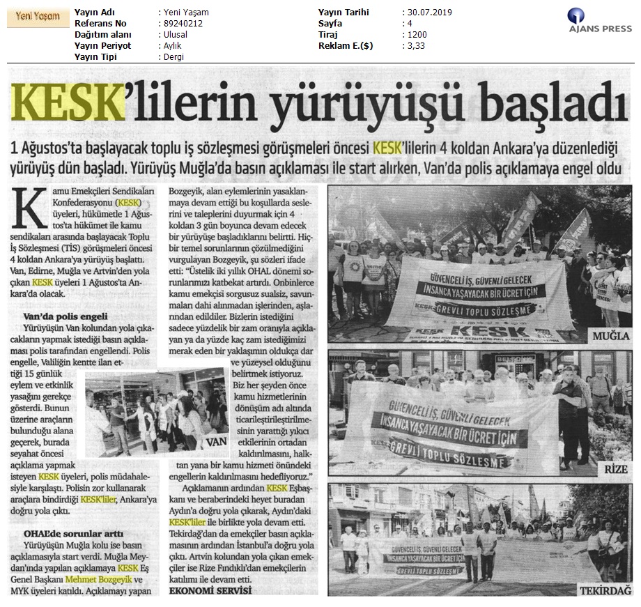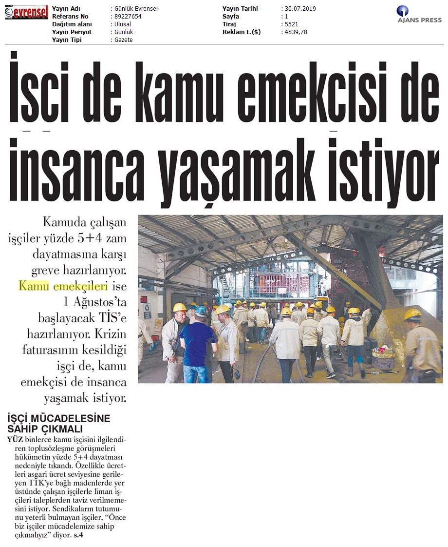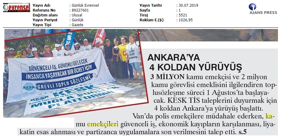 TİS Yürüyüşümüz Basında Geniş Yankı Buldu