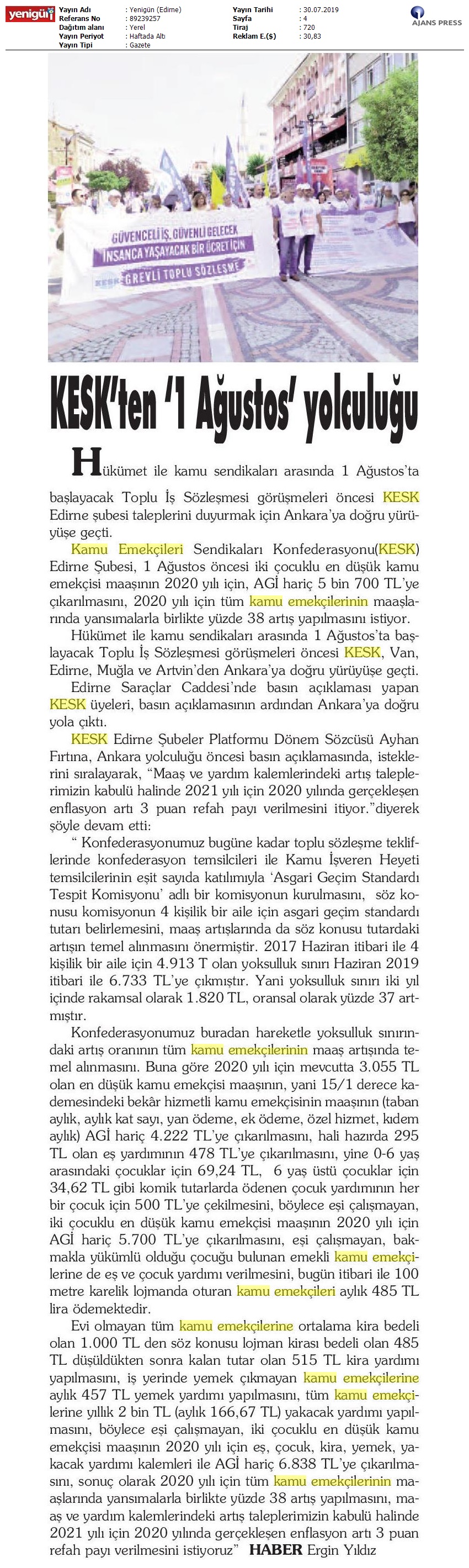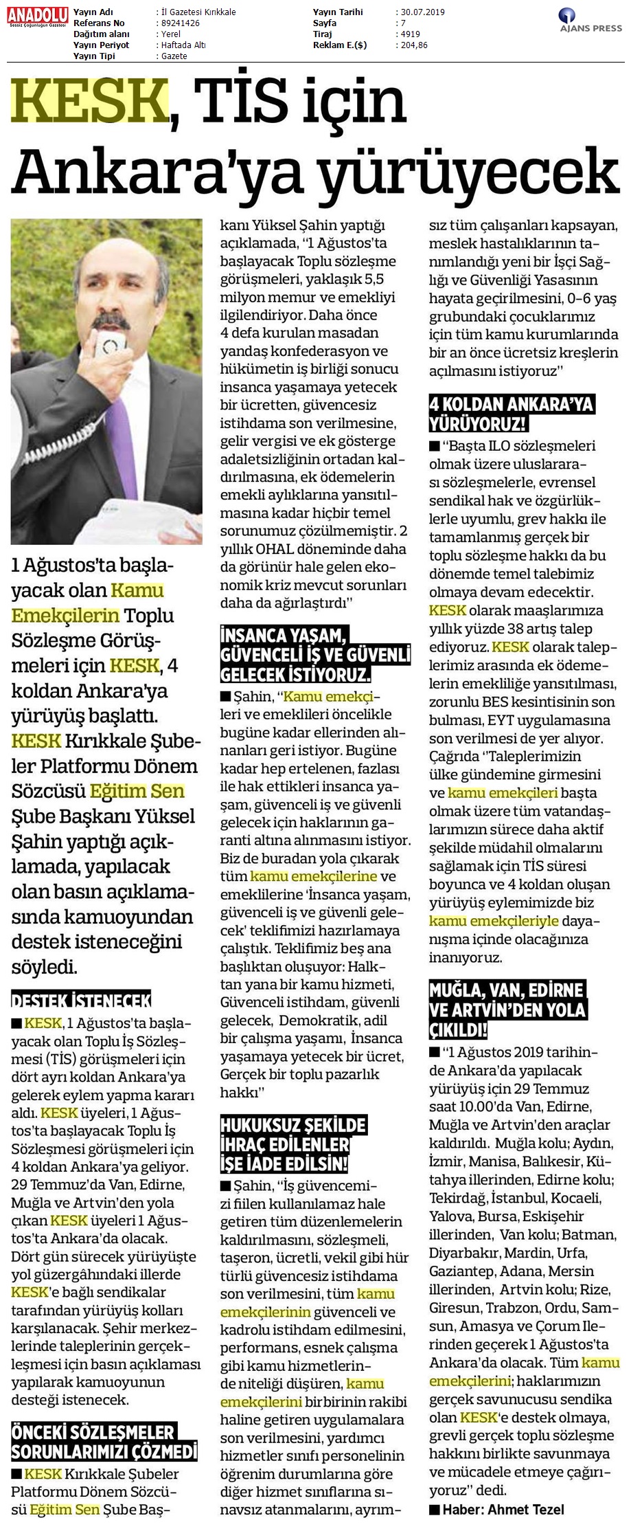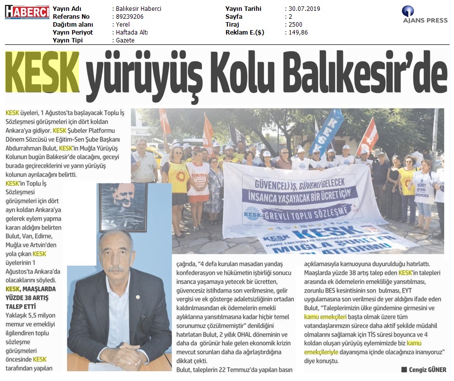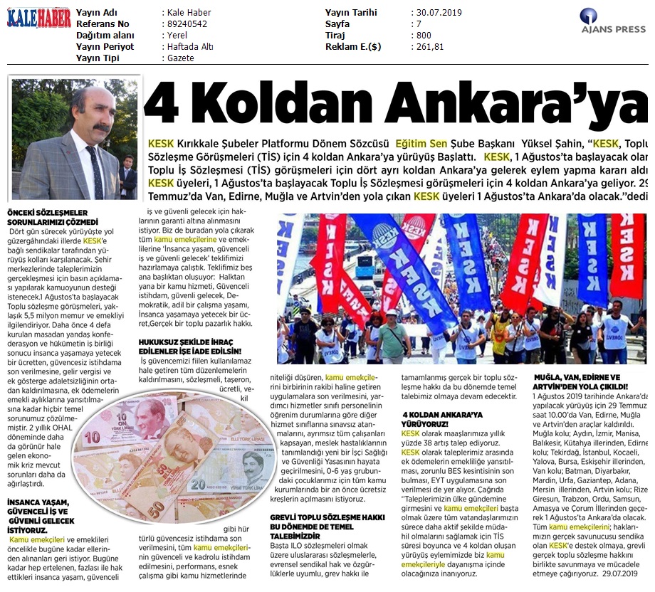 TİS Yürüyüşümüz Basında Geniş Yankı Buldu