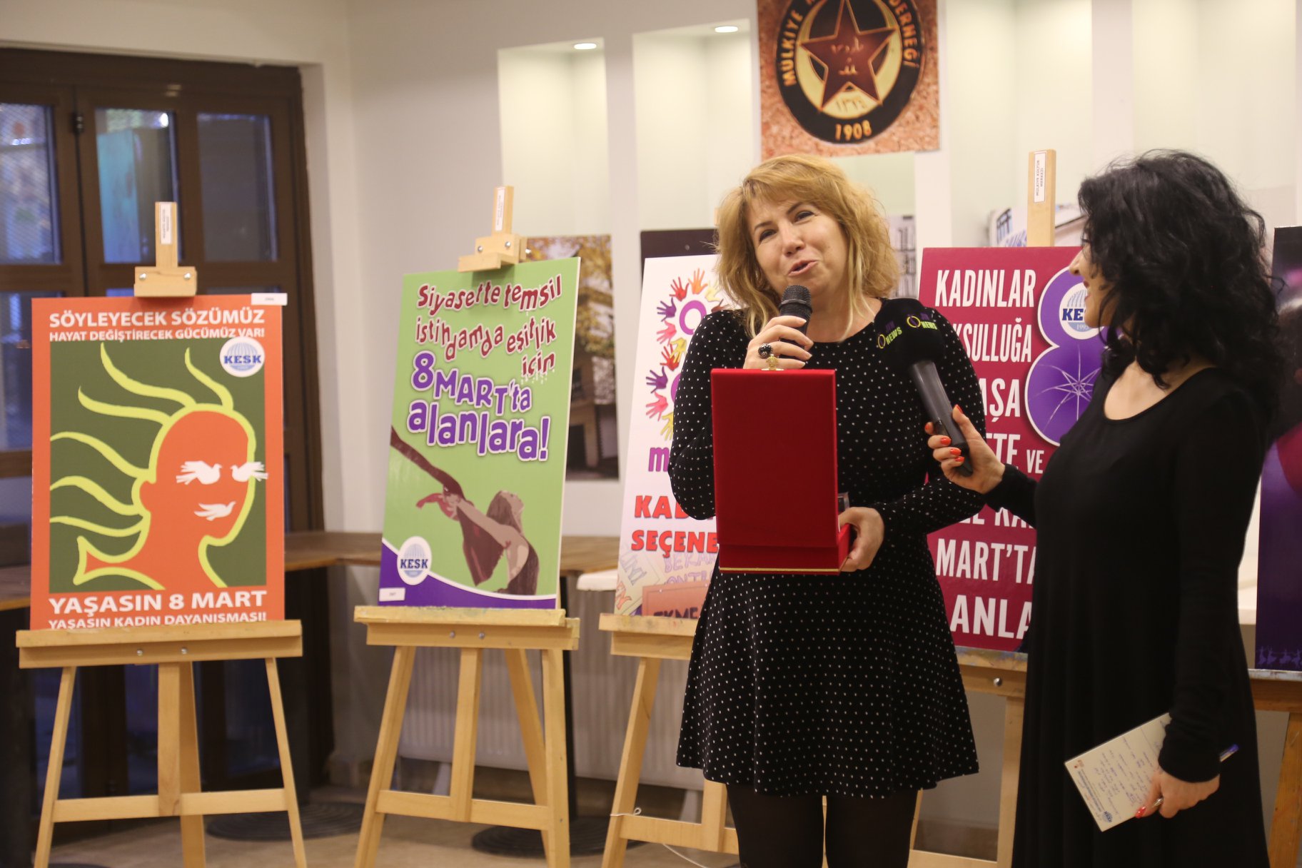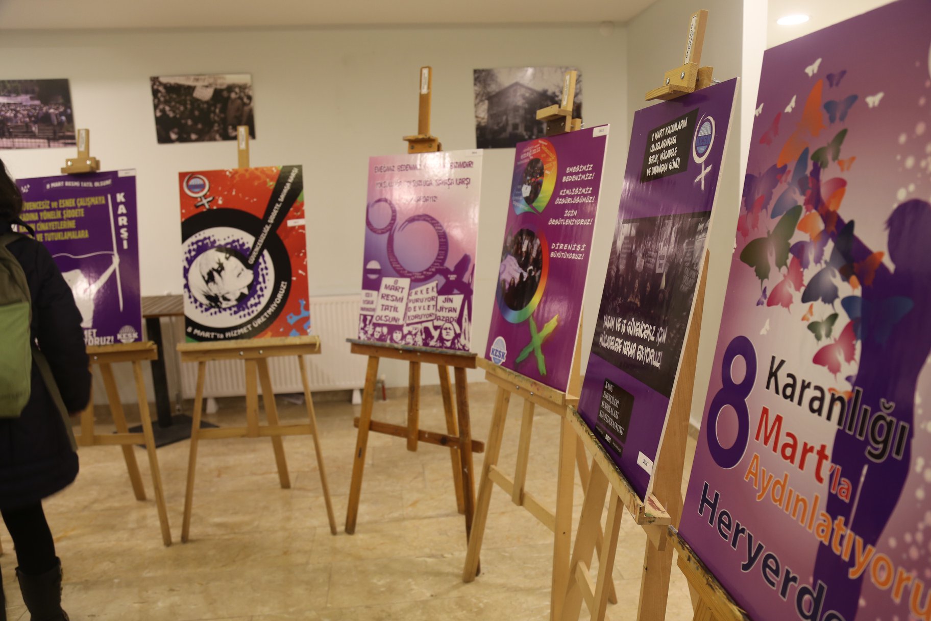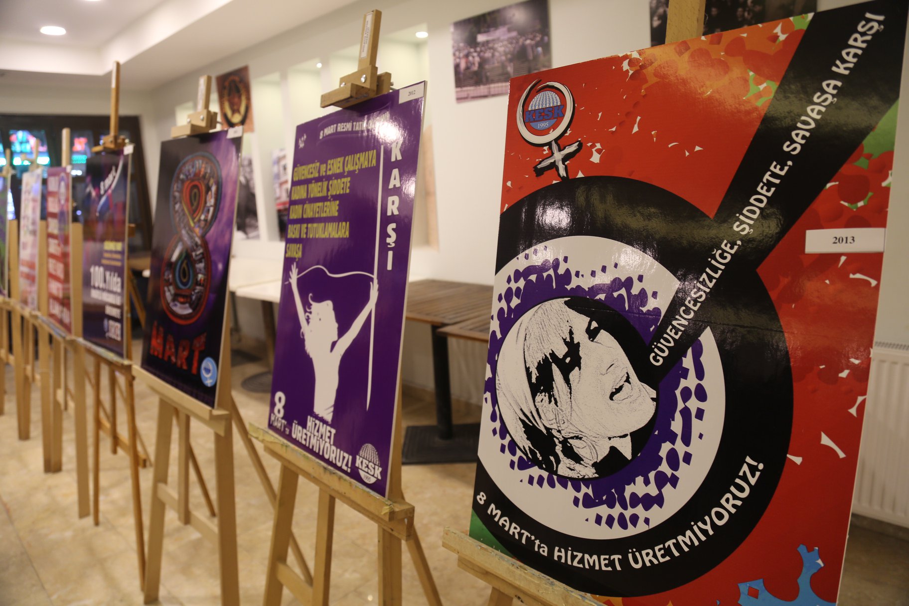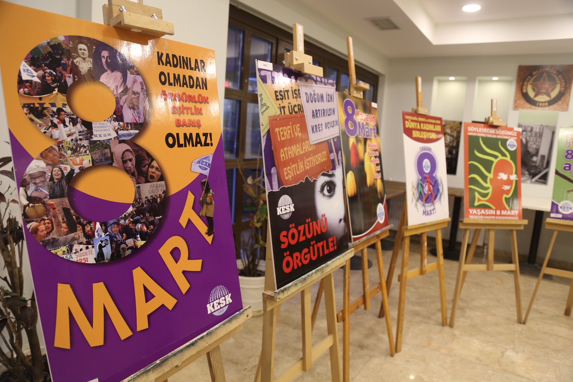 8 Mart 2020 afiş yarışmasına katılan finalistlerin eserleri ve 2002’den bu yana KESK’in kullandığı 8 Mart afişleri 24-25-26 Şubat tarihleri arasında Mülkiyeliler Birliği’nde sergilenecek.