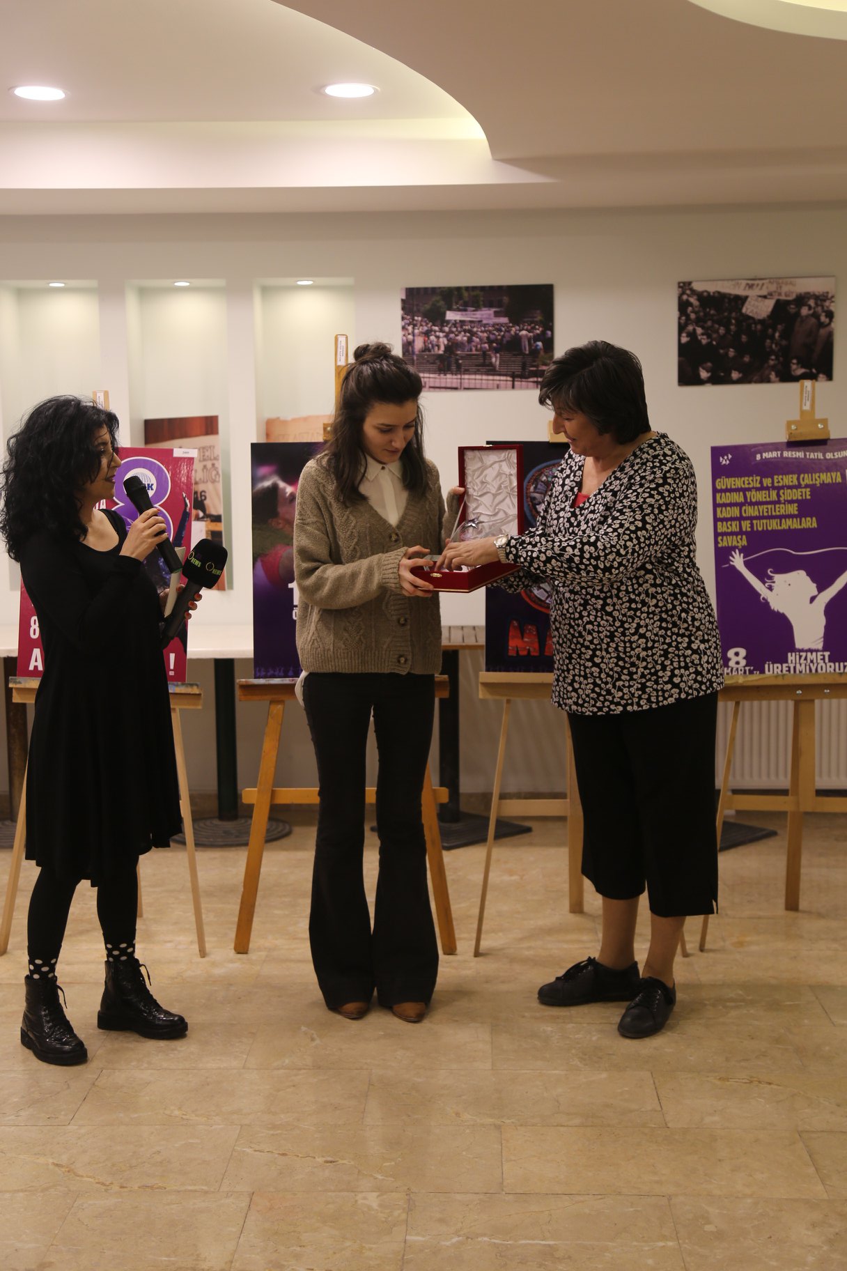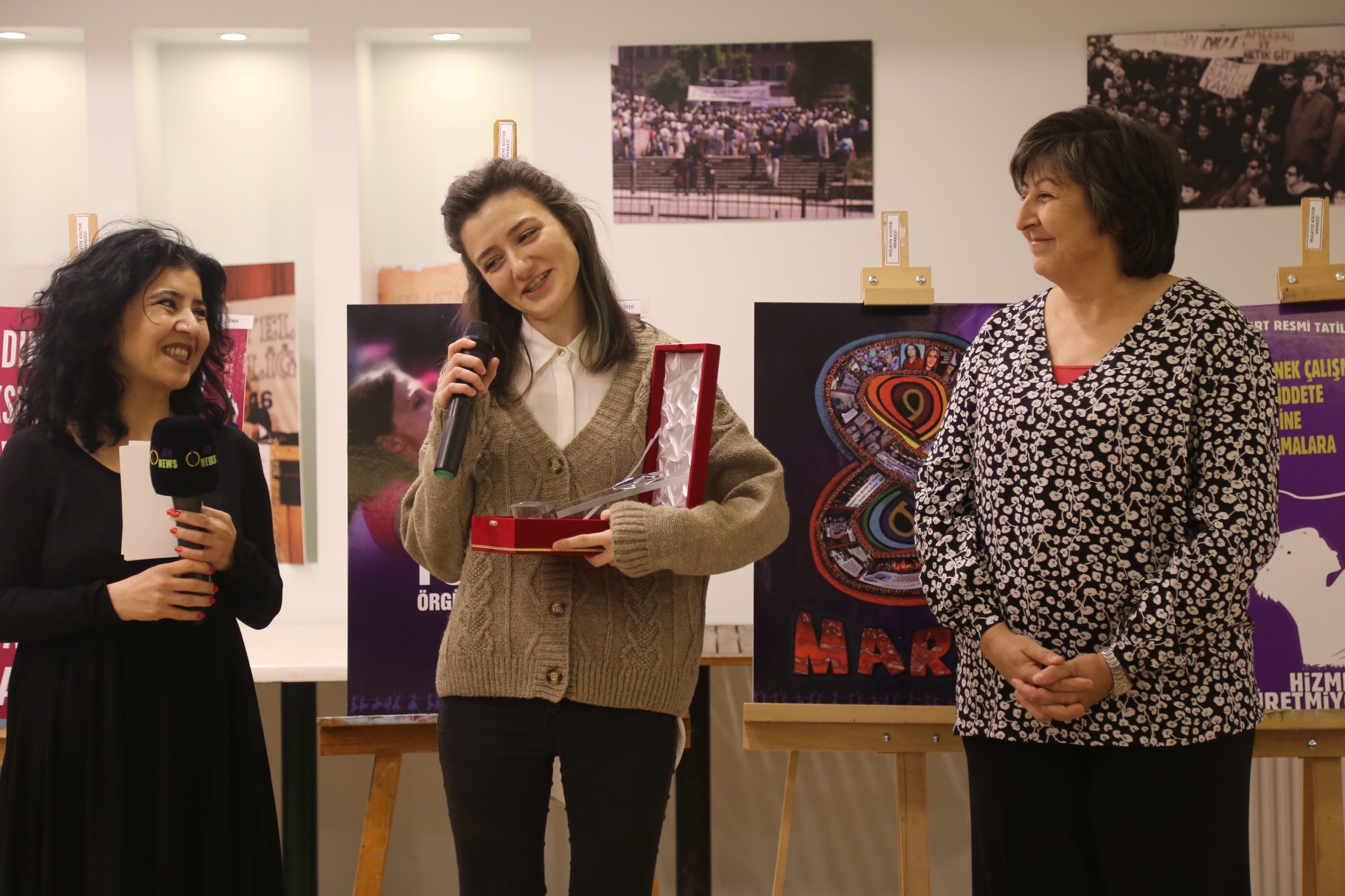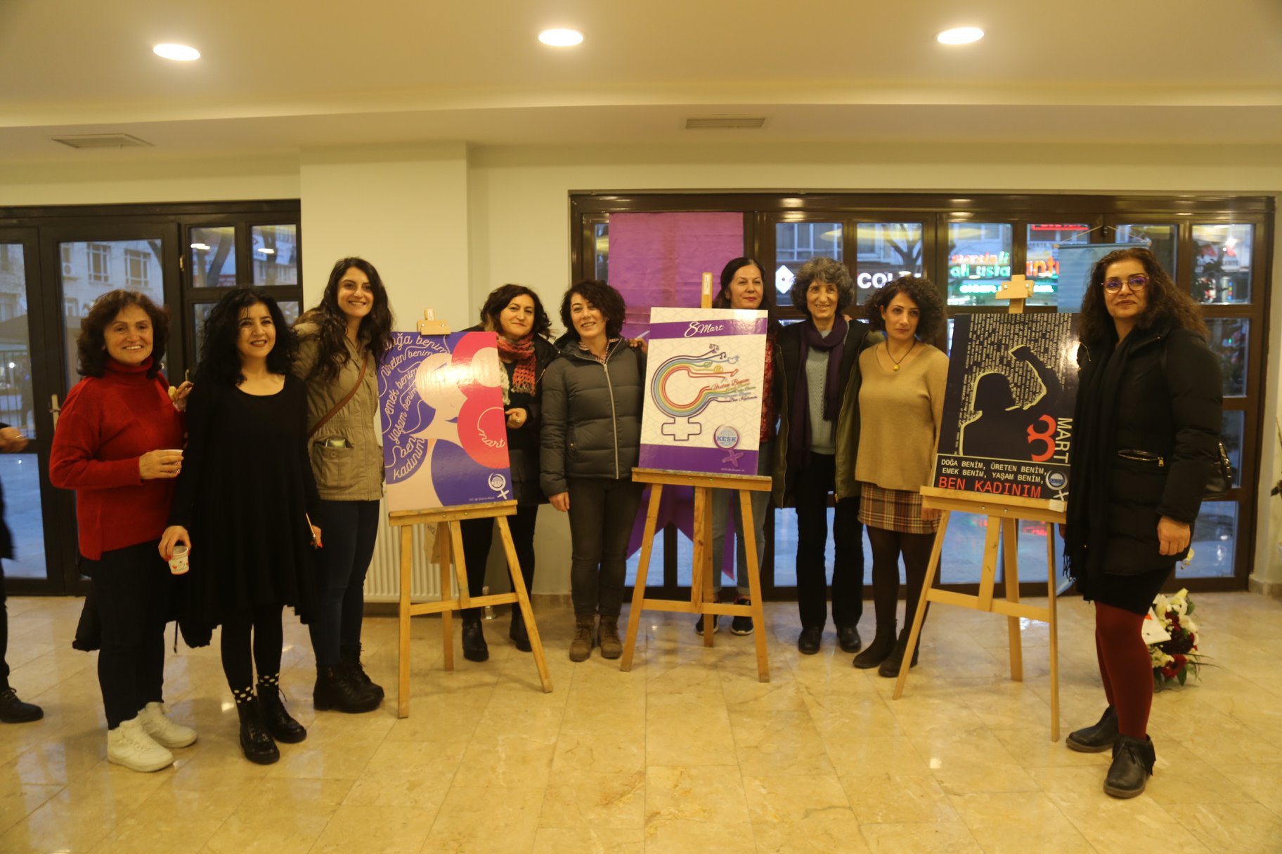 24 Şubat Pazartesi günü açışını gerçekleştirdiğimiz “Dünden Bugüne 8 Mart Afişlerimiz” ve 8 Mart 2020 Afiş tasarımı yarışmamız sonucu seçilen ilk üç afişi Mülkiyeliler Birliği Kültür Merkezi Sergi Salonu’nda sergileyerek ödüllerimizi verdik. “Doğa Benim, Üreten Benim, Emek Benim, Yaşam Benim, Ben Kadınım” teması ile yarışmayla belirlenen 2020 yılı 8 Mart ödüllerini Selma Nesibe Baloğlu, Gonca Ocakçı ile Şeyma Çetmen ve Yağmur Kaya aldı.