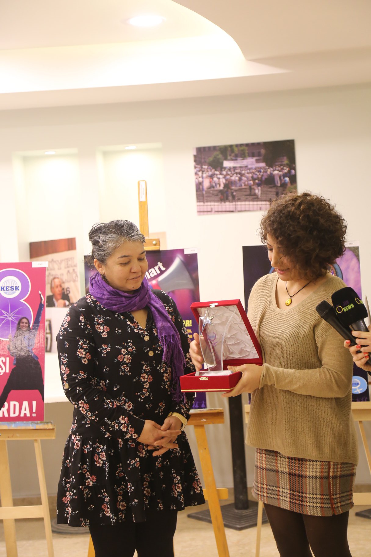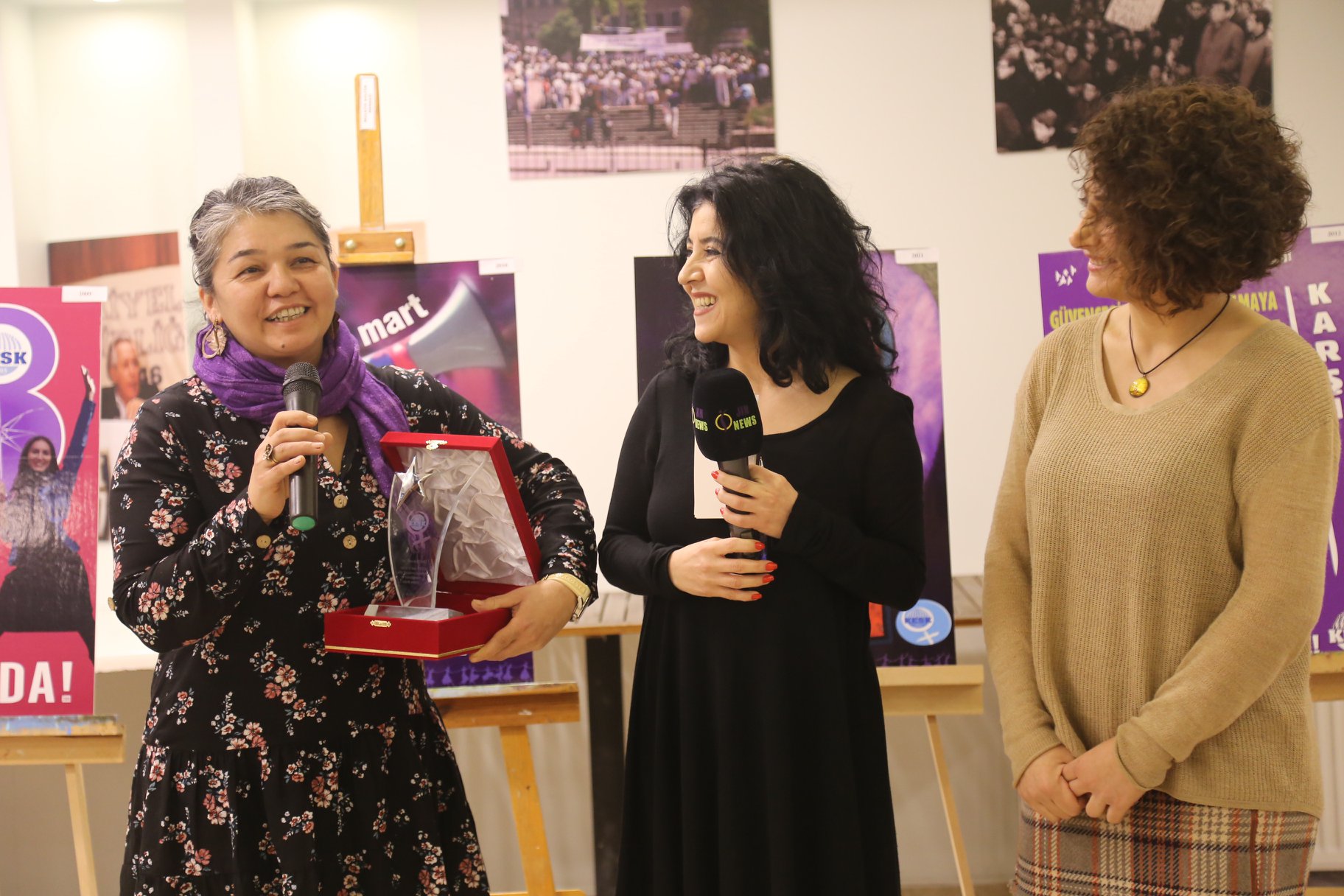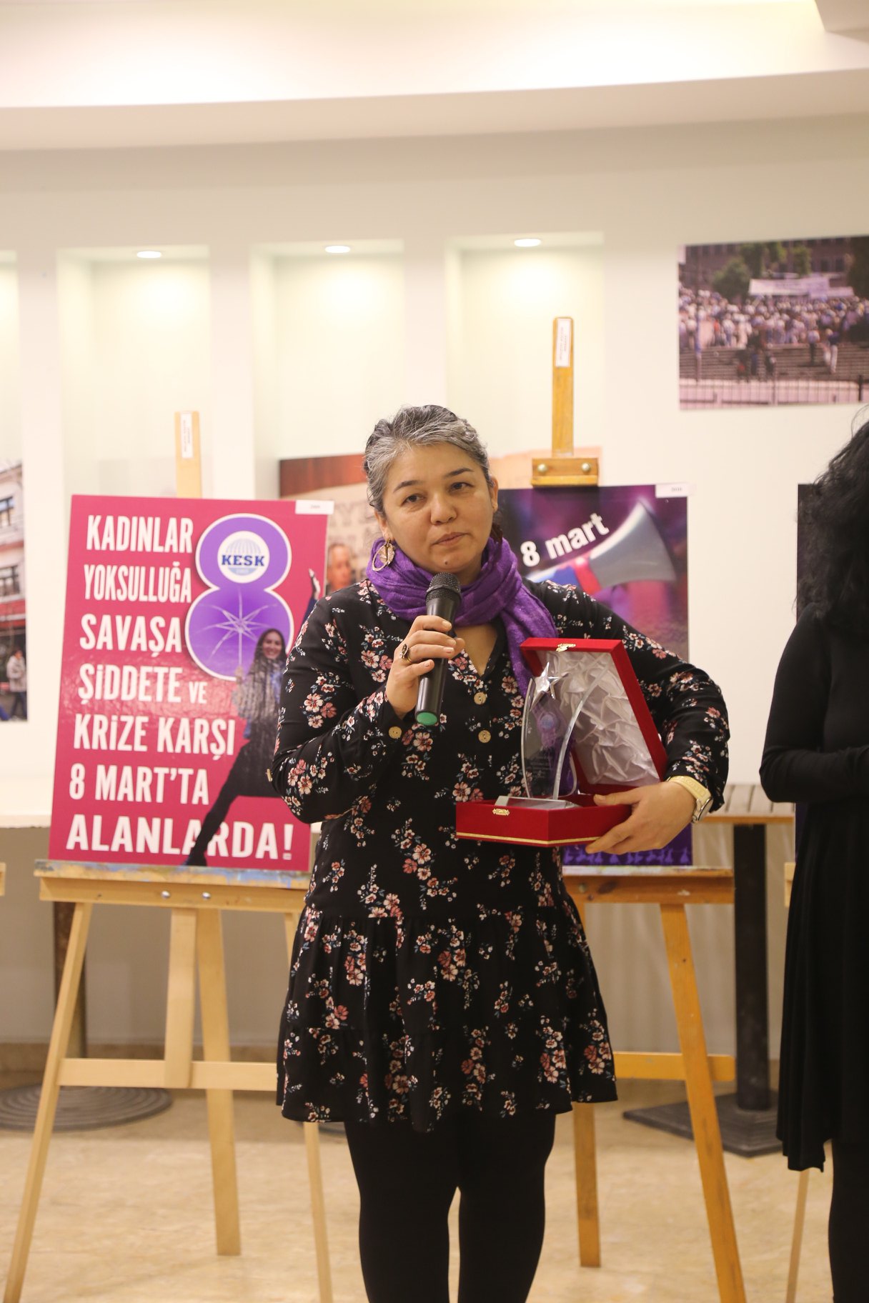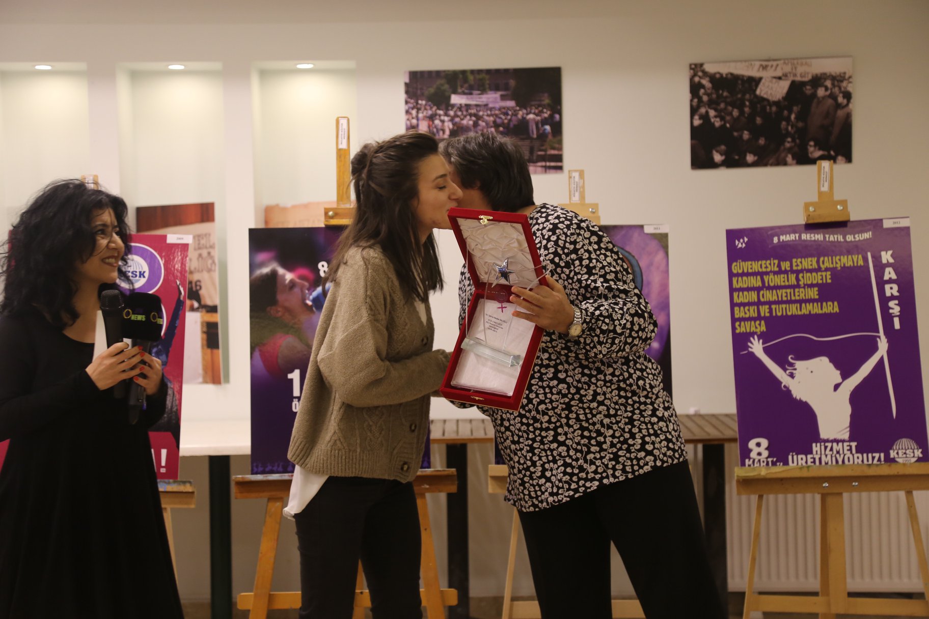 Ödül töreninde açılış konuşmasını yapan konfederasyonumuz Kadın Sekreteri Gülistan Atasoy, hazırlanan afişlerin hepsinin kadınların gündemine ışık tuttuğunu söyleyerek “Kadınlar dünyada umudu yaratan yerde duruyor. Biz ise bu umudu sokaklarda, meydanlarda büyütmeye devam edeceğiz. Örgütlenmeyi bekleyen bir yaşam var ve biz buna talibiz. Bu mücadeleyi sonuna kadar sürdüreceğiz” diye konuştu.