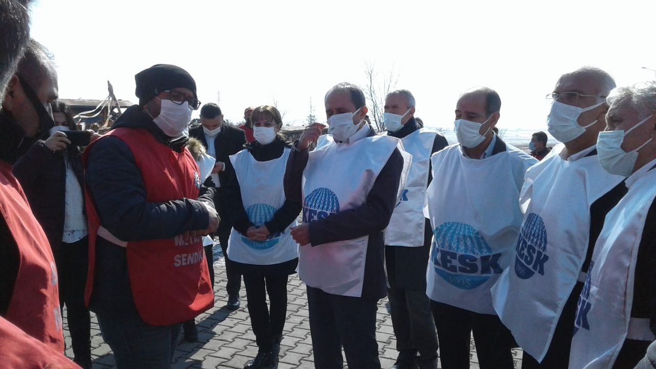 Konfederasyonumuz Eş Genel Başkanı Mehmet Bozgeyik, Mali Sekreterimiz Elif Çuhadar ile SES Eş Genel Başkanımız Hüsnü Yıldırım, Eğitim Sen Genel Sekreterimiz İkram Atabay, Eğitim Sen Genel Örgütlenme Sekreterimiz, Ramazan Gürbüz, BES Genel Sekreterimiz Aziz Özkan ve Tüm Bel Sen Merkez Kadın Sekreterimiz Semra Kıratlı’dan oluşan KESK heyetimiz Ekmekçioğulları direnişinde; “Direnen işçiler kazanacak! Artık bıçak kemiğe dayandı. Yaşasın işçi sınıfının birleşik mücadelesi! Yaşasın sınıf dayanışması! Metal işçisi yalnız değildir! Direne Direne kazanacağız! Kurtuluş yok tek başına, ya hep beraber, ya hiçbirimiz! Birleşe birleşe kazanacağız!” sloganlarıyla karşılandı.