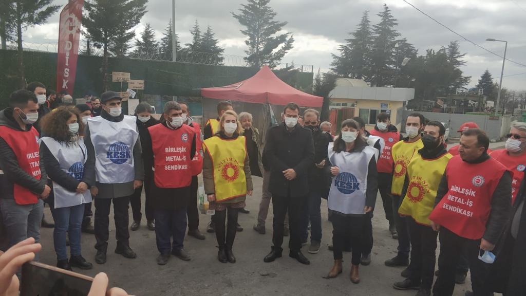 KESK heyetimiz, Kocaeli’nde ücretsiz izne çıkarılan, sefalet koşulları dayatılan, cod 29 ile işten çıkarılan Migros işçileri ve DİSK Birleşik Metal İş üyesi işçilerle sendikal hak ve özgürlükleri ile gelecekleri için yan yana oldular, emeğin birleşik mücadelesi için sınıf kardeşlerimizin yanında yer almaya devam edeceğiz dediler.
