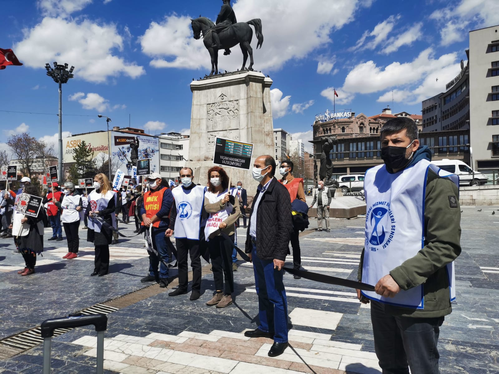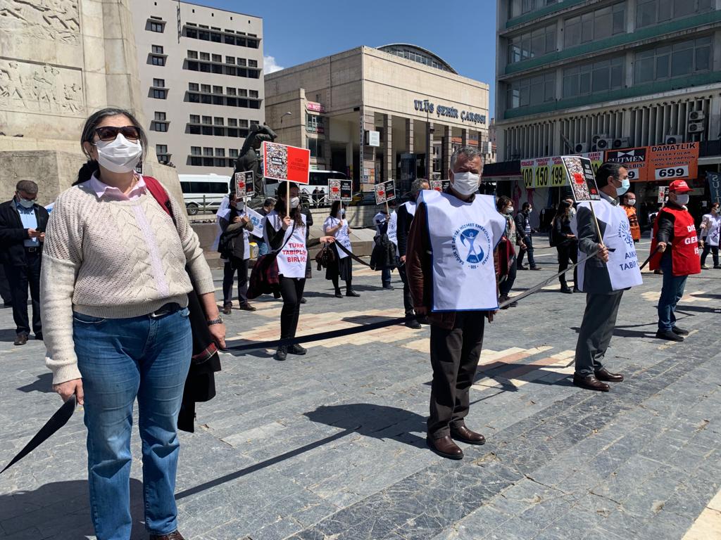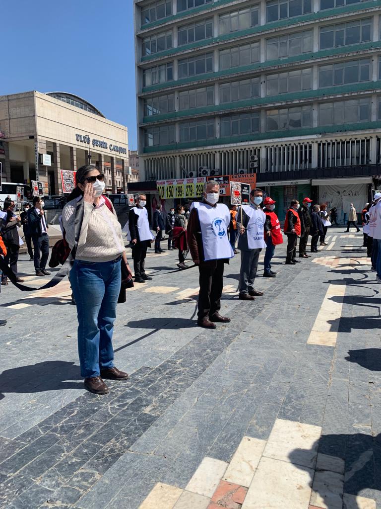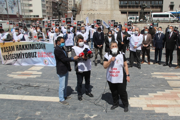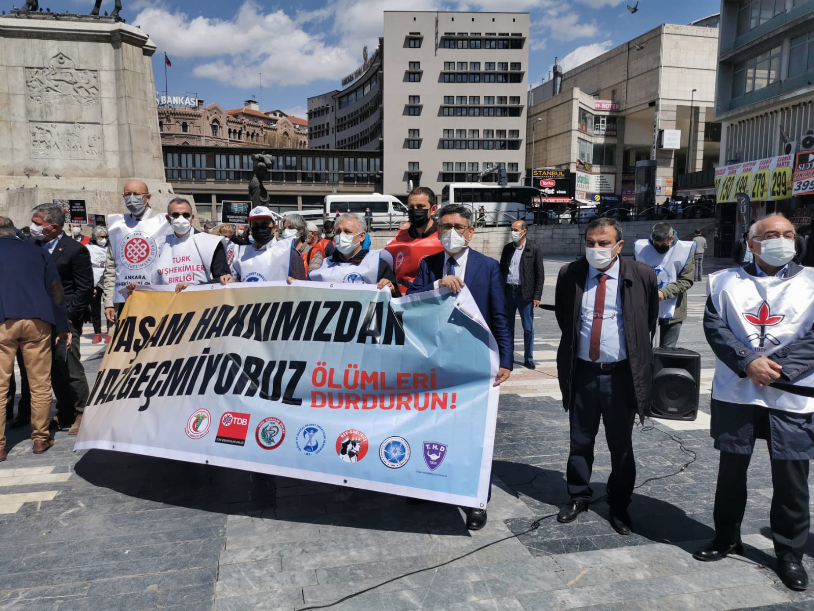 Türk Tabipleri Birliği (TTB) ve tabip odalarının çağrısıyla emek-meslek örgütleri, demokratik kitle örgütleri ve siyasi partiler, 15 Nisan 2021 günü Ankara’da Ulus Meydanı’nda ve illerde sağlık müdürlükleri önünde “Yaşam Hakkımızdan Vazgeçmiyoruz, Ölümleri Durdurun!” başlıklı basın açıklamaları gerçekleştirdi. Ankara’d…