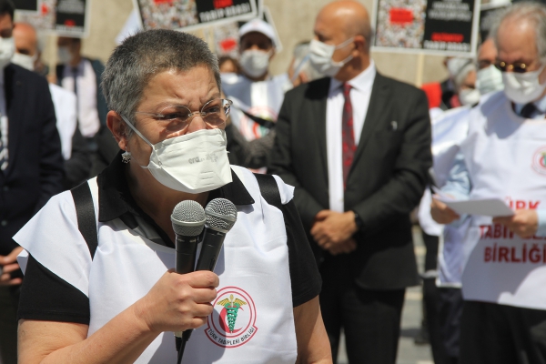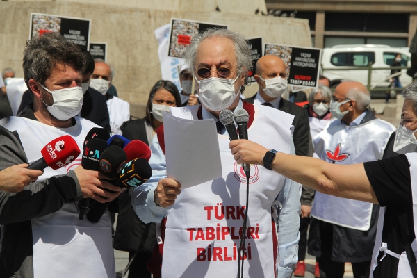Tabip odaları başkanları da basın açıklamasında kısa sözler aldı. İstanbul Tabip Odası Başkanı Prof. Dr. Pınar Saip “İktidar bir an önce gerekli tedbirleri almalı, çarkları durdurmalı, gerekli sosyal destekleri sağlamalıdır” derken; Diyarbakır Tabip Odası Başkanı Dr. Elif Turan turkuaz tablodaki her bir sayının bir insan yaşamını temsil ettiğini ve TTB’nin yaşamın kutsallığından asla vazgeçmeyeceğini ifade etti. İzmir Tabip Odası Başkanı Dr. Lütfi Çamlı salgının üçüncü piki göstere göstere gelirken hiçbir önlem alınmadığını; 84 milyonun salgının sorumlusu değil, kurbanı olduğunu kaydetti ve konuşmasını “Yönetemiyorsunuz! Çekilin artık, biz yönetelim!” diyerek bitirdi. Ankara Tabip Odası Başkanı Dr. Ali Karakoç ise katılımcılara dönerek “Salgının bu kadar kötü yönetilmesinde siz sorumlu musunuz?” diye sordu. Katılımcılar hep bir ağızdan “Hayır” yanıtı verdi.