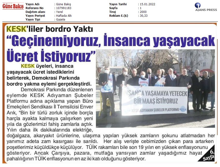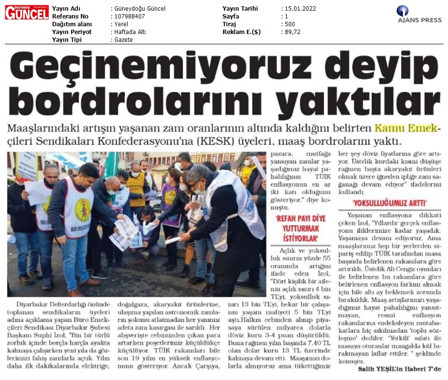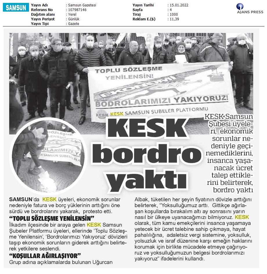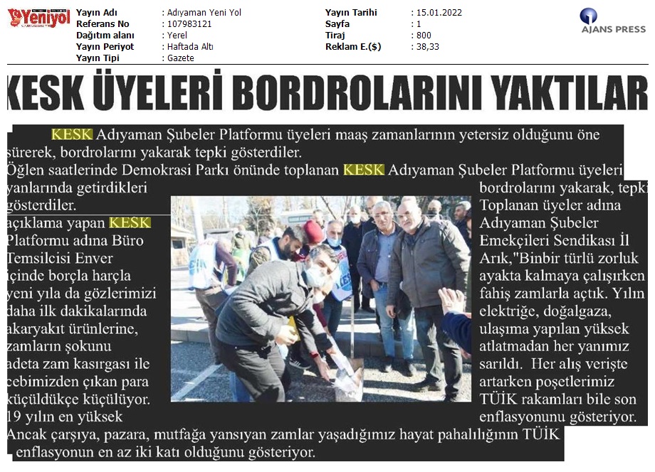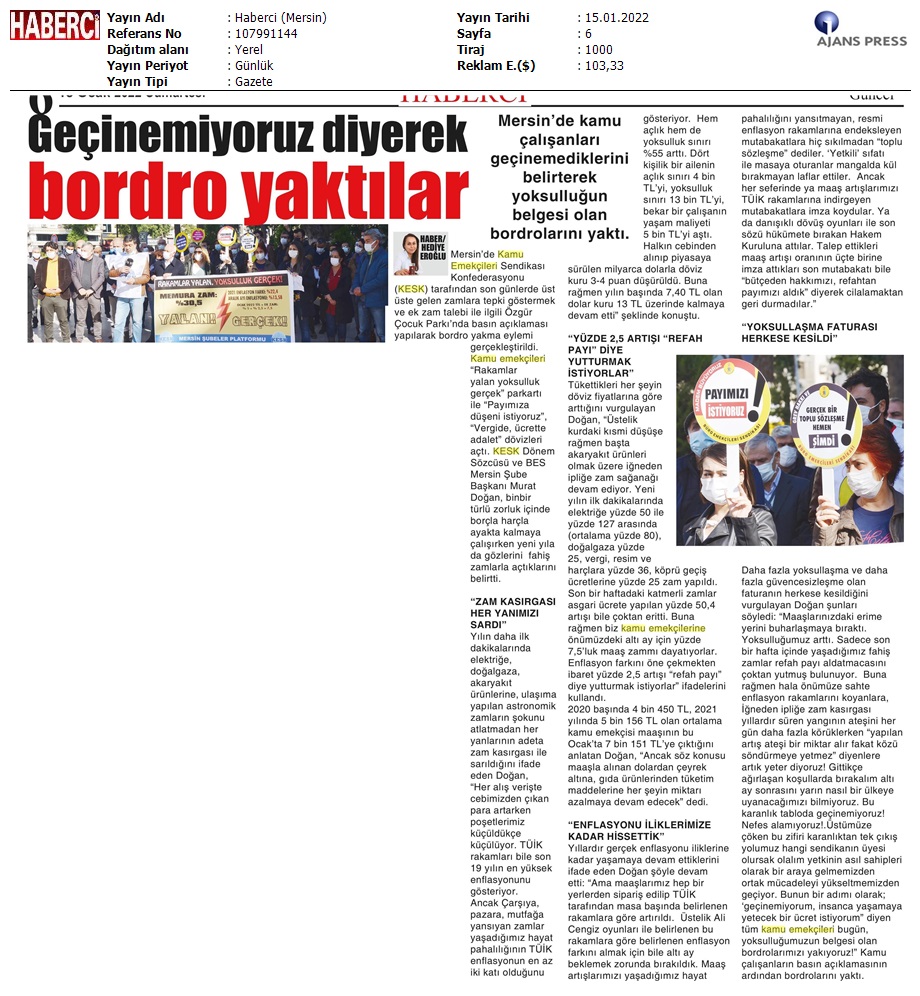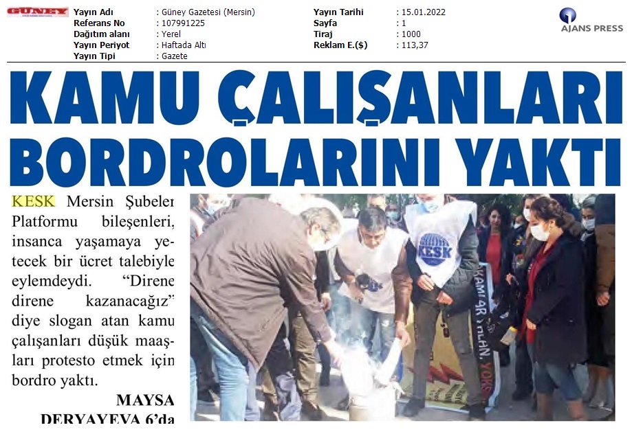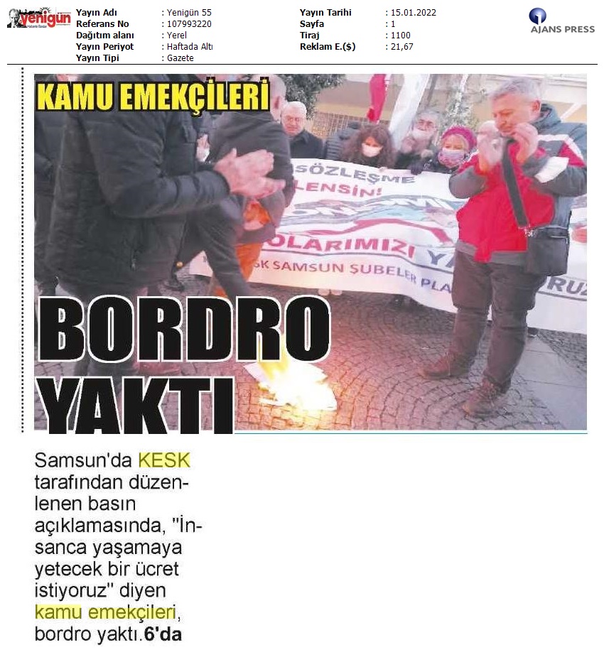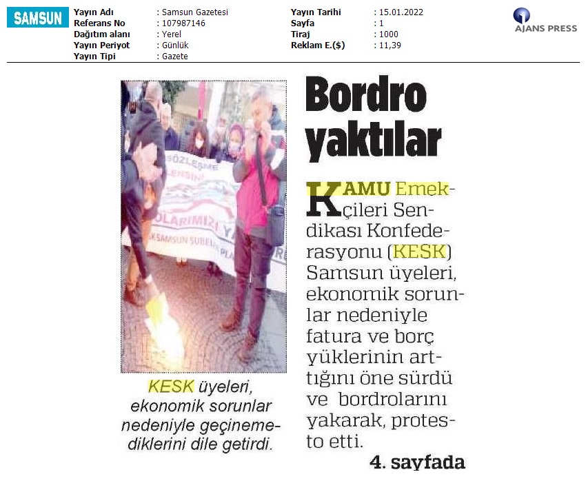 Bordro yakma eylemlerimiz gazete haberlerinde!
