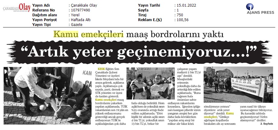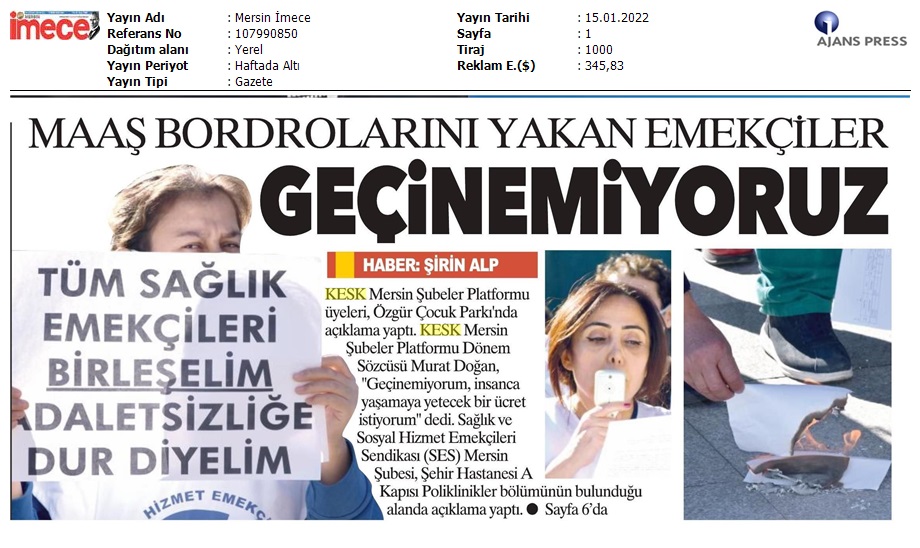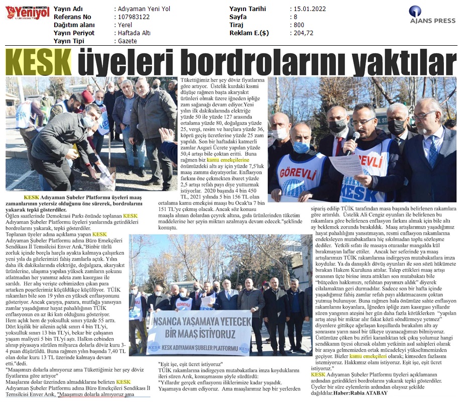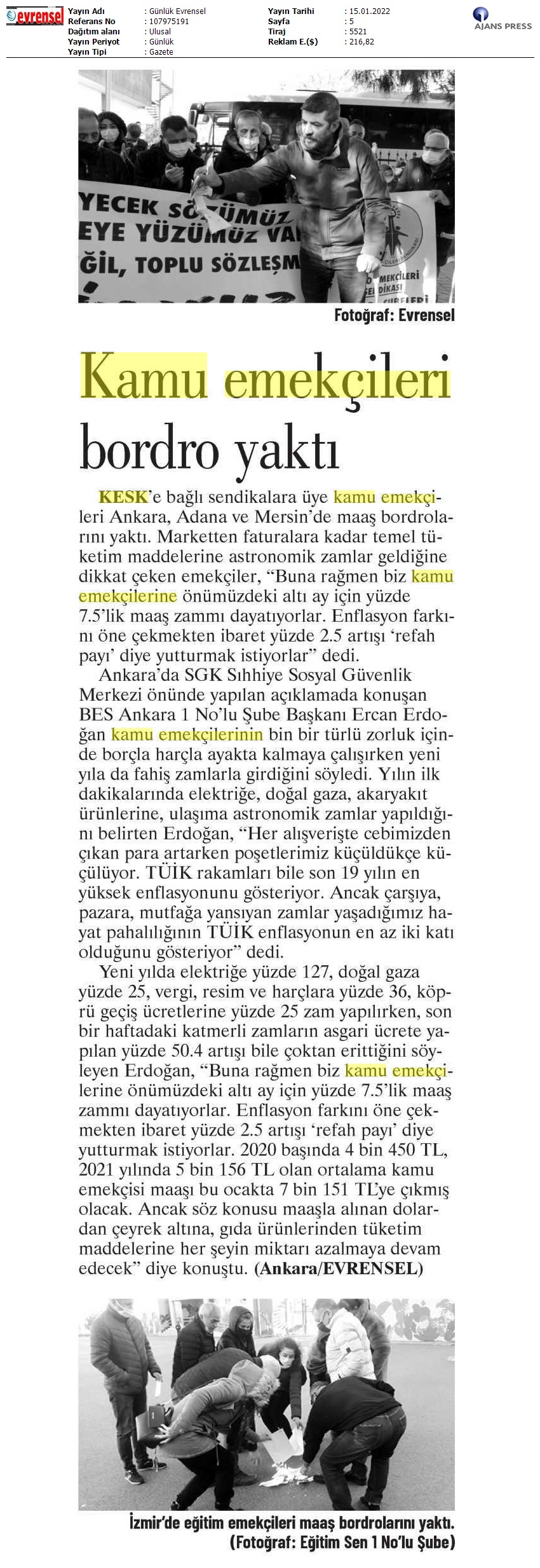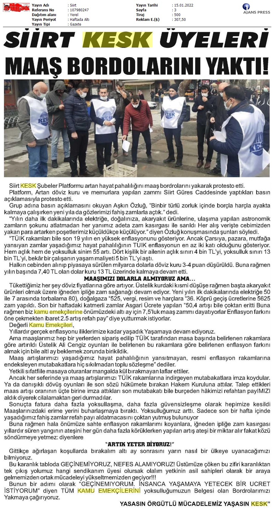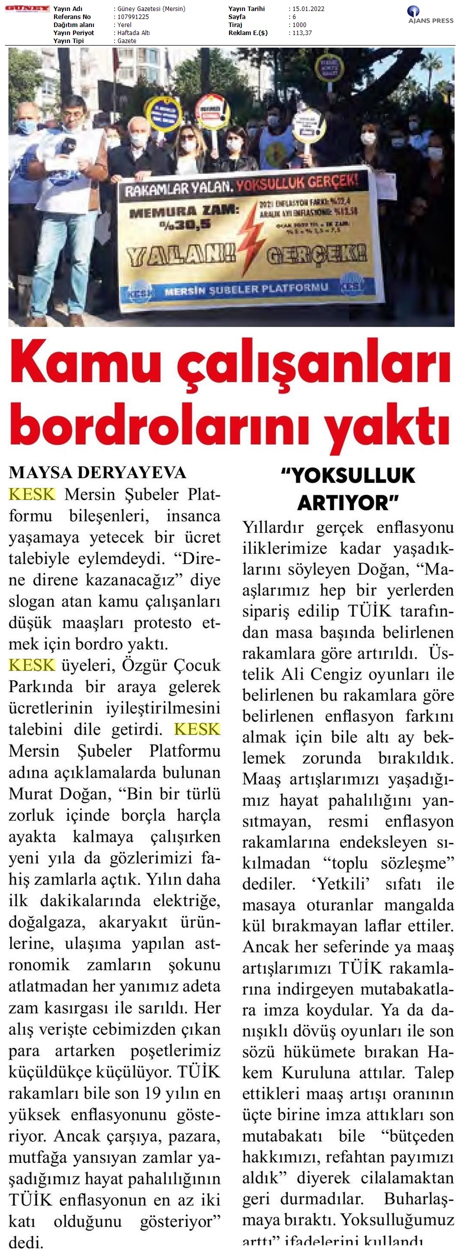 Bordro yakma eylemlerimiz gazete haberlerinde!