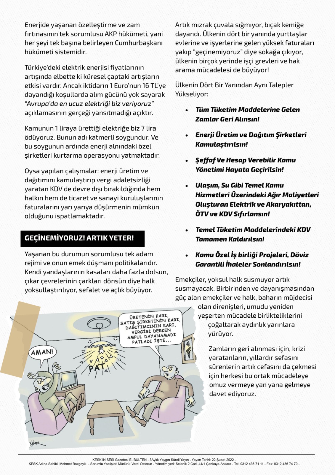 22 Şubat 2022 Bildiri: Zamlar Geri Alınsın! Özelleştirmeler İptal Edilsin! BİLDİRİ WORD indirmek için tıklayınız # DUYURU # MANŞET # ÖRGÜTLENME BİLDİRİ WORD indirmek için tıklayınız
