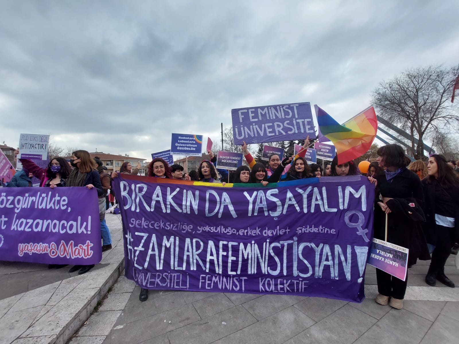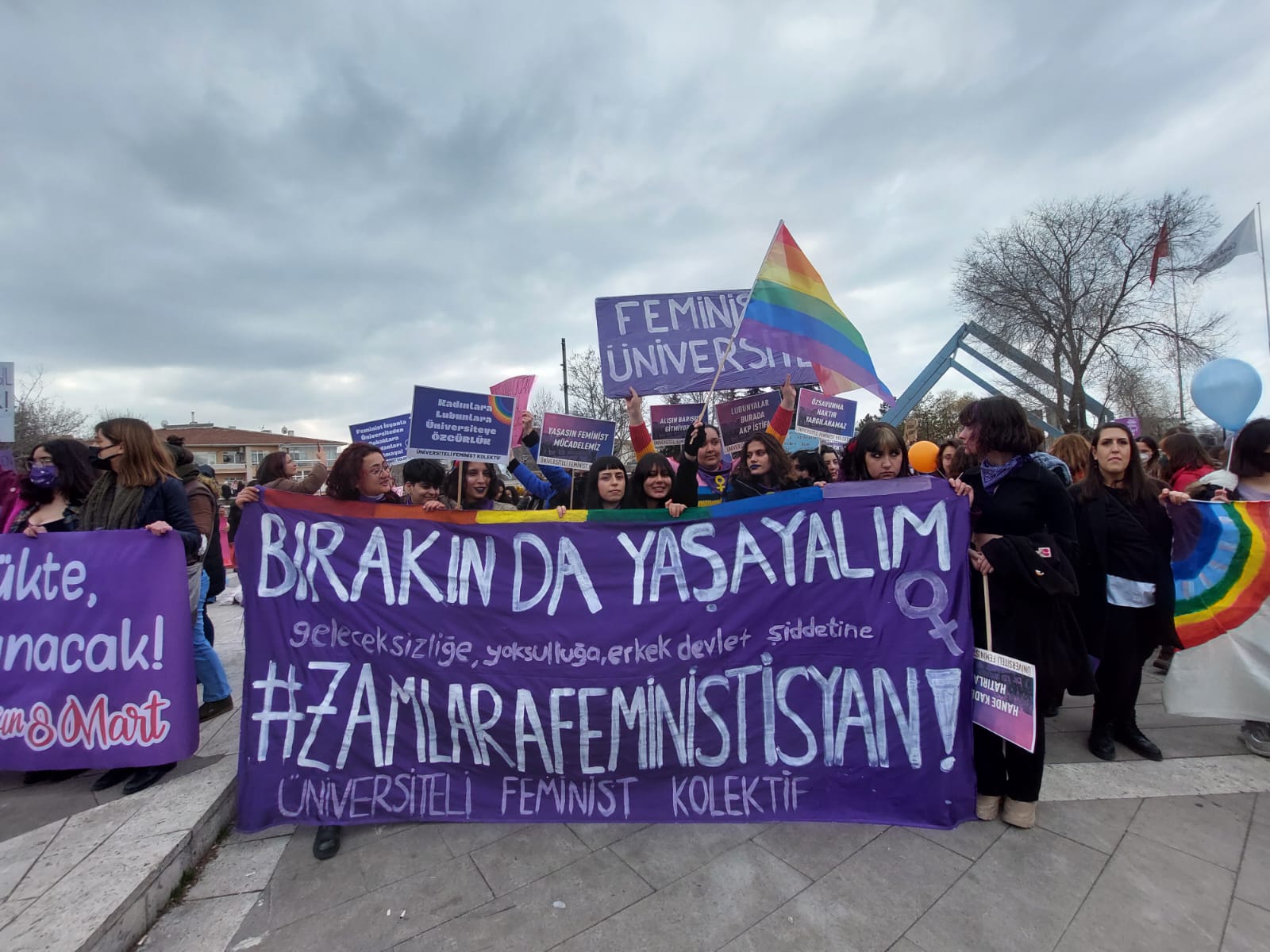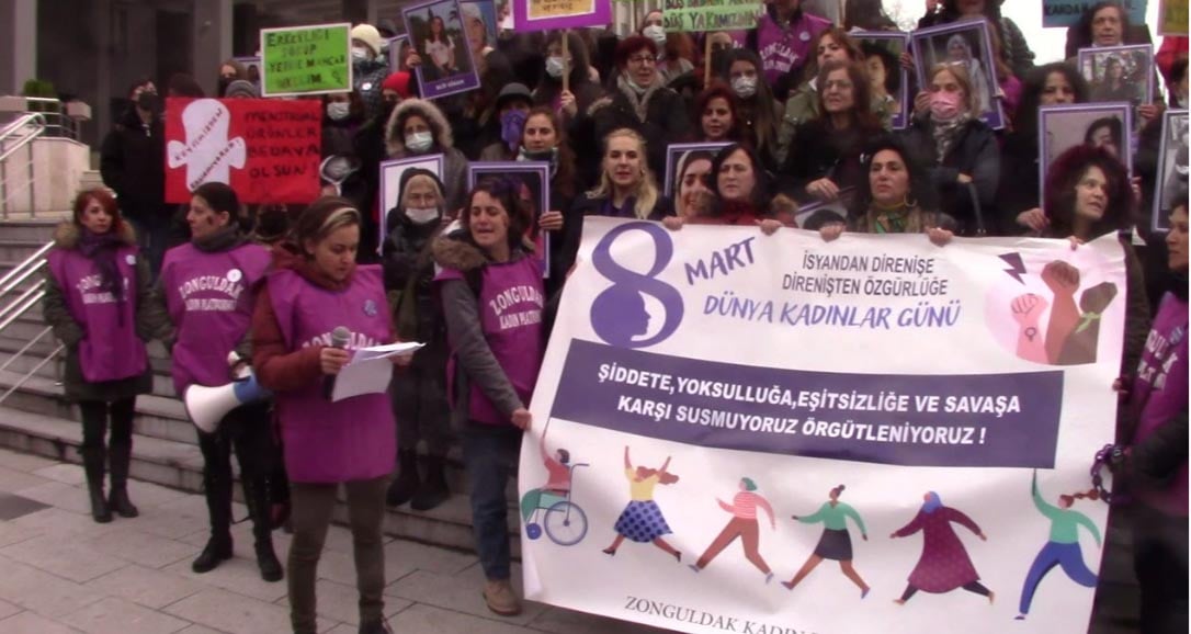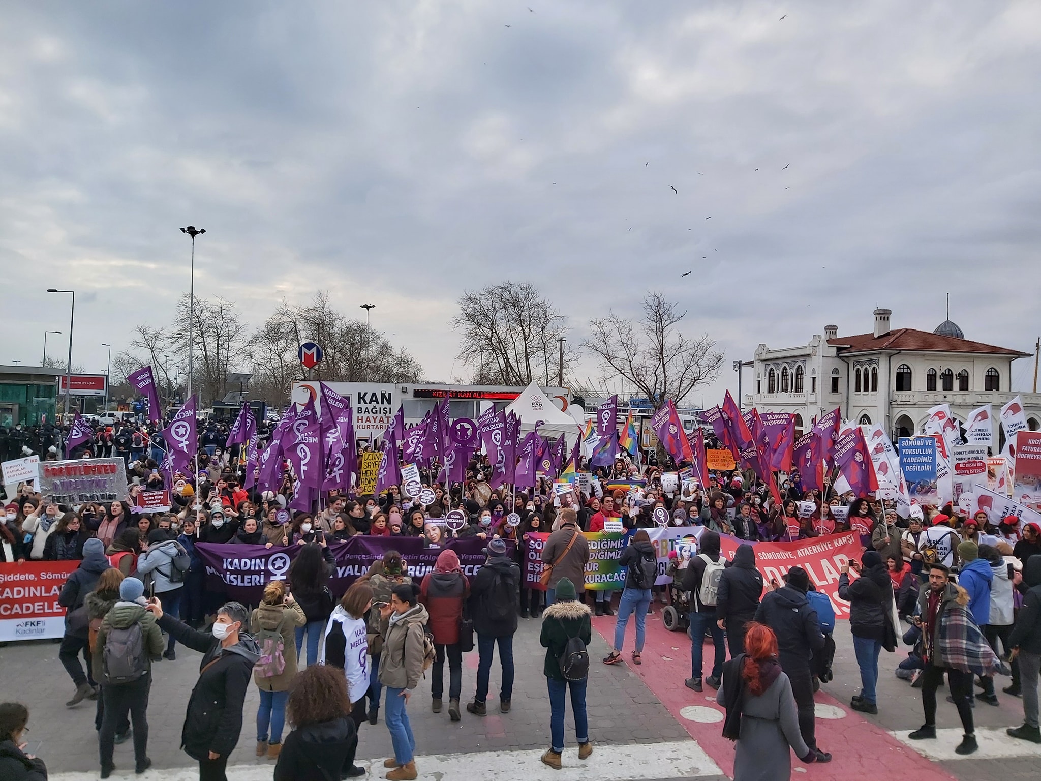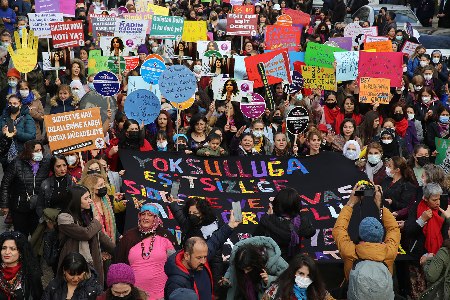 Dünya kadınlarının isyan ve direniş günü olan bir 8 Mart’a daha giderken, 2021 yılı ülkemizde kadın haklarına ve toplumsal cinsiyet eşitliğine saldırılar ile anılacaktır. Kadına yönelik şiddete karşı hukuki bir barikat oluşturan İstanbul Sözleşmesi’nden, toplumdaki tüm itirazlara rağmen Cumhurbaşkanı Kararı ile çıkılmıştır, bunu kabul etmemiz olası değildir. Bu aynı zamanda Türkiye’yi, imzalayıp onayladığı bir uluslararası insan hakları sözleşmesinden çekilen ilk ve tek ülke yapmıştır.
