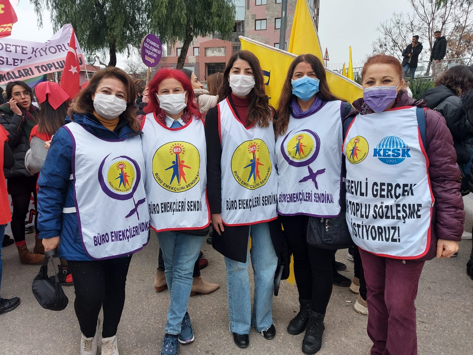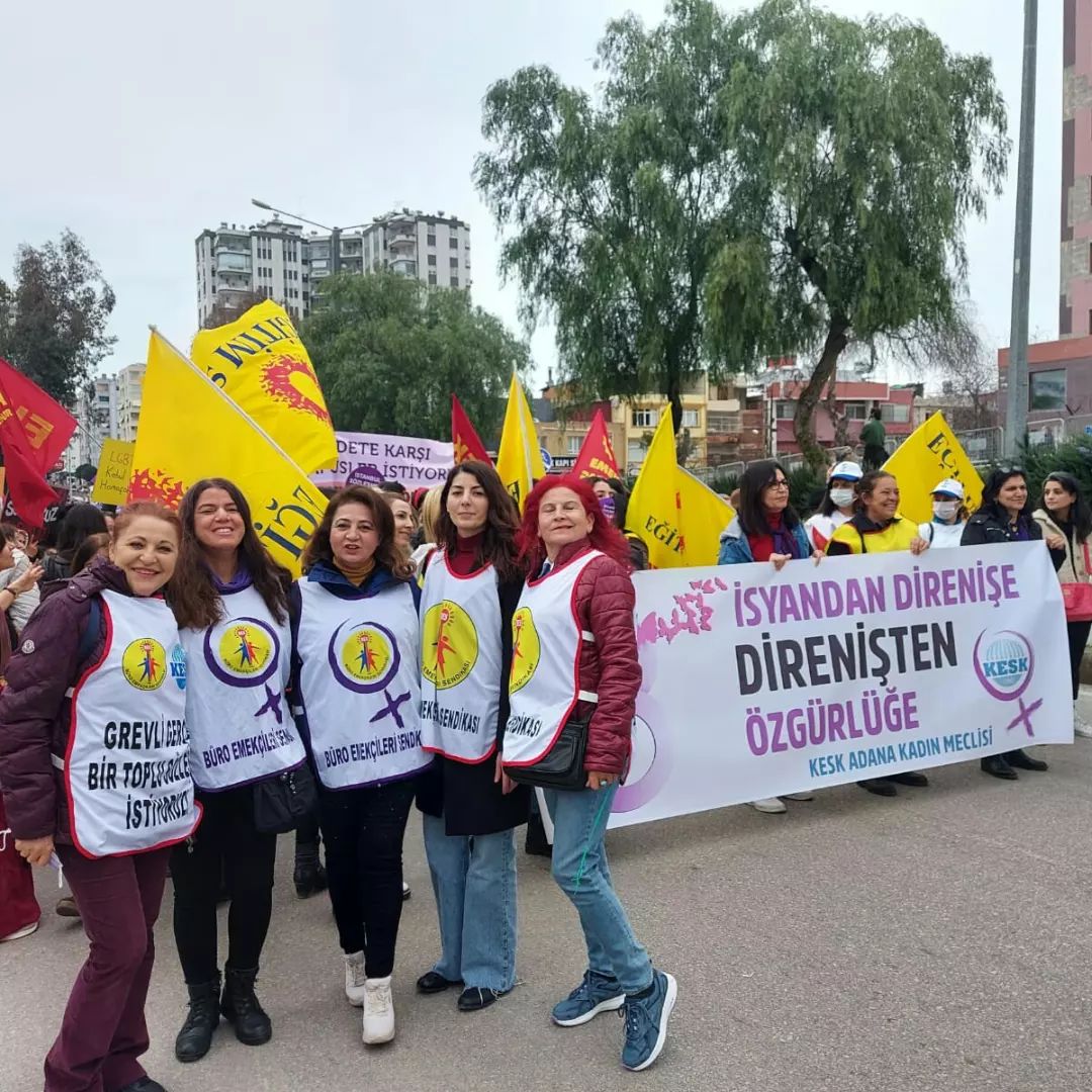 Kadın emeğinin sömürülmesi ve bunun yol açtığı yoksullukla beraber kadına yönelik şiddet yaşamın tüm alanlarında derinleşerek sürdürülüyor. Ataerkinin ürettiği şiddet, kadın düşmanı politikalar, cezasızlık ve korumasızlık ile körükleniyor. Kadınlar fiziksel, psikolojik, ekonomik, dijital, cinsel şiddete uğruyor, katlediliyor, ‘intihar’ denilen şüpheli ölümlerle yaşamdan koparılıyor. Kadınlar; işyerlerinde idareciler, korunmasız sokaklarda erkekler, ev içinde baba, koca, sevgili, ağabey, mahkemelerde erkek yargı tarafından giderek artan şiddete maruz kalıyor. Ev, işyeri, hapishane, mahkeme, medya, sağlık kurumu, sokak ve daha sayamadığımız yaşamın birçok alanı kadınlar için şiddeti doğuruyor ya da besliyor. Ataerkinin yarattığı savaşlar da şiddetin en ağır formunu yaşatmasının yanında, toplumsal cinsiyet eşitsizliğini derinleştirmesi ile kadınların savaşa karşı mücadelede yer almasını kaçınılmaz kılıyor. Büyüyen örgütlü kadın mücadelesine ve kadın kazanımlarına yönelik saldırılar, eylem yasakları, gözaltılar, tutuklamalar ile cevap veren iktidar özellikle her 8 Mart’ta sokakları dolduran, işyerlerini mora boyayan kadınların kararlılığı ile karşılaşıyor. Emek örgütlerindeki kadınlar olarak bu 8 Mart’ta da kadın kazanımlarına dönük saldırıları, kadın yoksulluğunu, savaşı, kadın emeğinin güvencesizleştirilmesini ve görülmemesini kabul etmiyor, tüm kadınları aşağıdaki talepleri gerçekleştirmek için sesleri ile alanları inletmeye, işyerlerini isyanımızın rengi mora boyamaya çağırıyoruz.