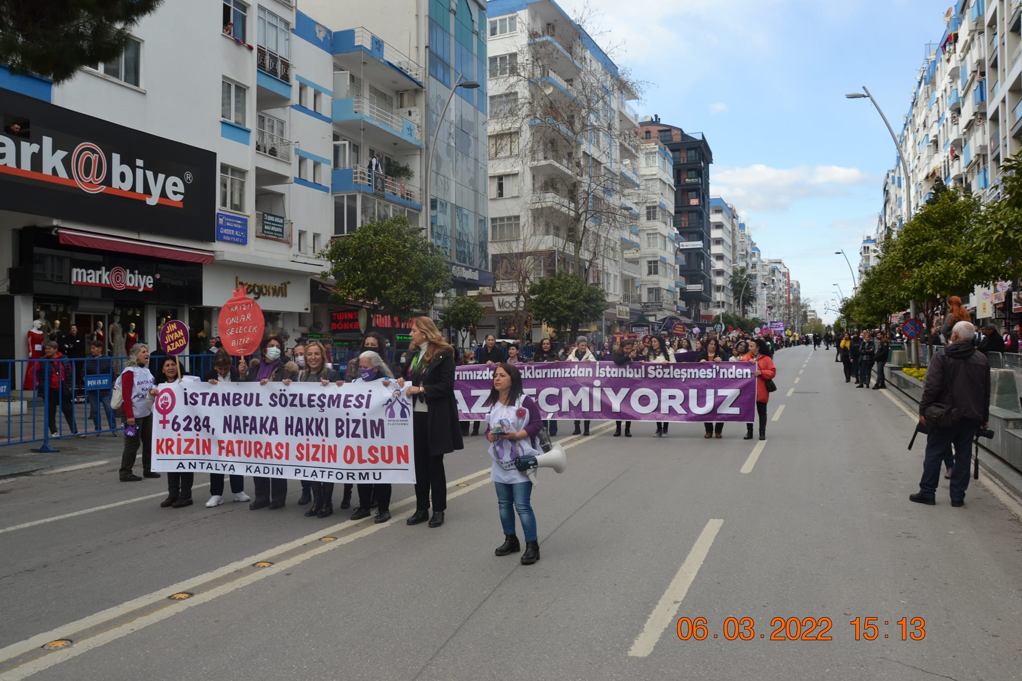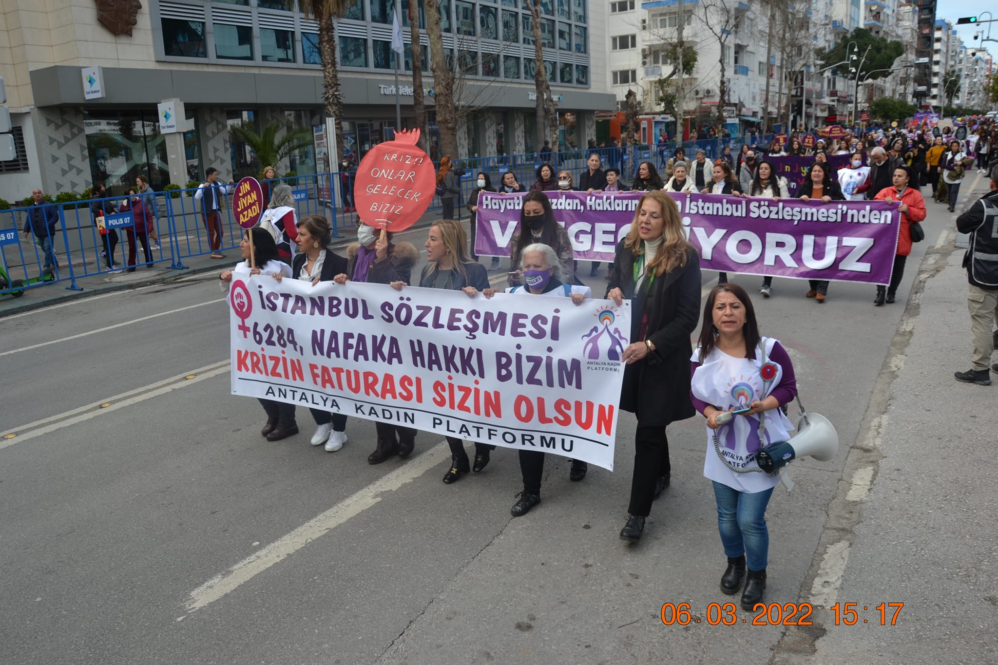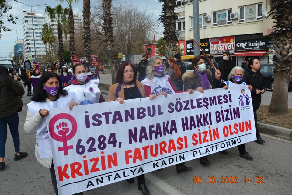 Çekilmenin gerekçesi olarak LGBTİ+’ların gösterilmesi, LGBTİ+’lara yönelik nefret ve ayrımcılığın kurumsallaştığını göstermiştir. Çekilme kararının hukuksuz olması nedeniyle TMMOB, TTB ve KESK’in de bulunduğu çok sayıda kurum ve kişi tarafından iptal talebiyle dava açılmış, ancak yine hukuksuz bir şekilde davalar reddedilmiştir. Bu süreçte ve halen kadınlar ve çocuklar savunmasız- korunmasız bir şekilde her türlü saldırıya maruz kalmakta, hayattan koparılmaktadır. Kadınların toplumsal cinsiyet eşitliği mücadelesinde, uzun yıllar boyunca çeşitli ve ısrarlı taleplerini dile getirdikleri eylemlerle, elde ettikleri kazanımlara yönelik son hamle; 6. Yargı paketi ile gündeme gelmiştir. Nafaka hakkına dair yalan/yanlış söylemler ve çalışmalar gündemdedir. Bu tartışmaları yapanlar kadın yoksulluğunu bildikleri halde kasıtlı bir şekilde görmezden gelmektedir.