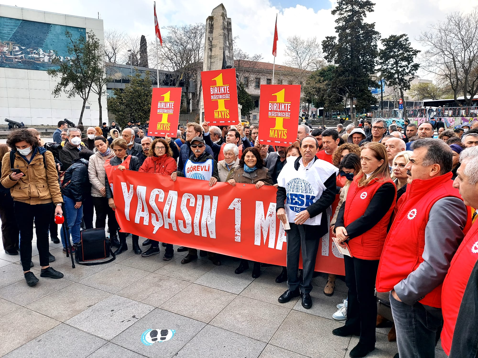 1 Mayıs 2022 Tertip Komitesi’nin, DİSK-KESK-TMMOB-TTB-TDB Genel Başkanları ve yönetim kurulu üyelerinin katılımıyla 13 Nisan 2022 Çarşamba, 12:30’da Beşiktaş Barbaros Meydanı’ndaki basın açıklamasının ardından bildiri dağıtımı yapıldı.