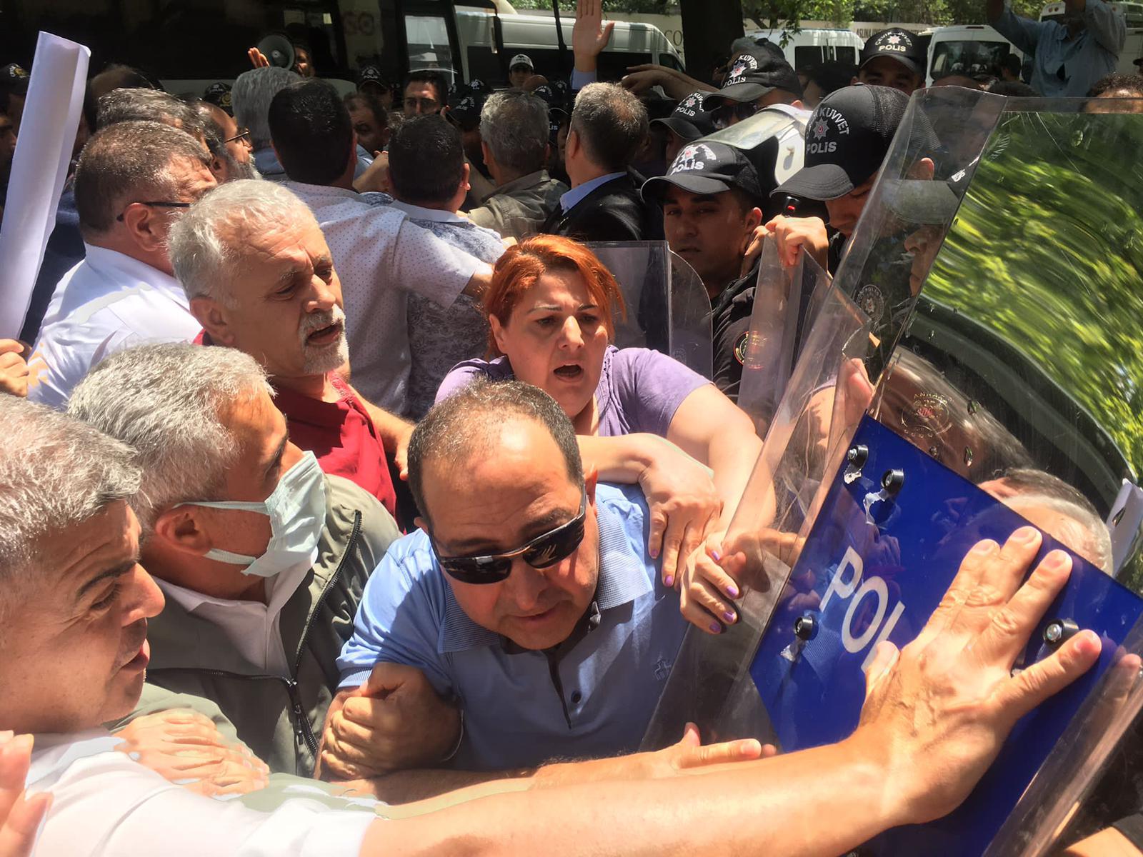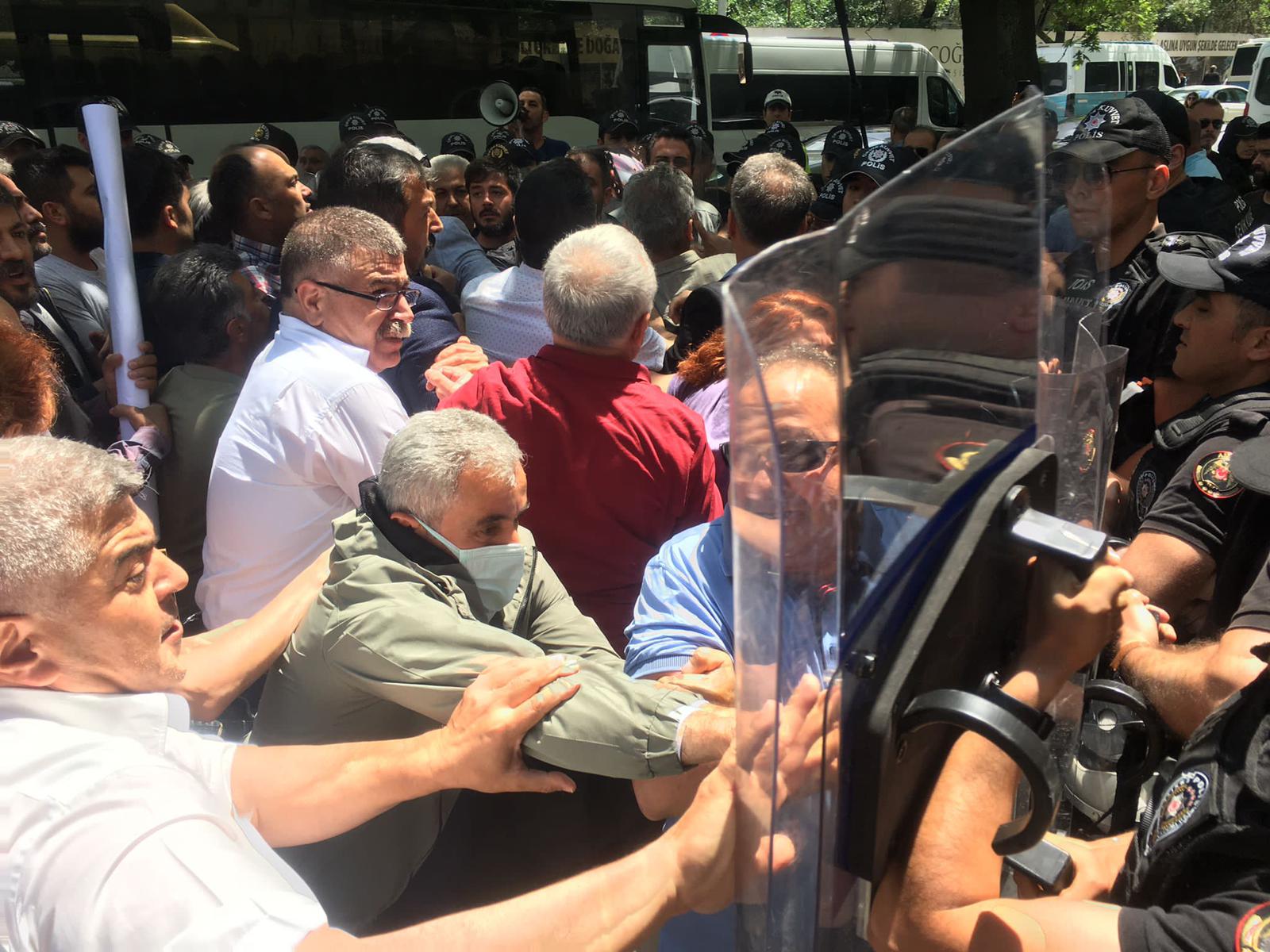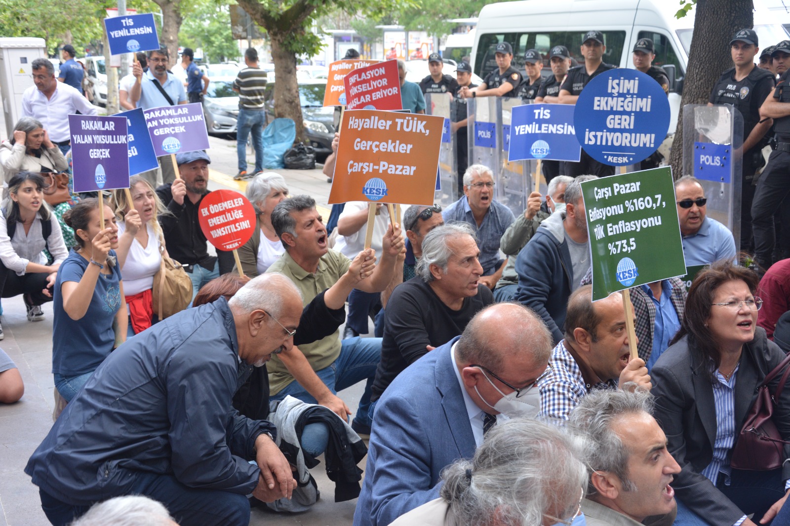 Bugün saat 14.00’da üyelerimiz ile Konfederasyonumuz KESK ve üye işkollarımızın MYK üyelerinin TÜİK önünde yapmak istediği açıklama polis tarafından engellenmiş, Eş Genel Başkanımız Mehmet Bozgeyik polis müdahalesi sırasında kötüleşmiştir. Her türlü baskıya karşı kamu emekçilerinin hak ve çıkarlarını savunmak için mücadele yürüten Konfederasyonumuz bu tutumu protesto ederek oturma eylemi başlatmış ve polis ablukasına karşın basın açıklamasını gerçekleştirmiştir.