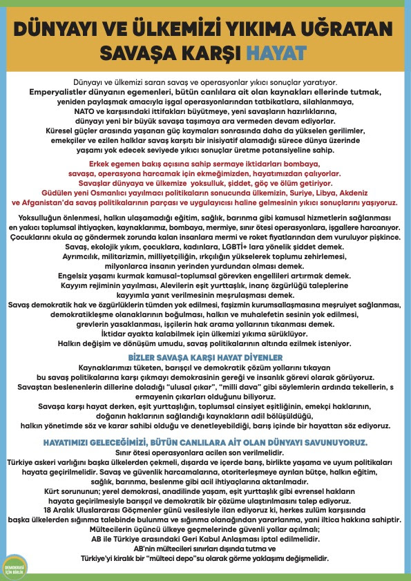 Dünyayı ve Ülkemizi Yıkıma Uğratan Savaşa Karşı Hayat!