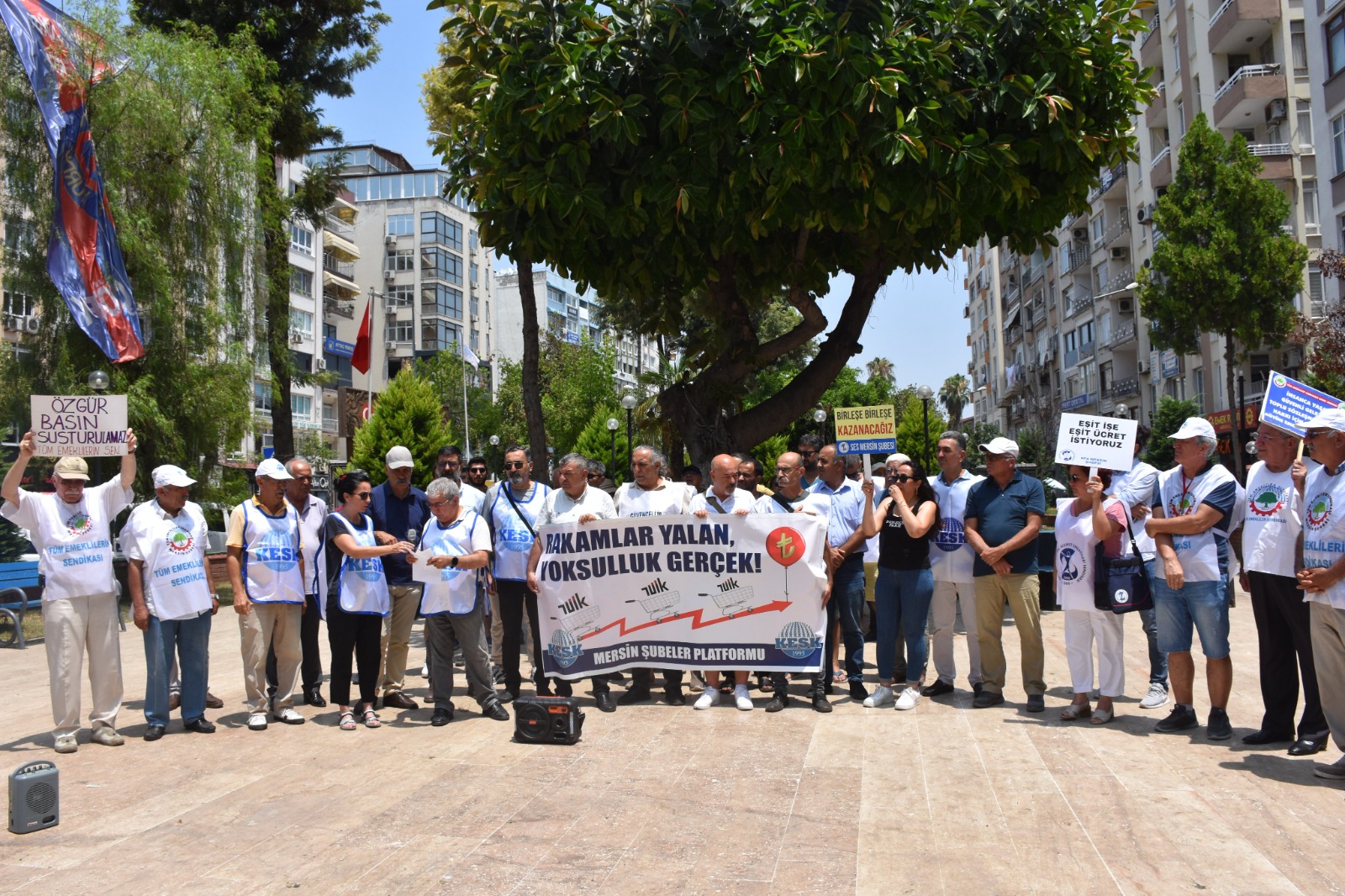 KESK’e bağlı sendikaların üyeleri olarak tüm kamu emekçilerini, emeklileri yıllardır hepimize kaybettiren bu yoksulluk ve sefalet düzenine karşı insanca yaşayacak ücret, güvenceli iş, güvenli gelecek mücadelesinde omuz omuza vermeye çağırıyoruz.