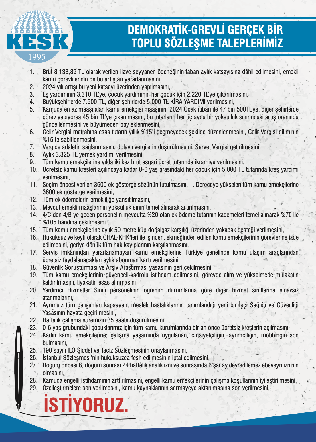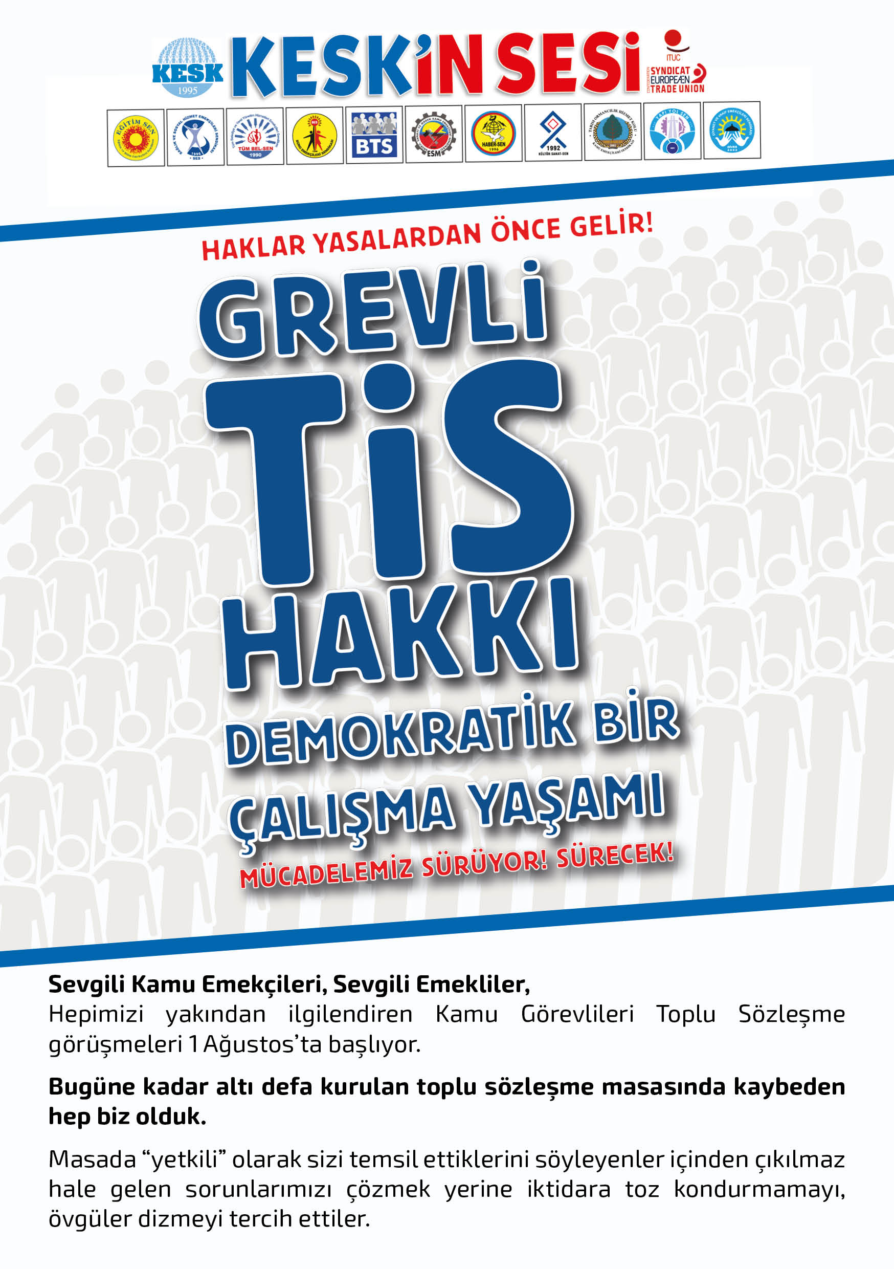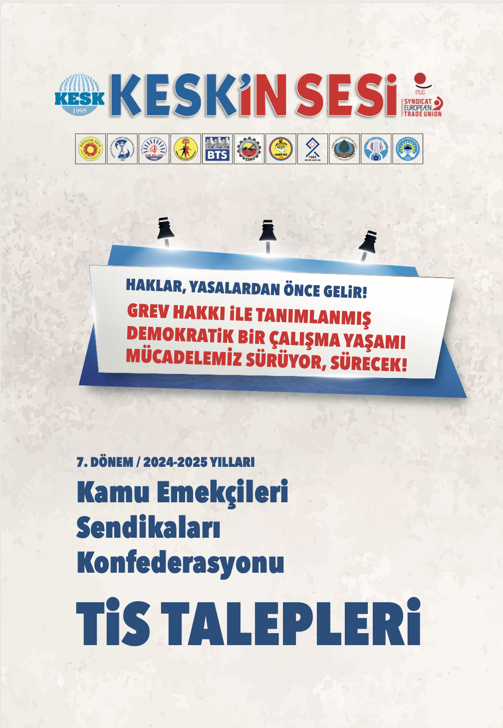 2024-2025 Yılları, 7.Dönem Toplu İş Sözleşmesi görüşmeleri yayınlarımız:TİS AFİŞ_2024-2025Yılları_7.Dönem_TİS BİLDİRİ_Genel_2024-2025Yılları_7.Dönem_KADIN TİS BİLDİRİ_2024-2025Yılları_7.DönemKİTAP_ TİS TEKLİFİ_2024-2025Yılları_7.DönemKESK_Brosur_2024-2025Yılları_7.DönemDUVAR Gazetesi 2024-2025Yılları_7.Dönem