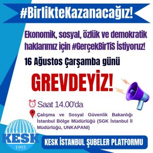 18 Ağustos 2023 16 Ağustos'ta 81 İlde iş bıraktık! 81 İlde iş bıraktık! Basın açıklaması metni için tıklayınız! # BASIN AÇIKLAMALARI # Eylem ve Etkinlikler # MANŞET 81 İlde iş bıraktık! Basın açıklaması metni için tıklayınız!