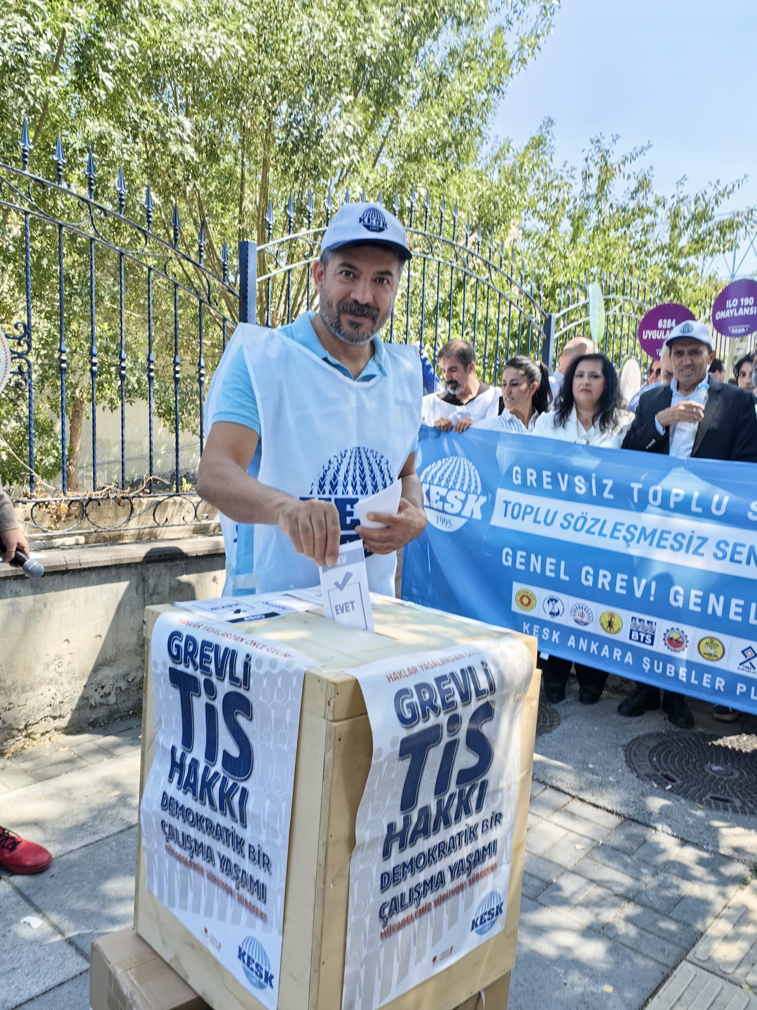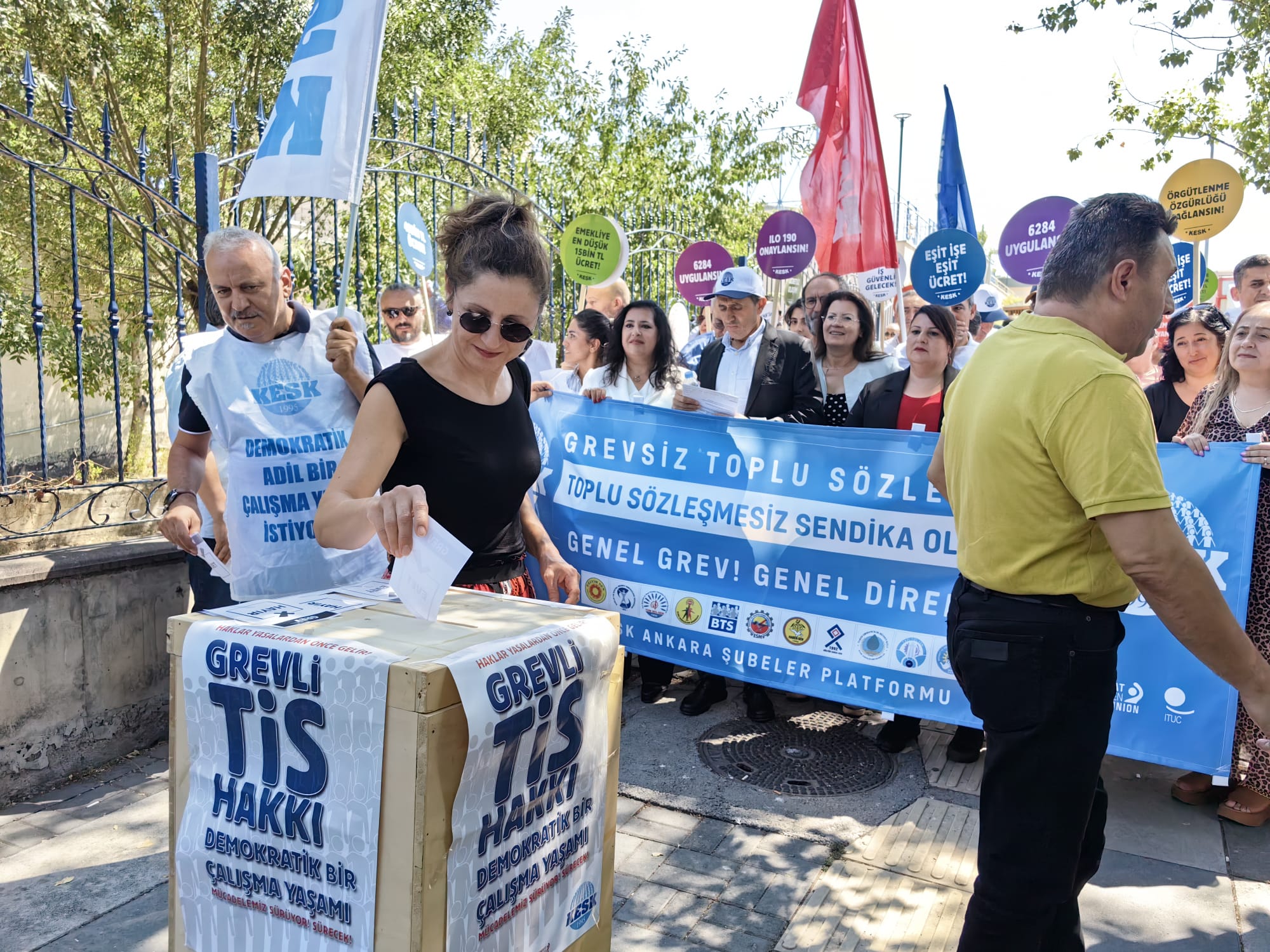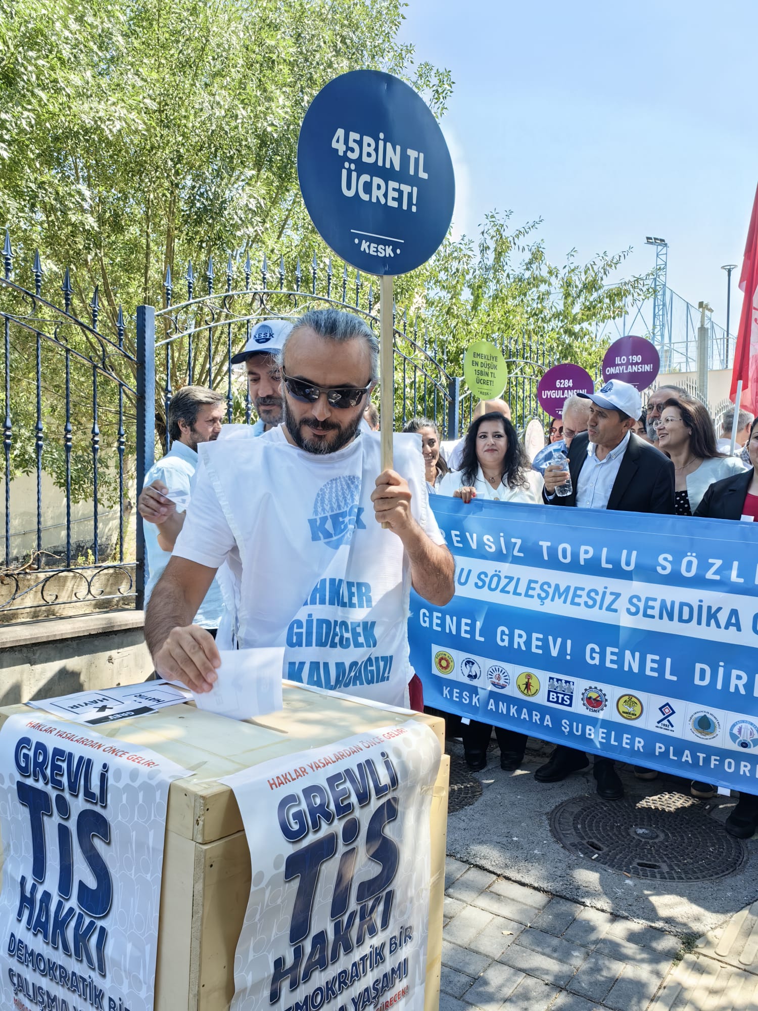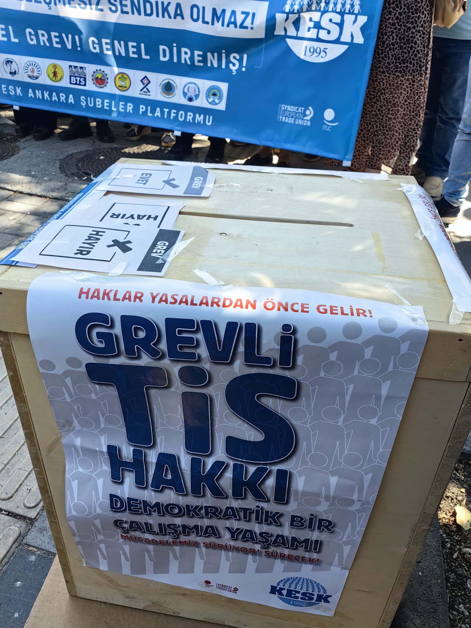 Kamu emekçileri Sendikaları Konfederasyonu 81 ilde kurduğu GREV sandığını Çalışma ve Sosyal Güvenlik Bakanlığı önüne taşıdı. Grev Oylaması sonucunda kamu emekçileri GREV yapılsın dedi.