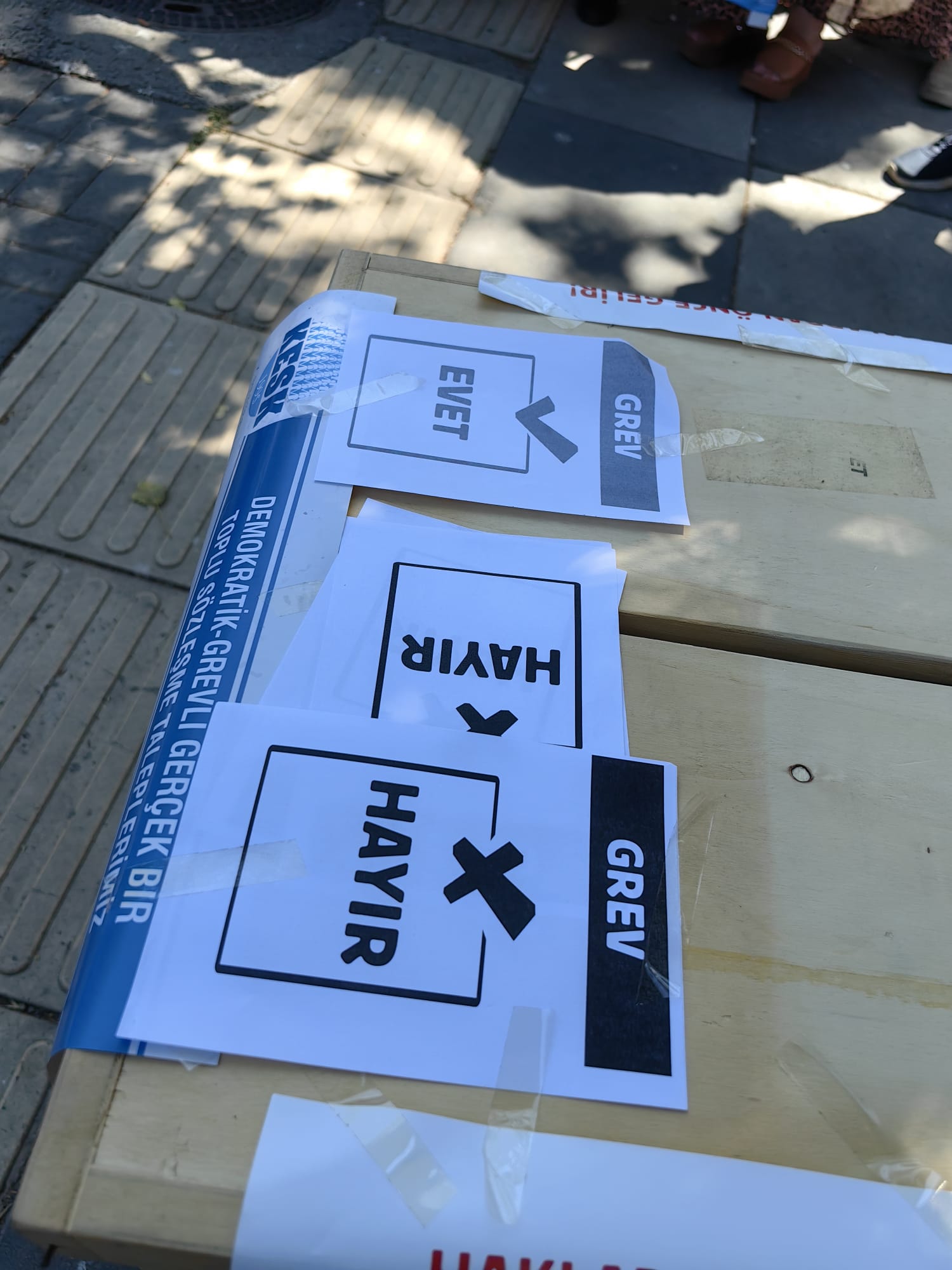 Platform, açıklamadan önce üyelerine toplu iş sözleşmesi ve grev hakkı için sandık kurdu. Verilen oylar üyelerin ve gazetecilerin önünde sayıldı. Doksan bir üyenin oy kullandığı sandıktan grevli Toplu İş Sözleşmesi için “Evet” sonucu çıktı.