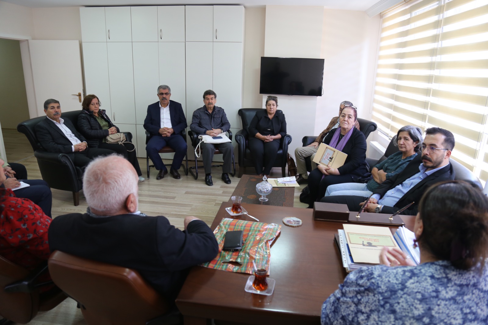 KESK MYK üyelerinin karşıladığı heyet ile Diyarbakır 5 No.lu Askeri Cezaevinin her santimetre karesinin, tarihi gerçekliğine bağlı bir biçimde, hakikat ve yüzleşme mekanı kimliğiyle “İnsan Hakları Müzesi”ne dönüştürülmesi konusunda görüş alışverişinde bulunuldu.