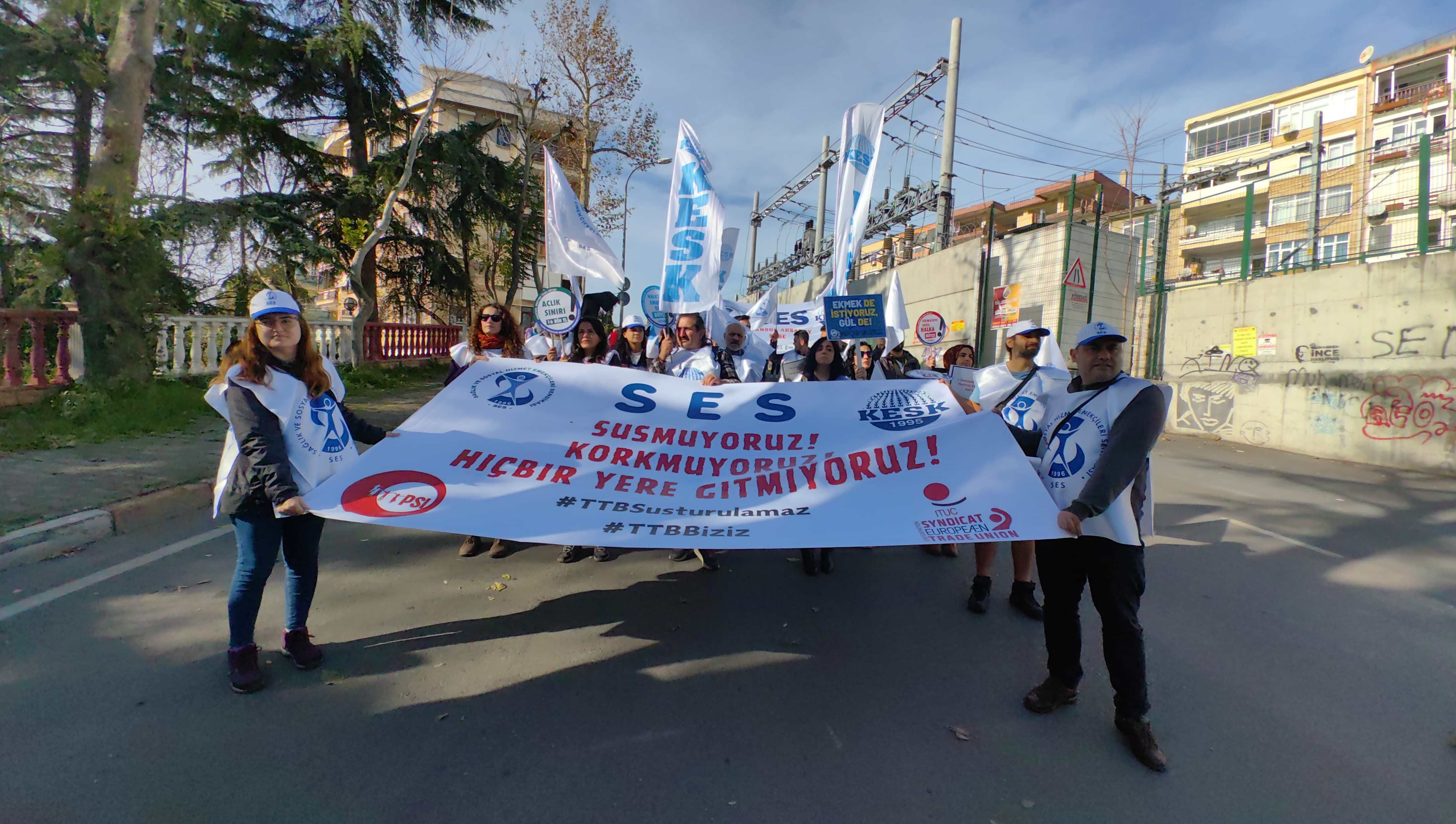 KESK olarak bu hukuksuzluğu kınıyoruz. Emek, barış ve demokrasi mücadelesinde birlikte yol yürüdüğümüz, yaşamın, yaşatmanın, barışın yanında yer alan TTB ile dayanışma içinde olmaya devam edeceğiz.