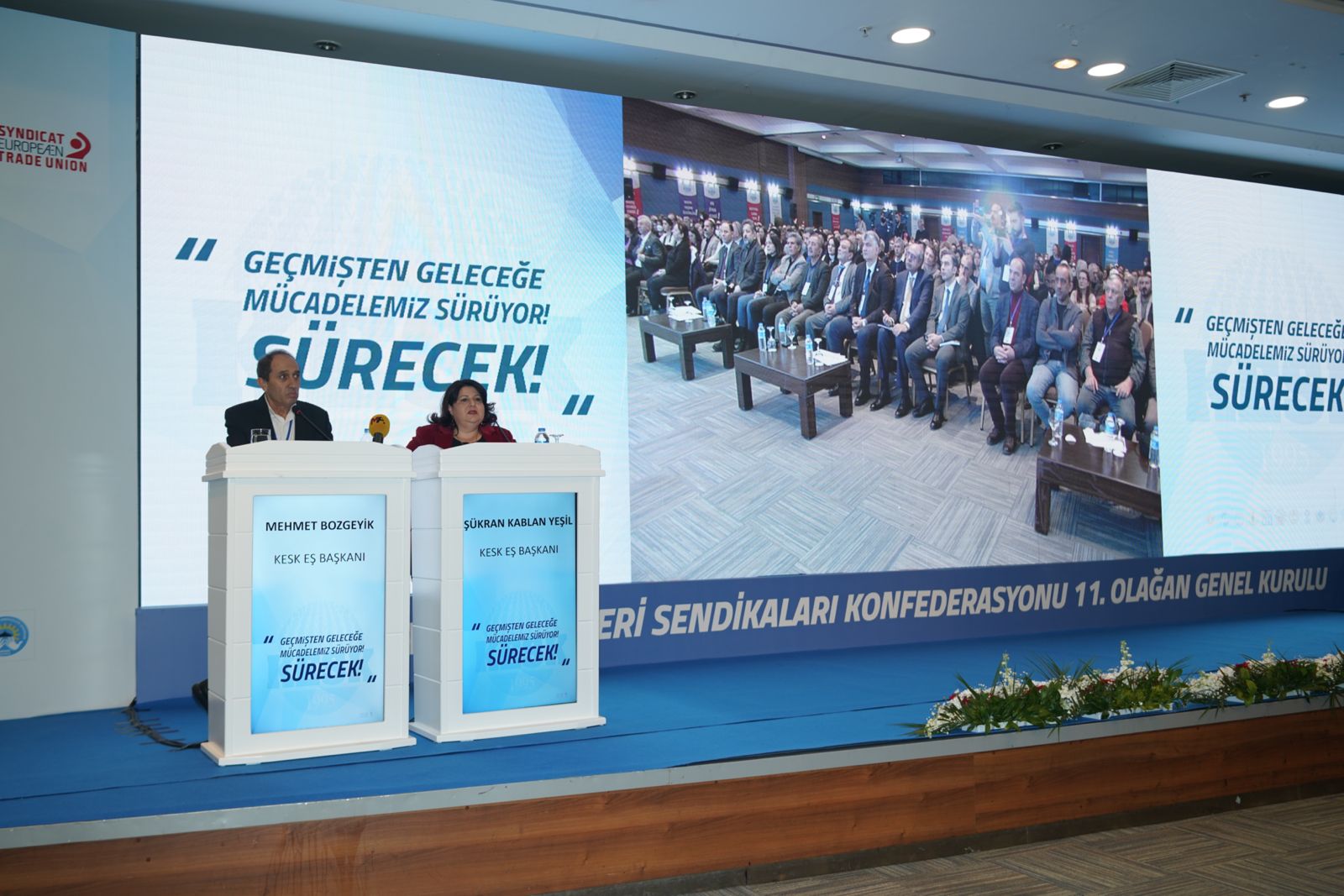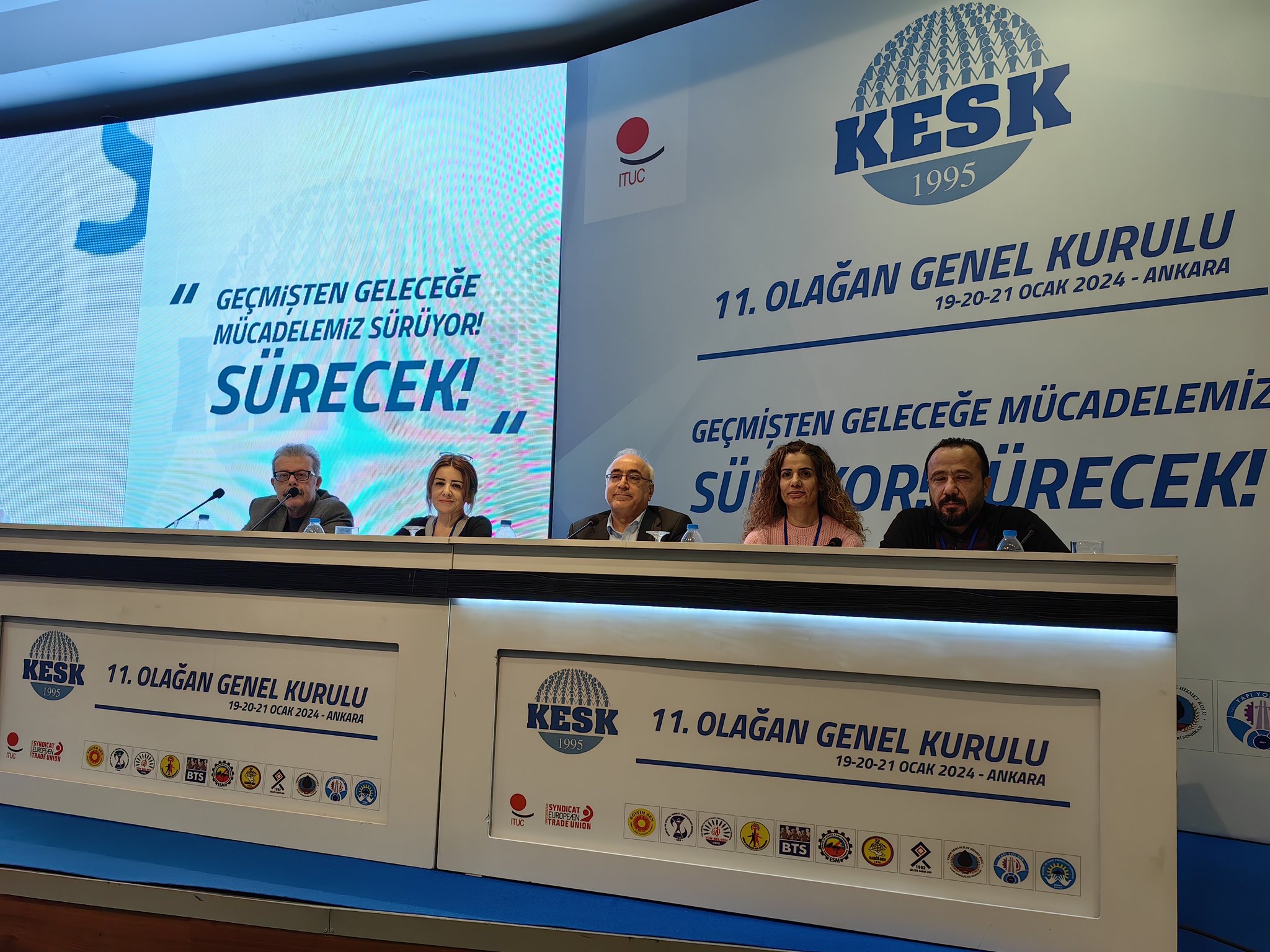 Emek, barış ve demokrasi mücadelesinde kaybedilenlerin anısına saygı duruşu ile başlayan KESK 11. Olağan Genel Kurulu, Ankara’da Türkiye Barolar Birliği Kongre ve Kültür Merkezi’nde emek, meslek örgütü, siyasi parti, demokratik kitle örgütü ve uluslararası sendika temsilcilerinin de katılımıyla, “Geçmişten geleceğe mücadelemiz sürüyor, sürecek” şiarıyla 19-20-21 Ocak tarihlerinde gerçekleştirildi.