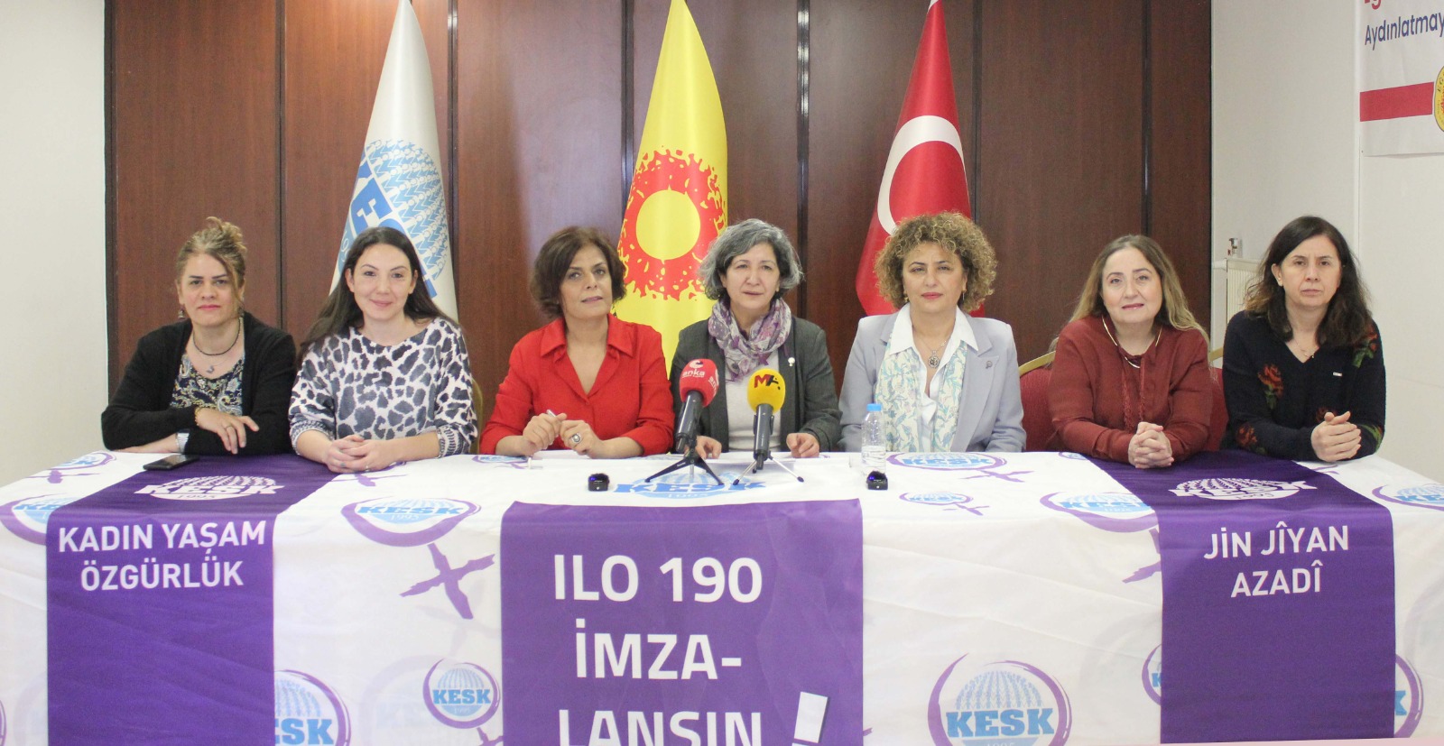 - Çalışma hayatında kadına yönelik her türlü ayrımcılığın terk edilmesi, esnek çalışma biçimlerine, cinsiyetçi iş bölümüne, ücret eşitsizliğine son verilmesi, ILO’nun İşyerinde Taciz ve Şiddeti Önlemeye yönelik 190 sayılı Sözleşmesinin onaylaması için ALANLARDAYIZ!