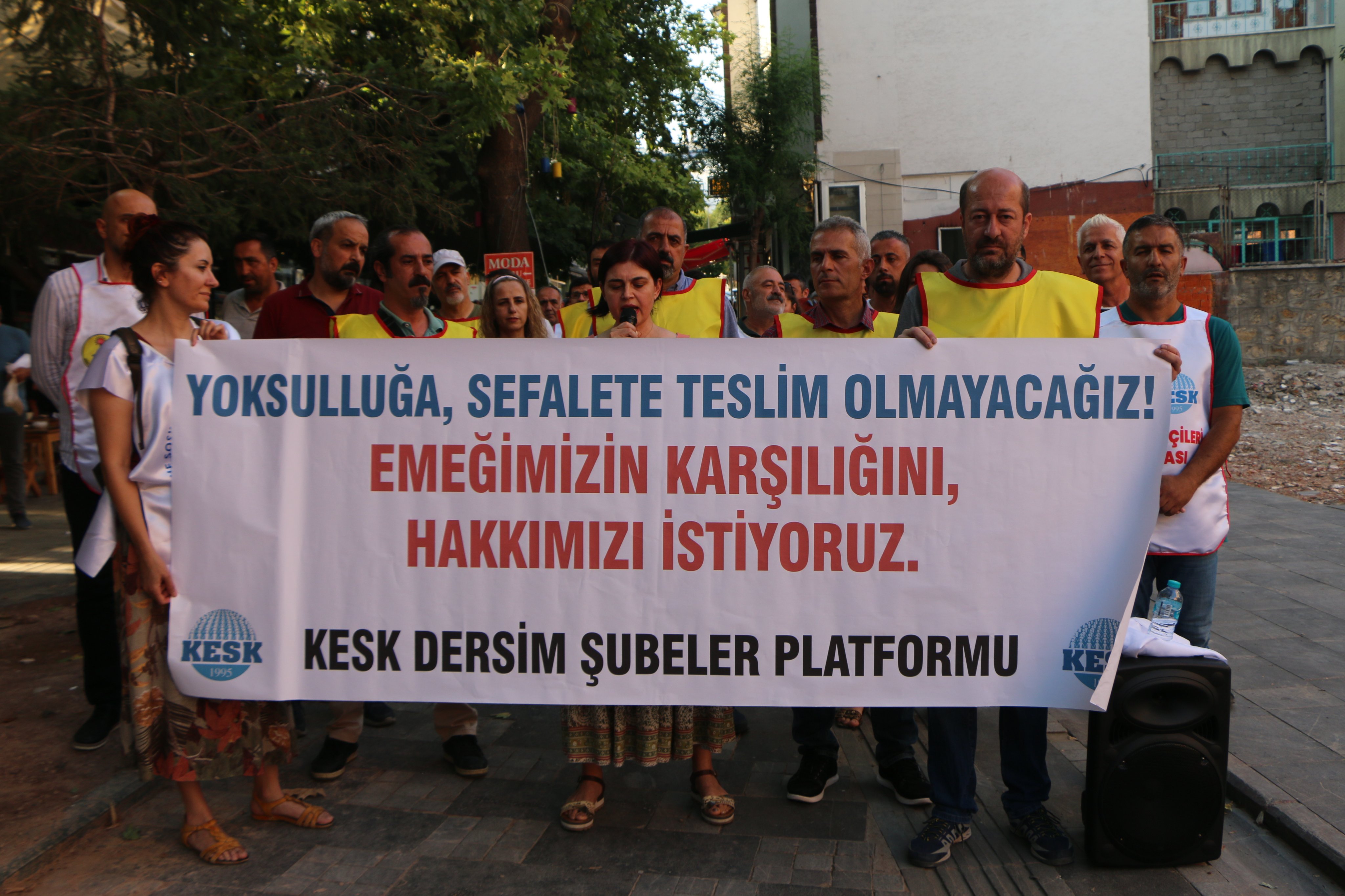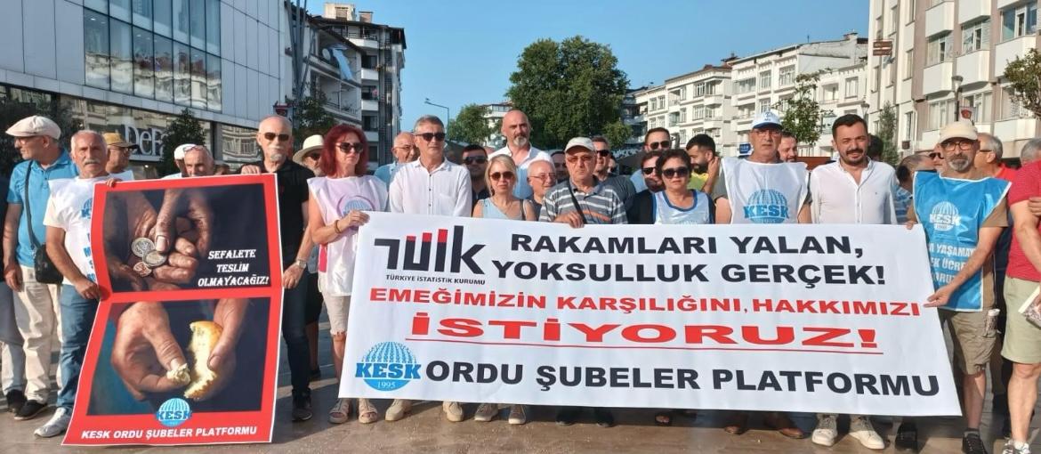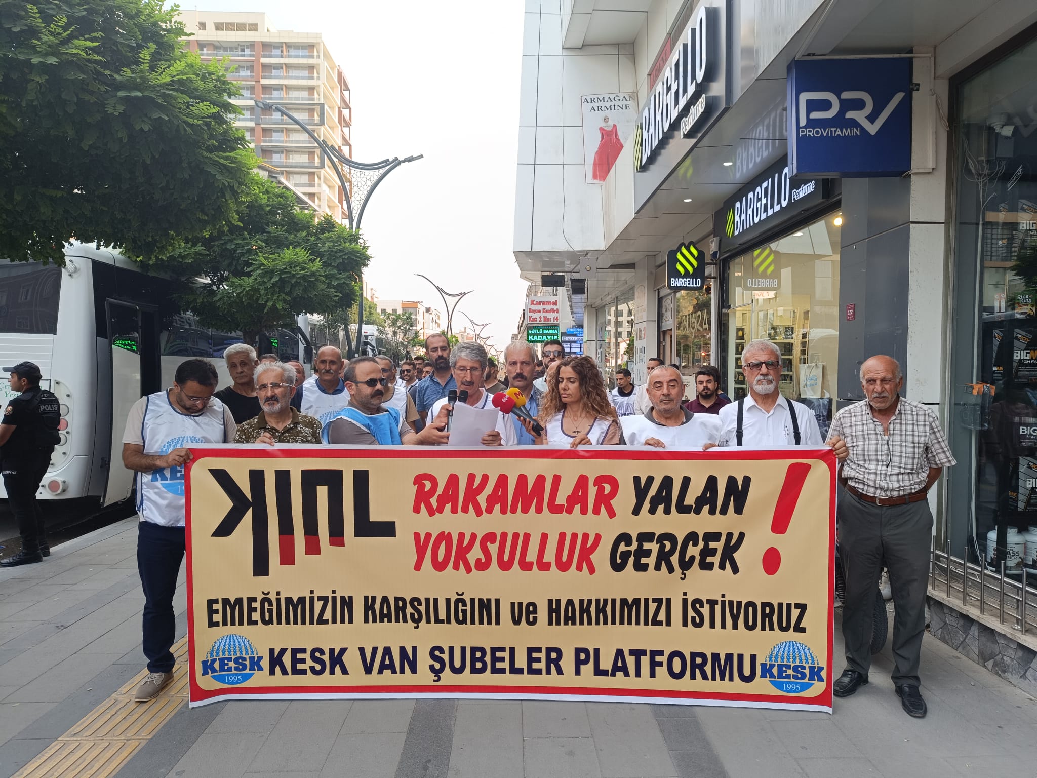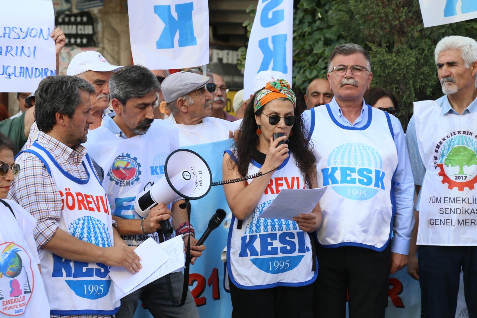 Ankara’da Sakarya Caddesi’nde gerçekleştirilen eylemde ise KESK Eş Genel Başkanı Ahmet Karagöz kısa bir açıklamada bulunarak şunları ifade etti: “Kamu emekçileri ve emekliler iktidarın neoliberal politikaları ve TÜİK’e açıklatırılan sahte enflasyon rakamları eliyle her geçen gün daha da yoksullaştırılıyor. Açlık ve yoksulluk sınırının altında yaşamaya mahkum ediliyor. Tüm bu politikalara, yıllardır hepimize kaybettiren bu yoksulluk ve sefalet düzenine karşı bugün burada insanca yaşayacak ücret, güvenceli iş, güvenli gelecek için omuz omuza mücadele ediyoruz. KESK dünden bugüne yürüttüğü emek ve demokrasi mücadelesini daha da büyütecek, emeğin hakları için mücadeleyi sürdürmeye devam edecektir.”