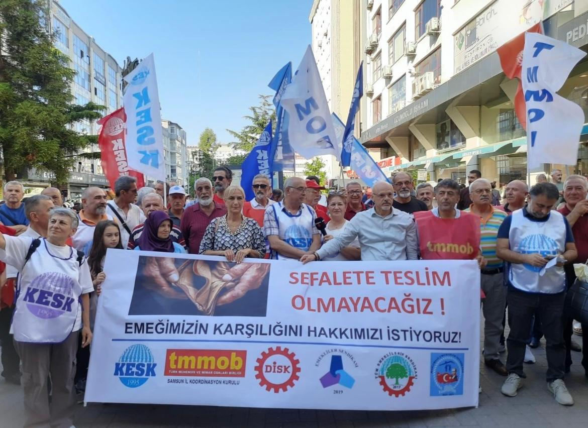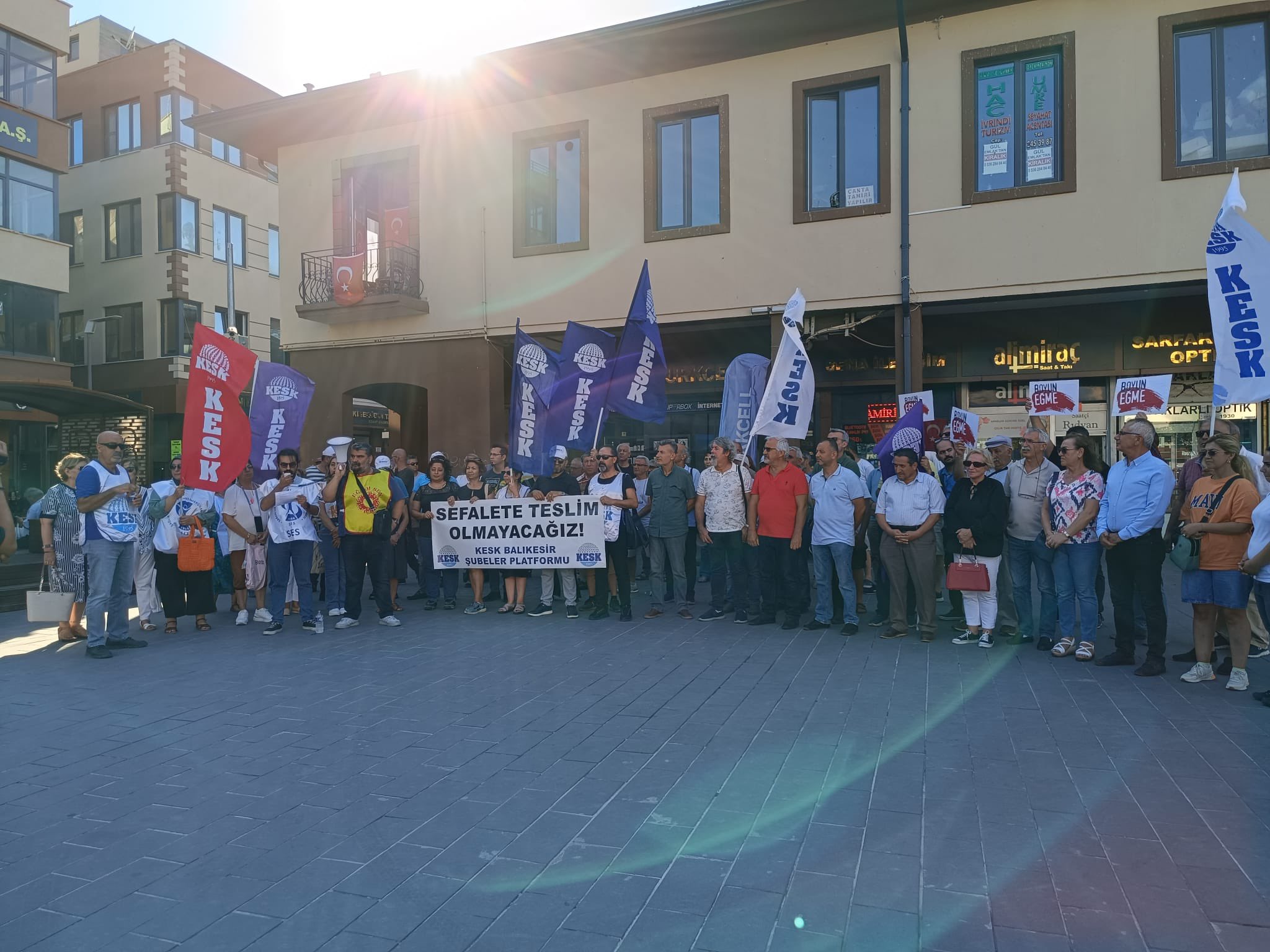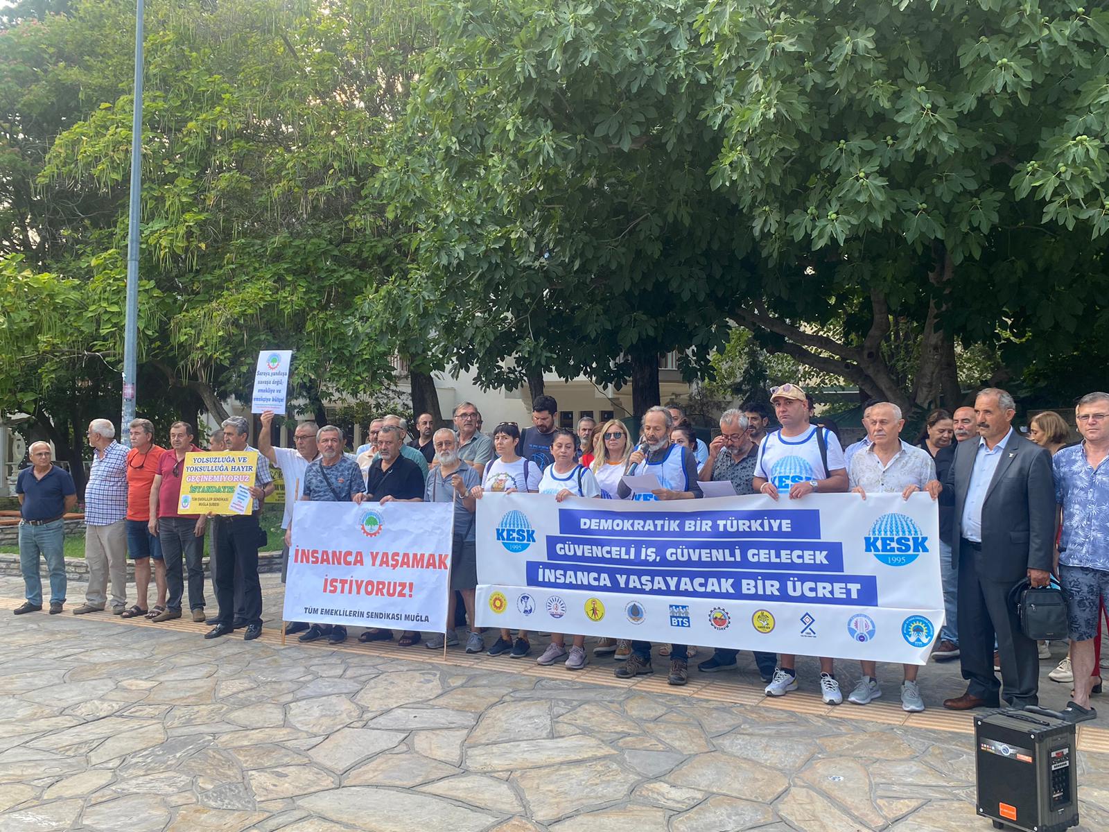 Ankara’da Sakarya Caddesi’nde gerçekleştirilen eylemde ise KESK Eş Genel Başkanı Ahmet Karagöz kısa bir açıklamada bulunarak şunları ifade etti: “Kamu emekçileri ve emekliler iktidarın neoliberal politikaları ve TÜİK’e açıklatırılan sahte enflasyon rakamları eliyle her geçen gün daha da yoksullaştırılıyor. Açlık ve yoksulluk sınırının altında yaşamaya mahkum ediliyor. Tüm bu politikalara, yıllardır hepimize kaybettiren bu yoksulluk ve sefalet düzenine karşı bugün burada insanca yaşayacak ücret, güvenceli iş, güvenli gelecek için omuz omuza mücadele ediyoruz. KESK dünden bugüne yürüttüğü emek ve demokrasi mücadelesini daha da büyütecek, emeğin hakları için mücadeleyi sürdürmeye devam edecektir.”