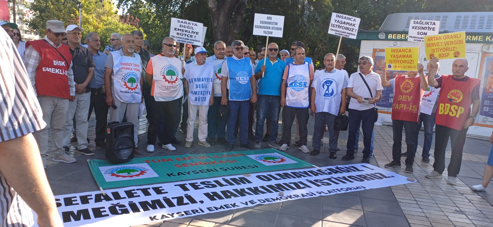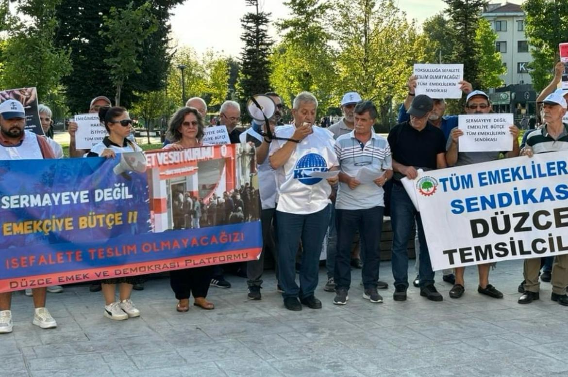 - Yandaş konfederasyonlarla yapılan ve yoksulluğumuzu derinleştiren toplu satış sözleşmeleri değil, emeklilerin de sendikaları aracılığı ile temsil edildiği grevli gerçek bir toplu sözleşme istiyoruz.