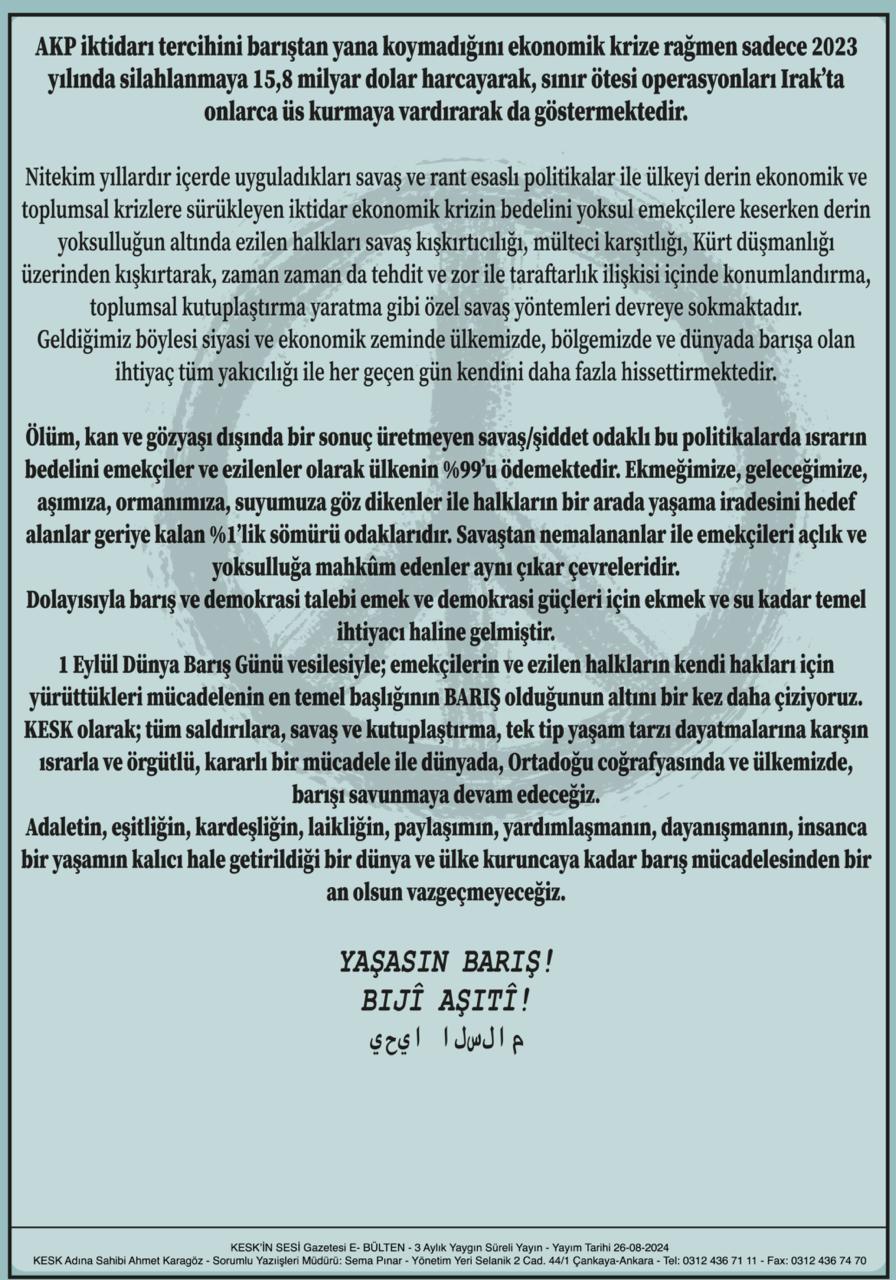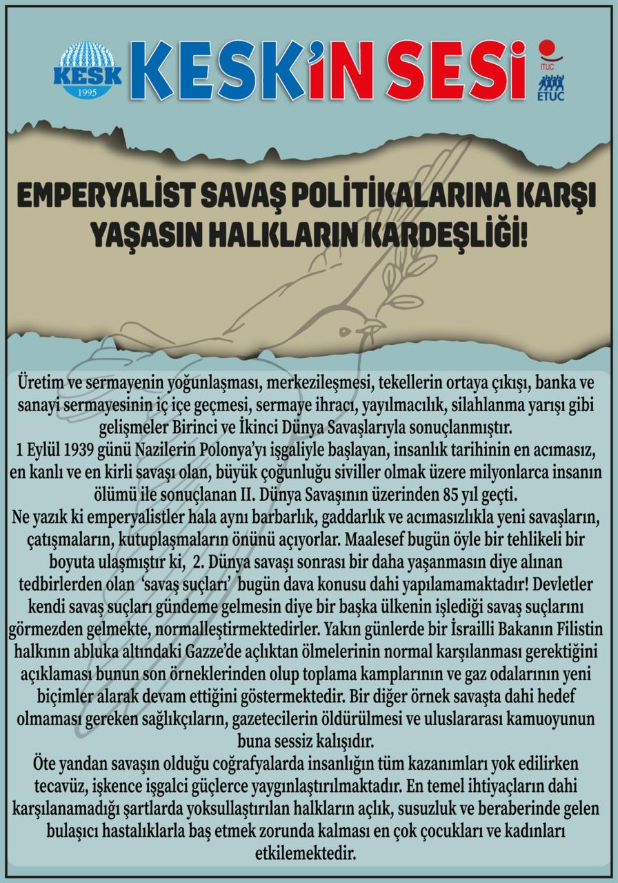 1 Eylül Dünya Barış Günü Afiş ve Bildiri