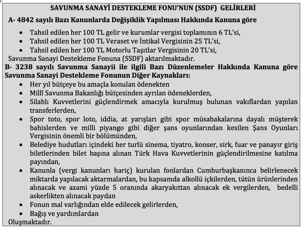 Öncelikle aşağıdaki tablodan da görüleceği üzere mevcut durumda attığımız her adımda zaten Savunma Sanayi Destekleme Fonuna (SSDF) cebimizden kaynak aktarıyoruz.