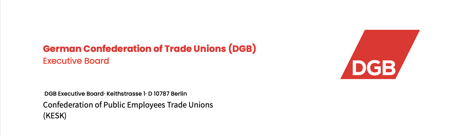 Alman Sendikalar Konfederasyonu (DGB) adına, 30 Kasım’da Ankara’da düzenleyeceğiniz merkezi mitingiz vesilesiyle sizlere dayanışma duygularımızı iletiyoruz. Nitelikli kamusal hizmetler için yükselttiğiniz yeterli bütçe talebiniz sadece Türkiye’deki insanların esenliği için değil aynı zamanda da toplumsal adaletin korunması, kamu emekçilerinin insan onuruna yakışır bir biçimde yaşaması için de kritik öneme sahip.