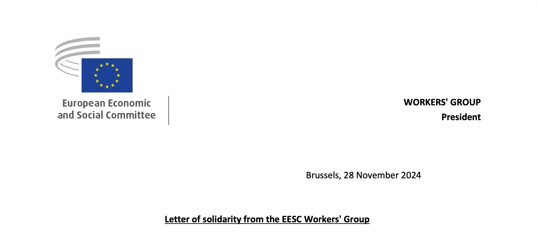 Letter of solidarity on behalf of the EESC Workers’ Group