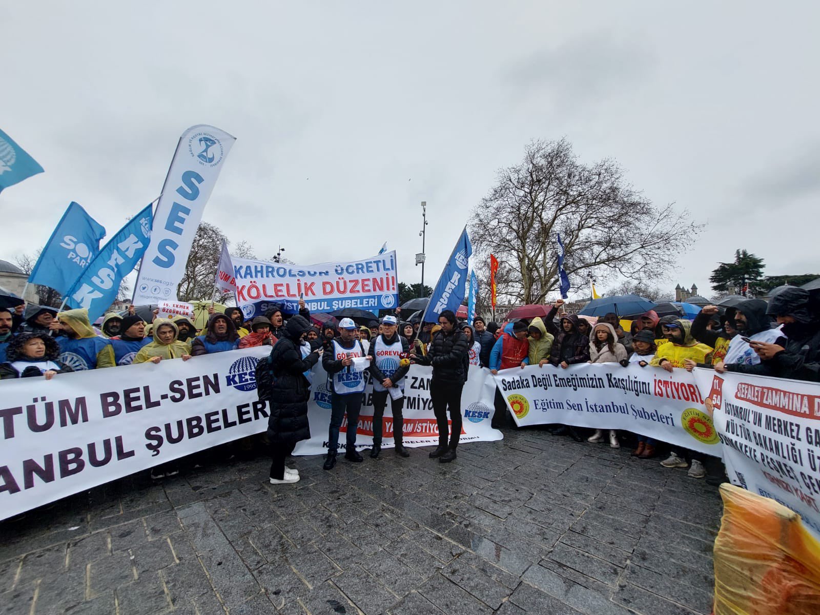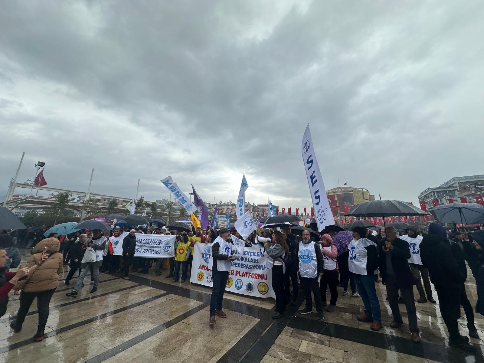 Bizleri yoksulluğa ve güvencesizliğe sürükleyen politikalara karşı güçlerimizi birleştiriyor, sesimizi yükseltiyoruz. Emeğimizin karşılığını almak, çocuklarımıza daha iyi bir gelecek bırakmak için bugün tüm işyerlerimizde iş bırakıyor ve siyasi iktidarı uyarıyoruz. Çünkü geçinemiyoruz!