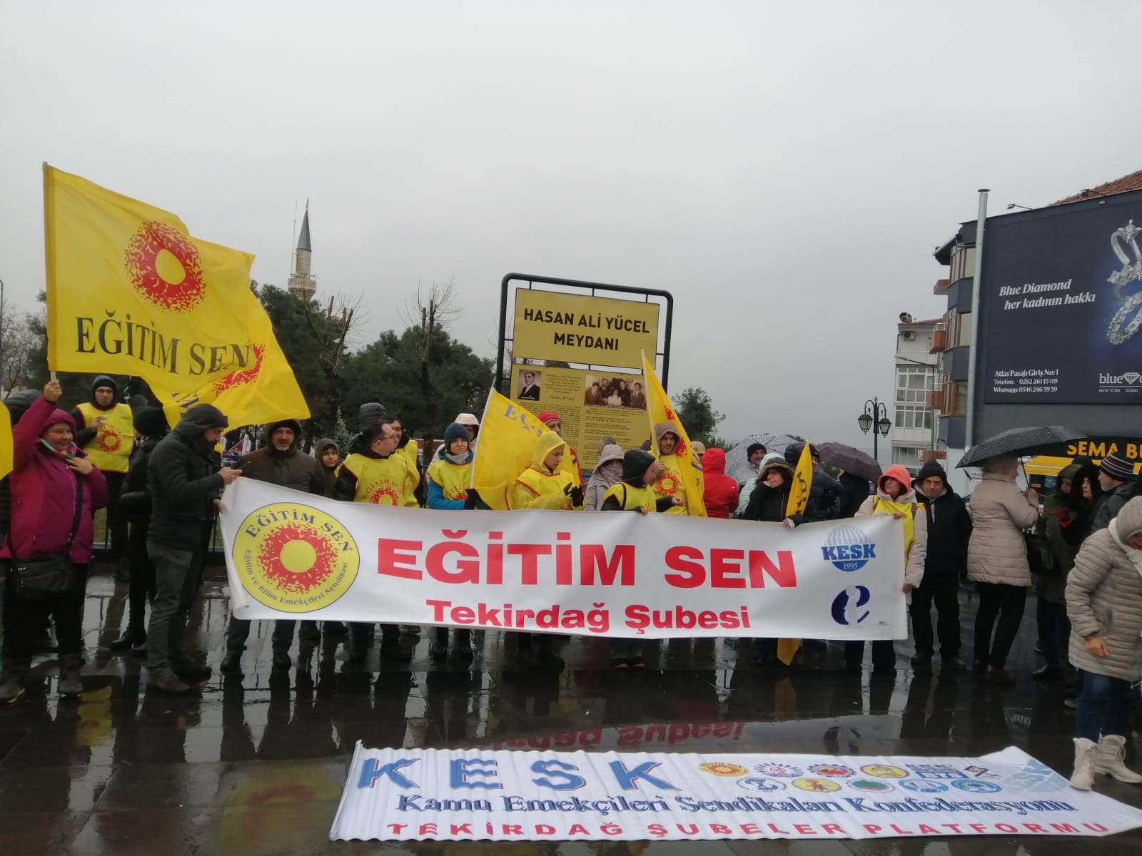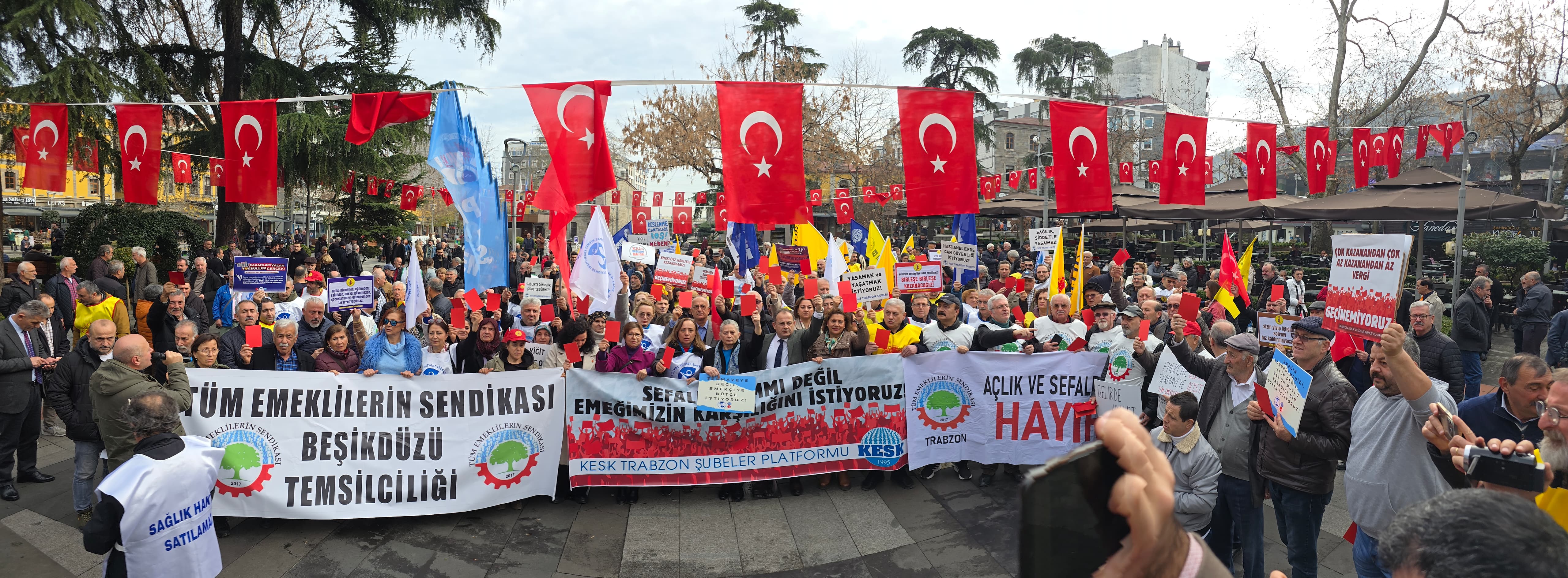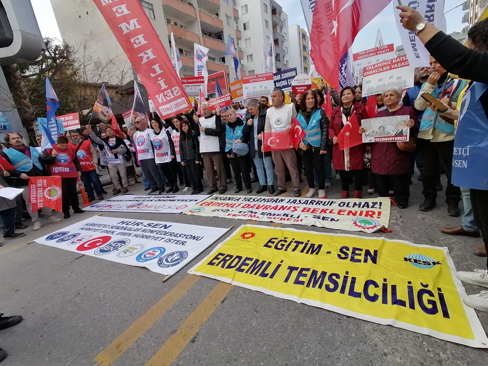 Siyasi iktidarın toplumun büyük bölümünü oluşturan işçiler, kamu emekçileri ve emeklileri sefalete mahkûm eden politikalarına ve emeğimizin değersizleştirilmesine karşı bir kez daha sesimizi yükseltmek ve taleplerimizi kamuoyuyla paylaşmak için buradayız. Temel tüketim maddelerine ve kiralara yapılan yüksek oranlı zamlar, kamu emekçilerinin geçim koşullarını zorlaştırırken, alım gücümüzün her geçen gün biraz daha düşmesine neden oluyor. Bu nedenle, vergide adaletin sağlanması, ek ödemelerin emekliliğe yansıtılması, insanca yaşayacak bir ücret talebi bugün tüm kamu emekçilerinin ortak talebi haline gelmiş durumdadır.