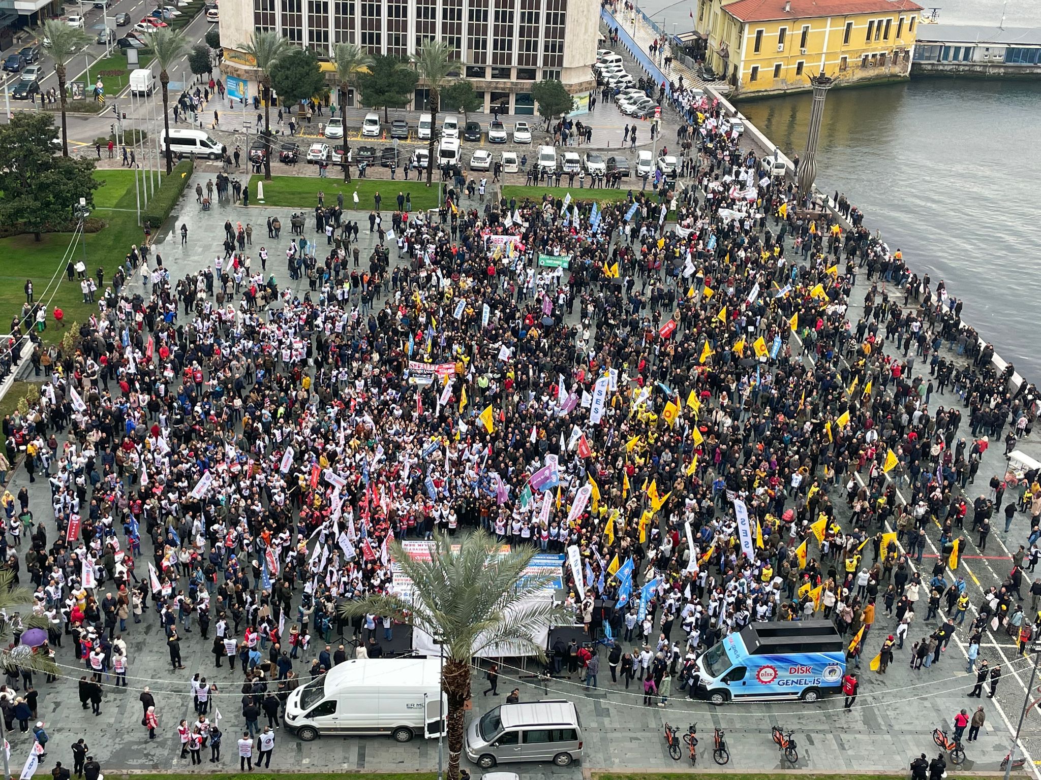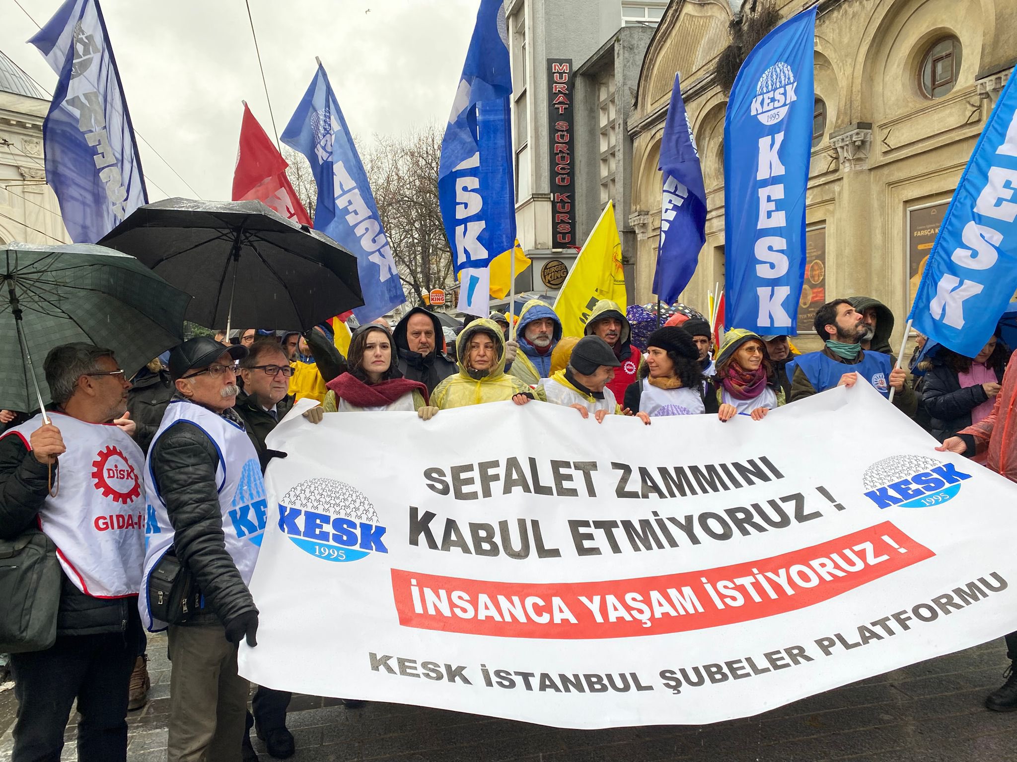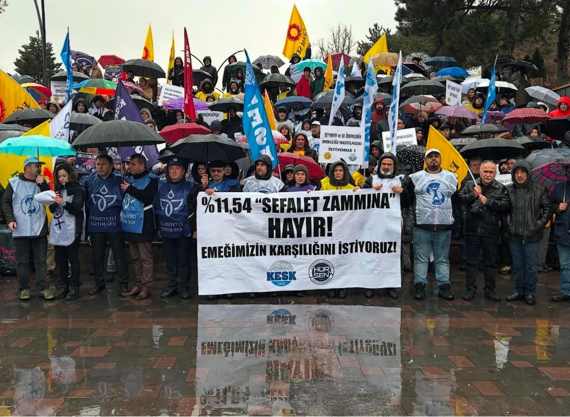 Bugün kamu emekçileri KESK öncülüğünde ülke çapında 81 ilde iktidarın sefalet zamlarına, açlığa, yoksulluğa, sermayeden yana emek düşmanı politikalara karşı iş bırakarak iktidarı uyardı. Greve KESK ile birlikte ASİM-SEN, BASK, HÜR SEN Konfederasyonu ve Birleşik Kamu-İş de katıldı.