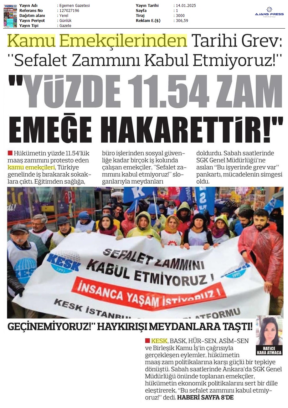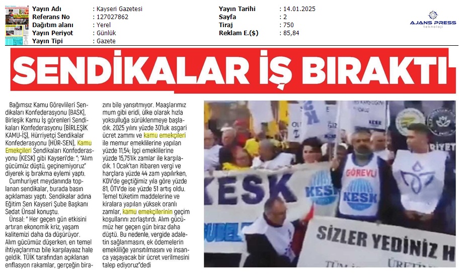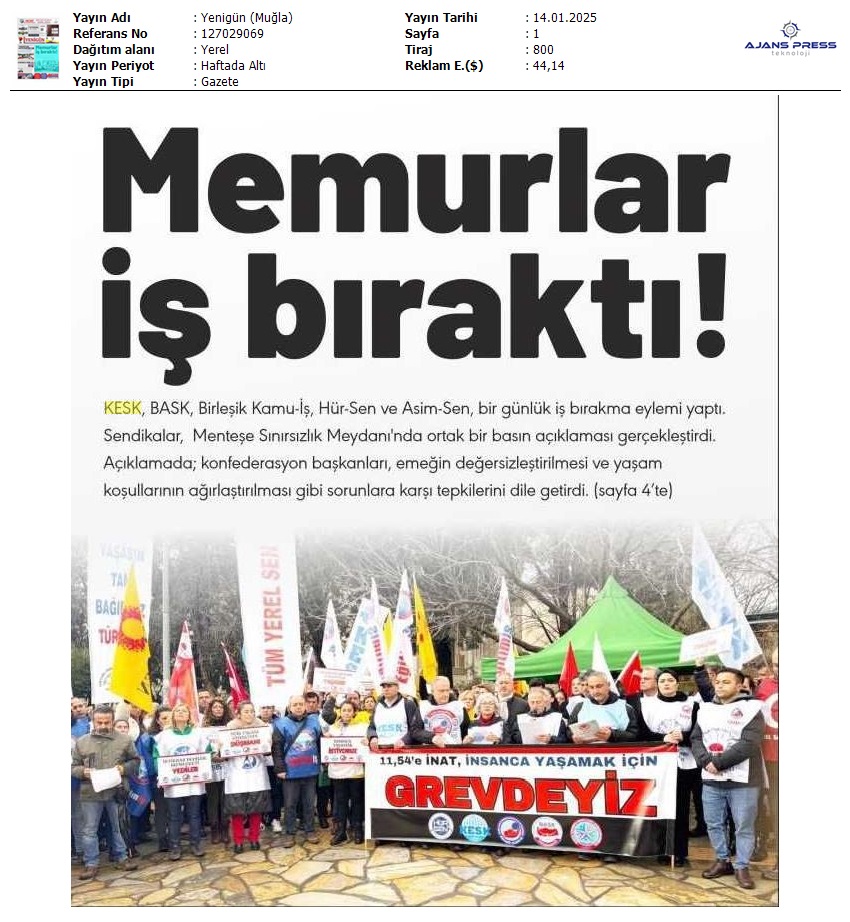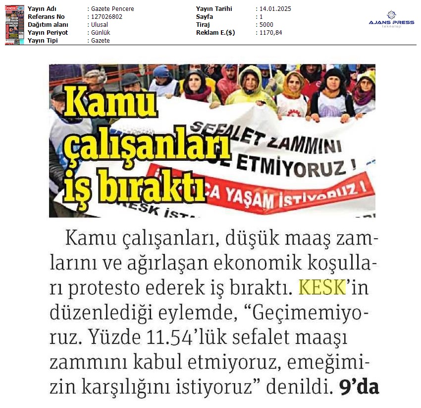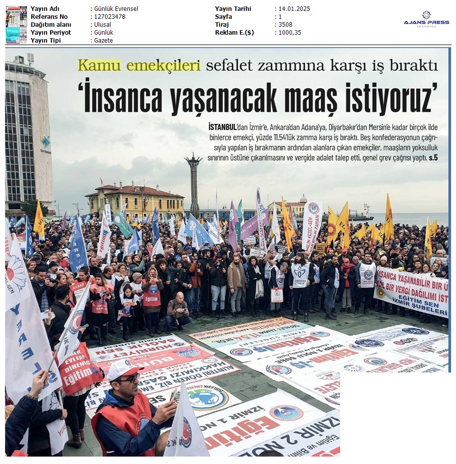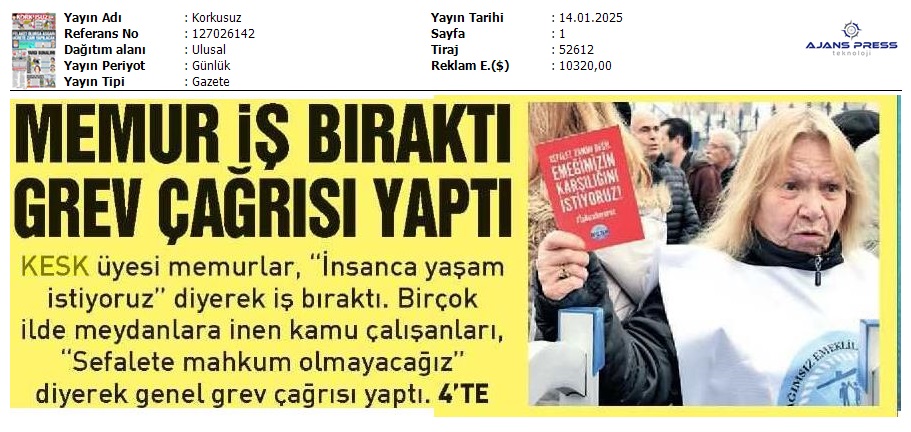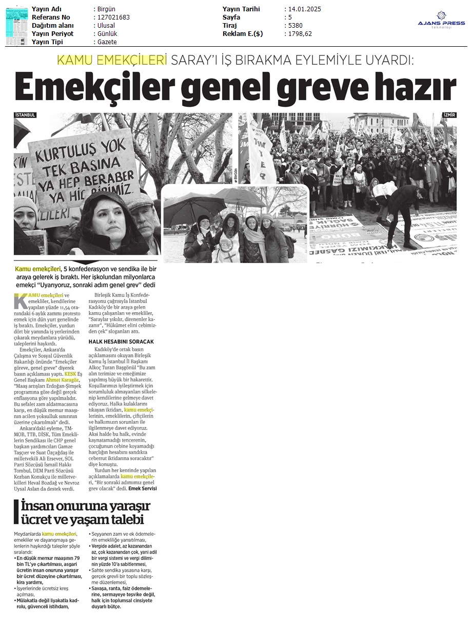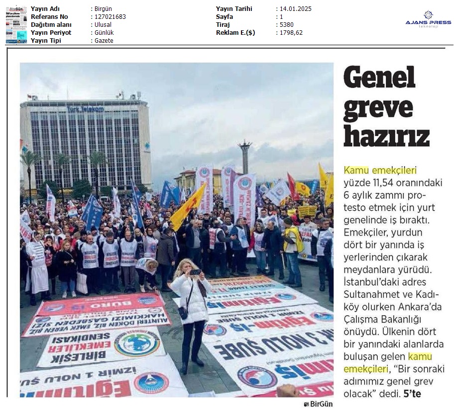 Basında 13 Ocak İş Bırakma Grevimizi