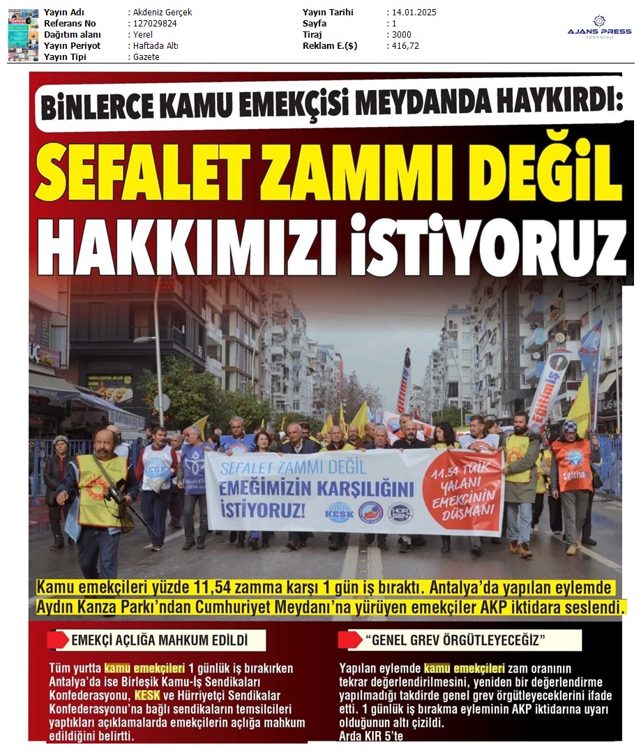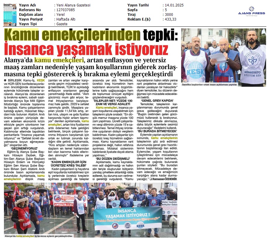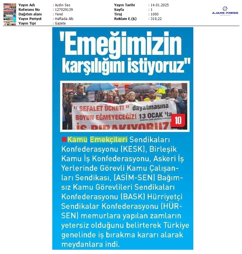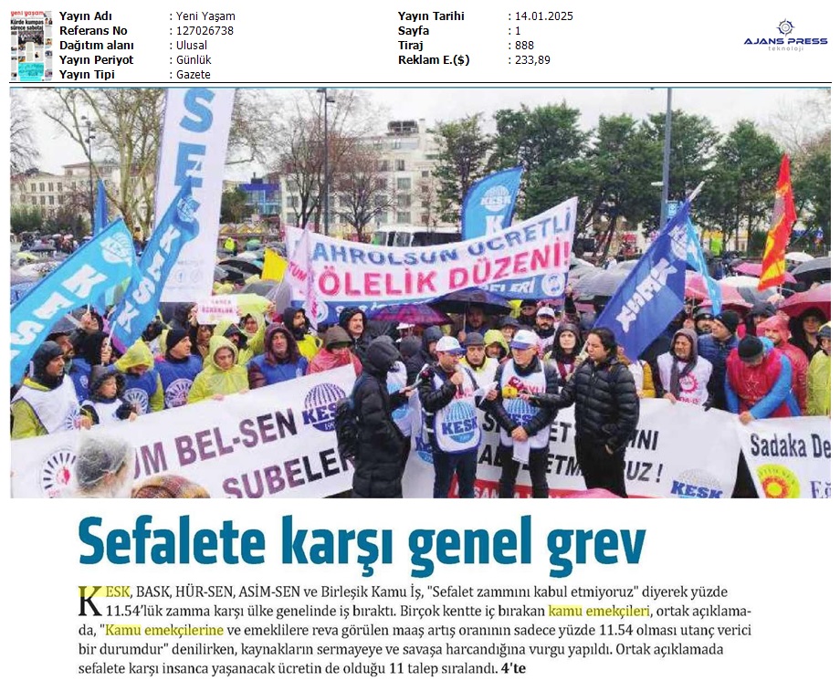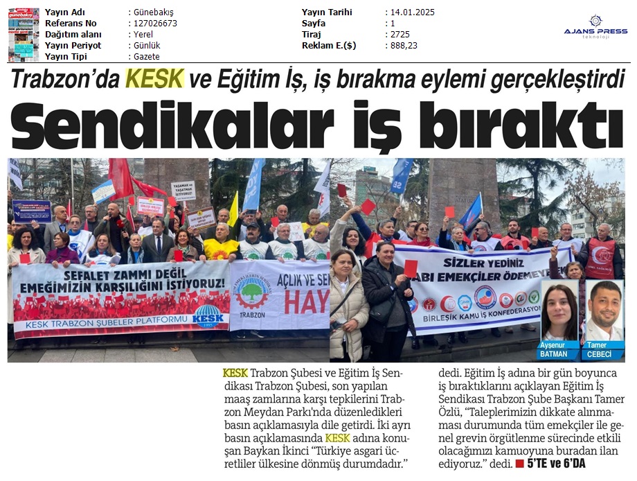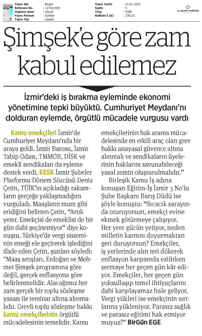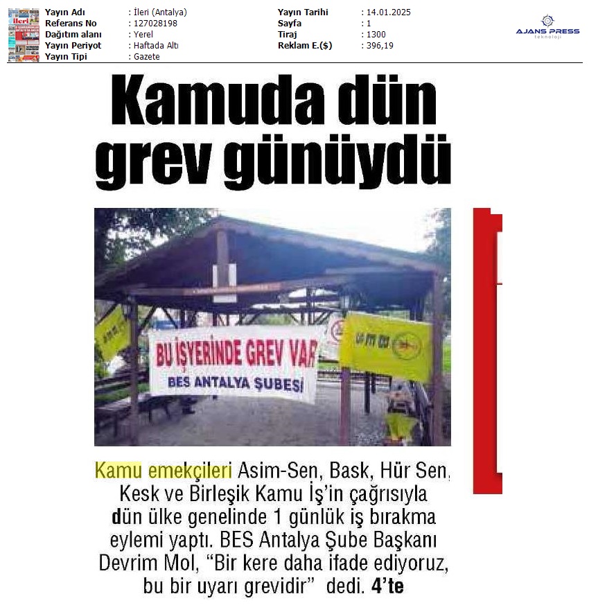 Basında 13 Ocak İş Bırakma Grevimizi