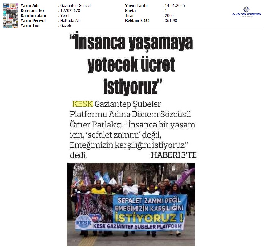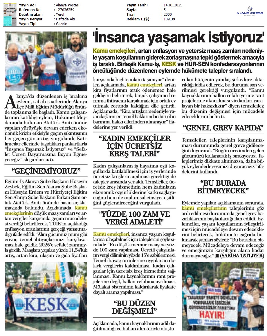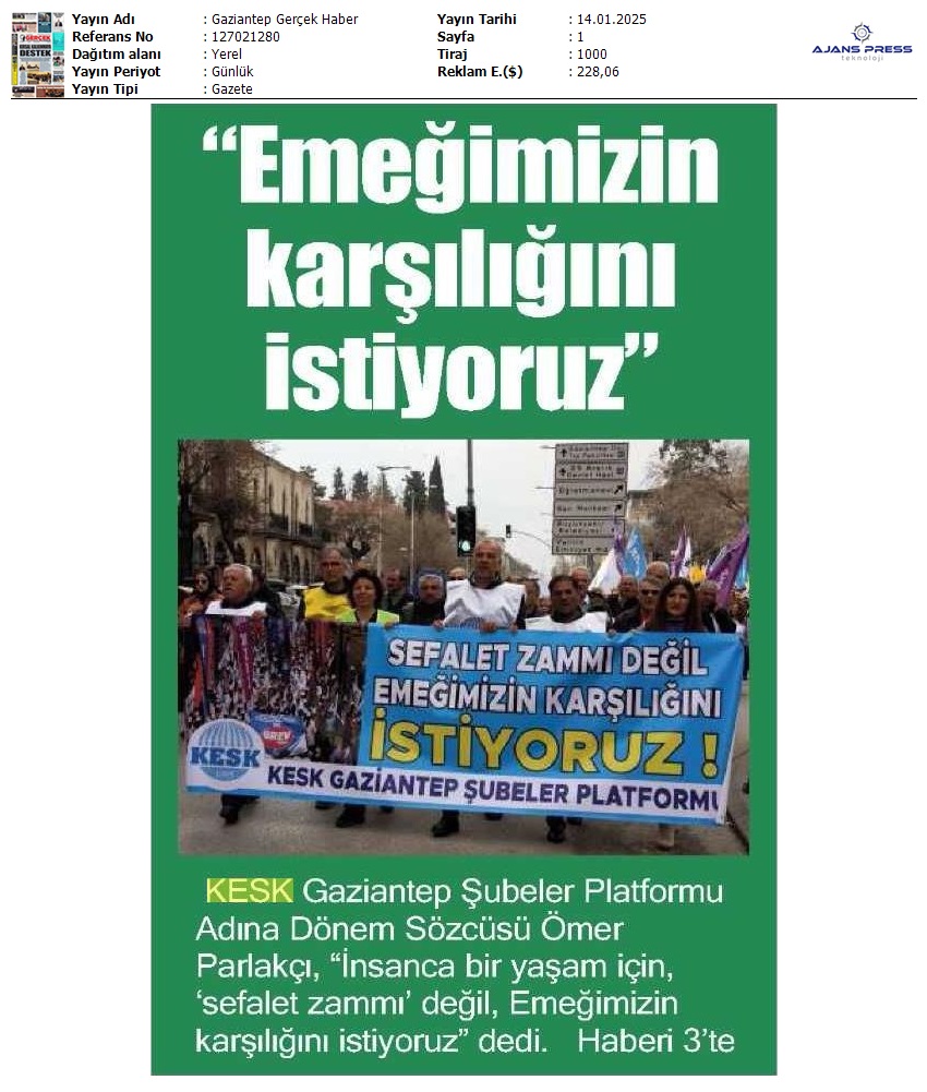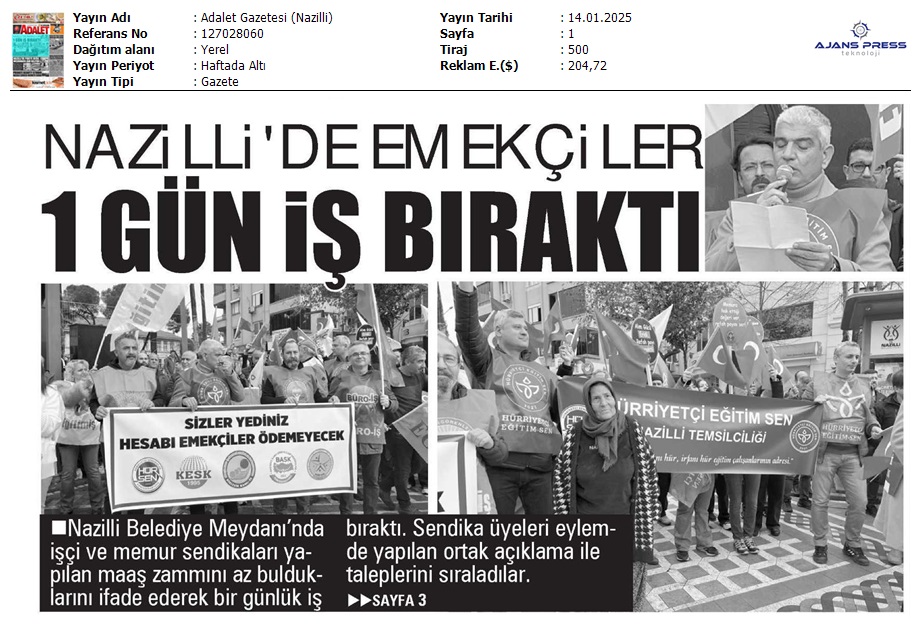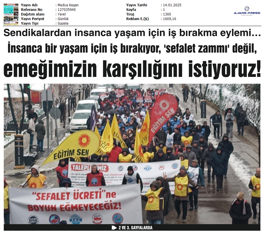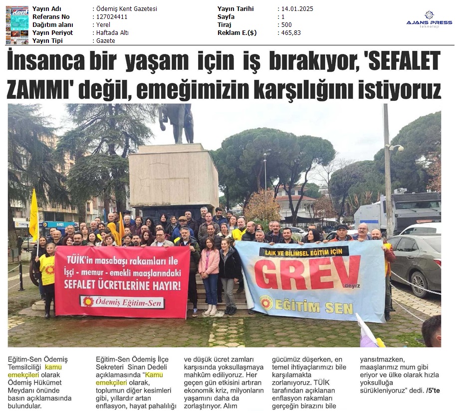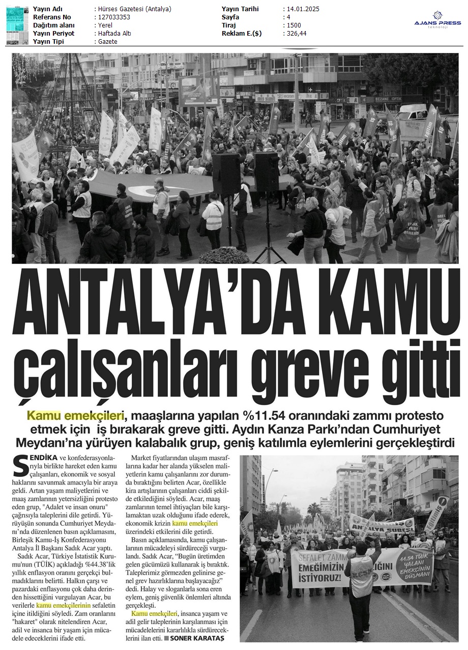 Basında 13 Ocak İş Bırakma Grevimizi