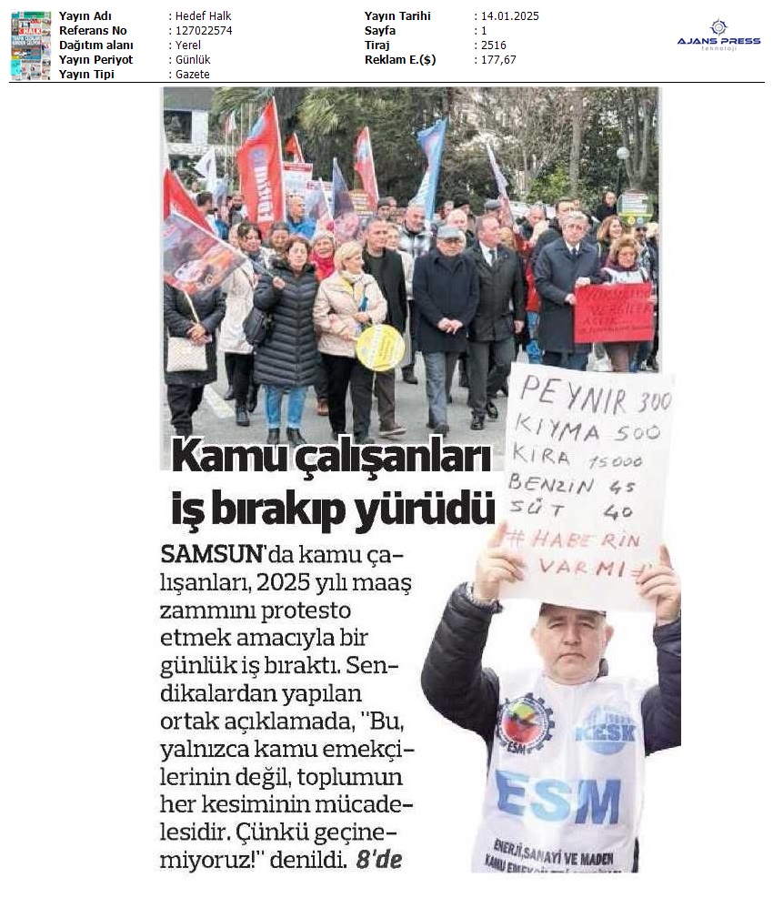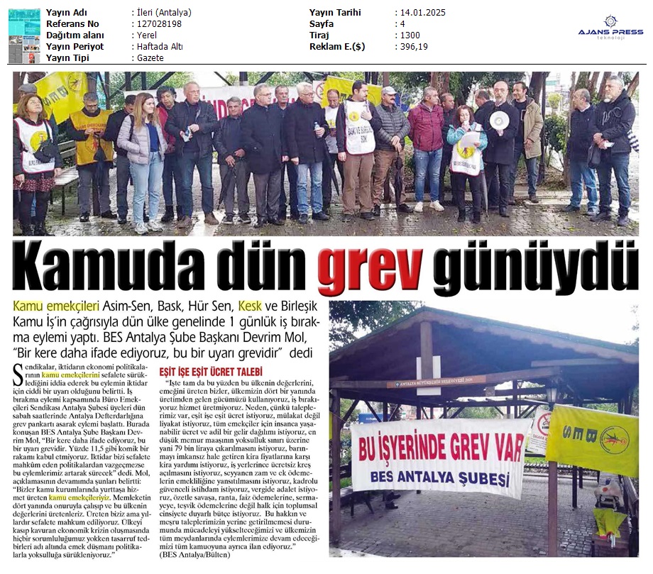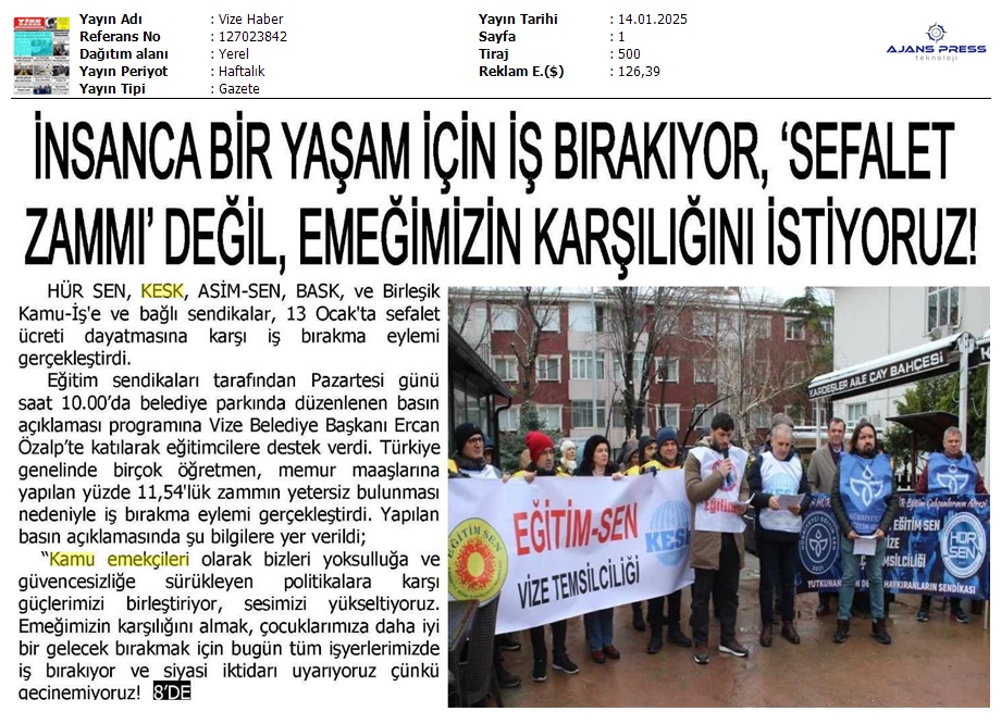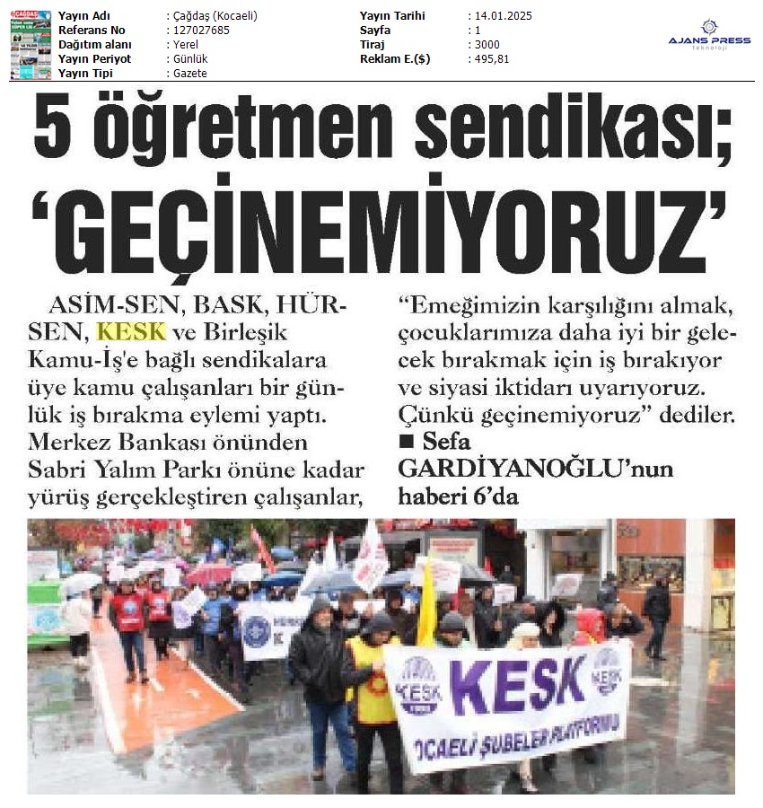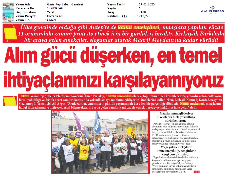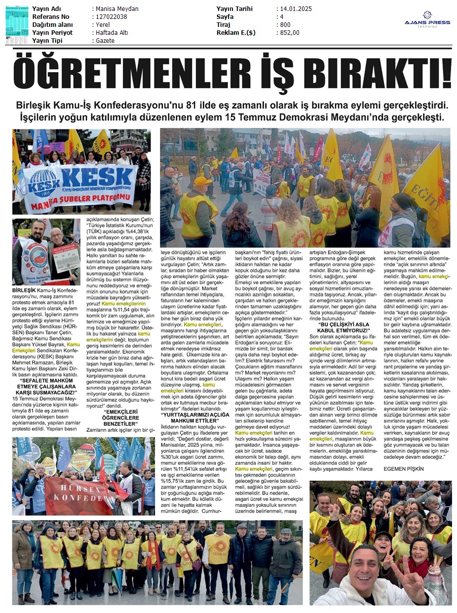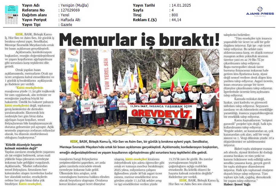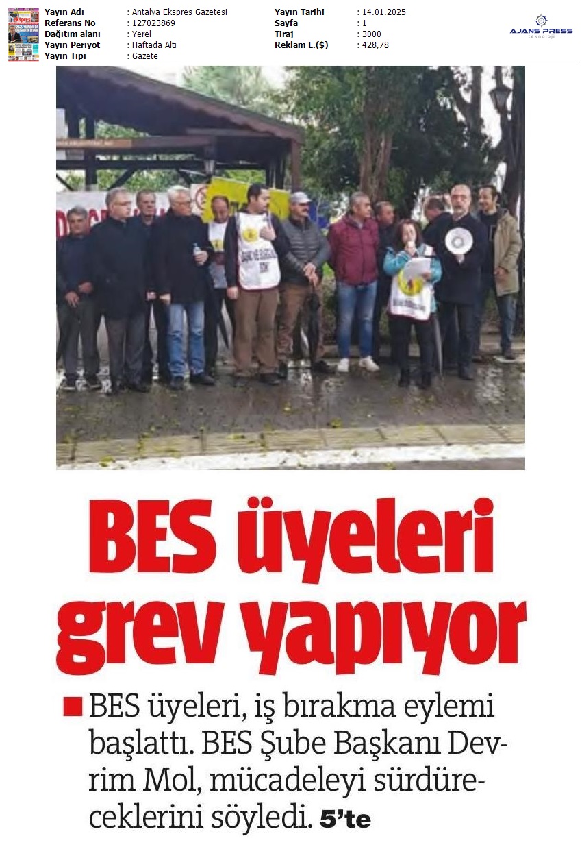 Basında 13 Ocak İş Bırakma Grevimizi