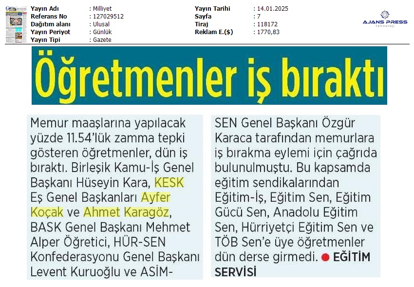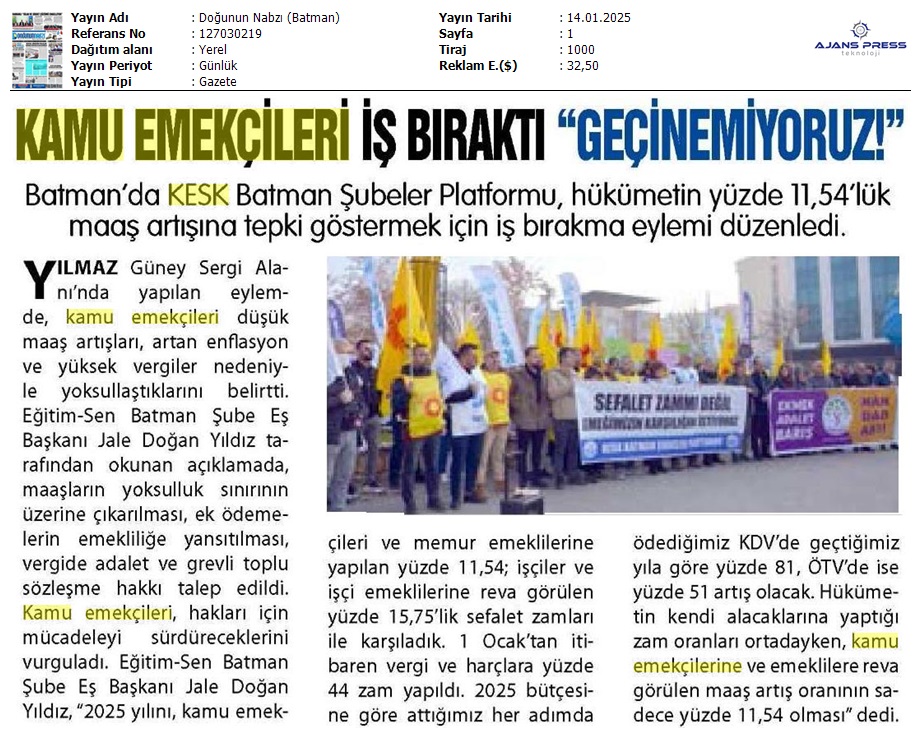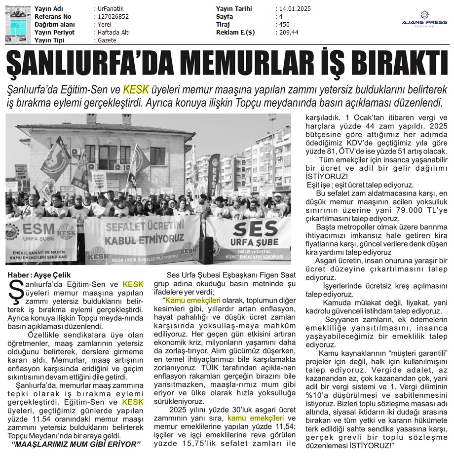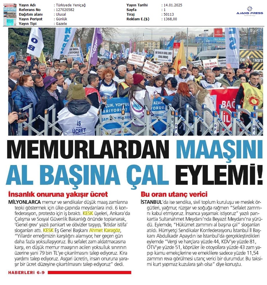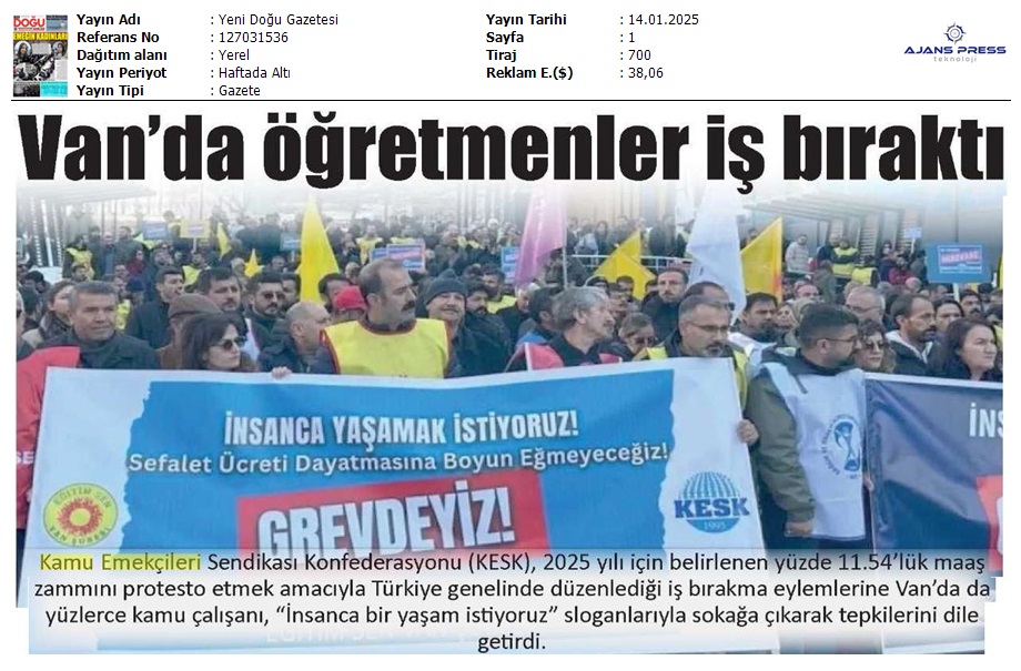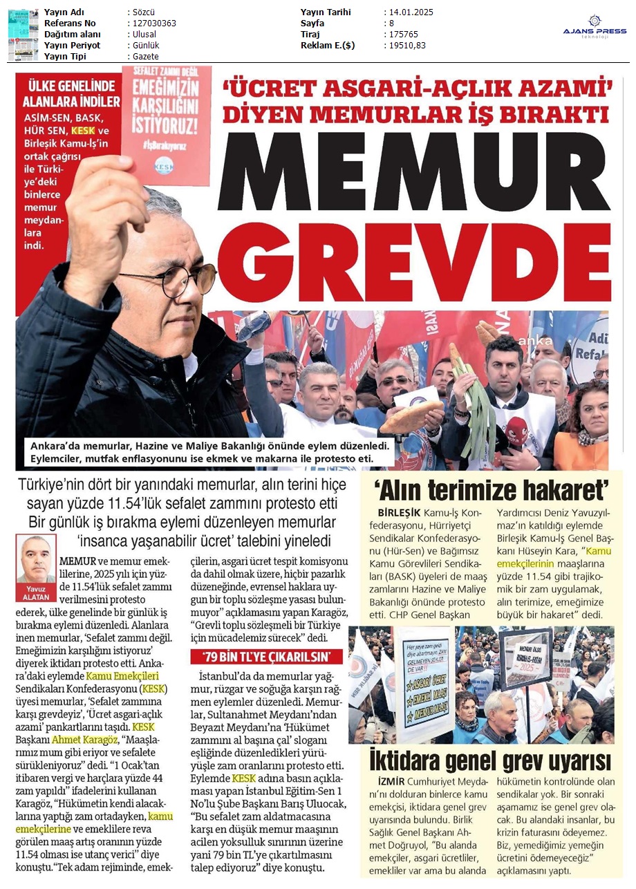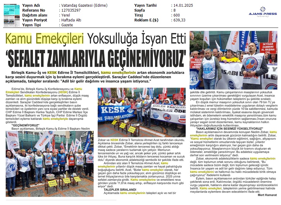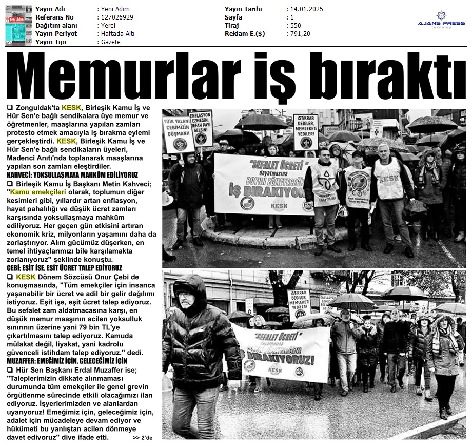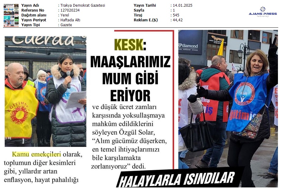 Basında 13 Ocak İş Bırakma Grevimizi