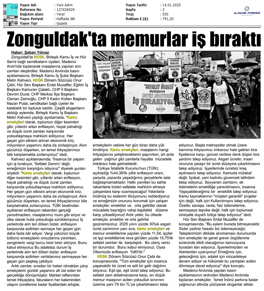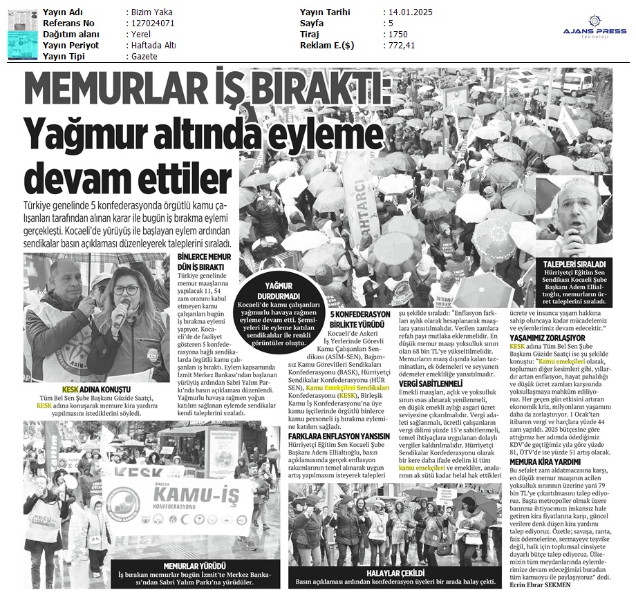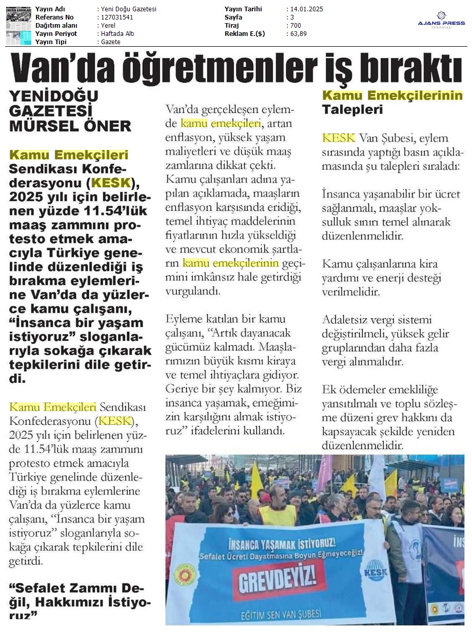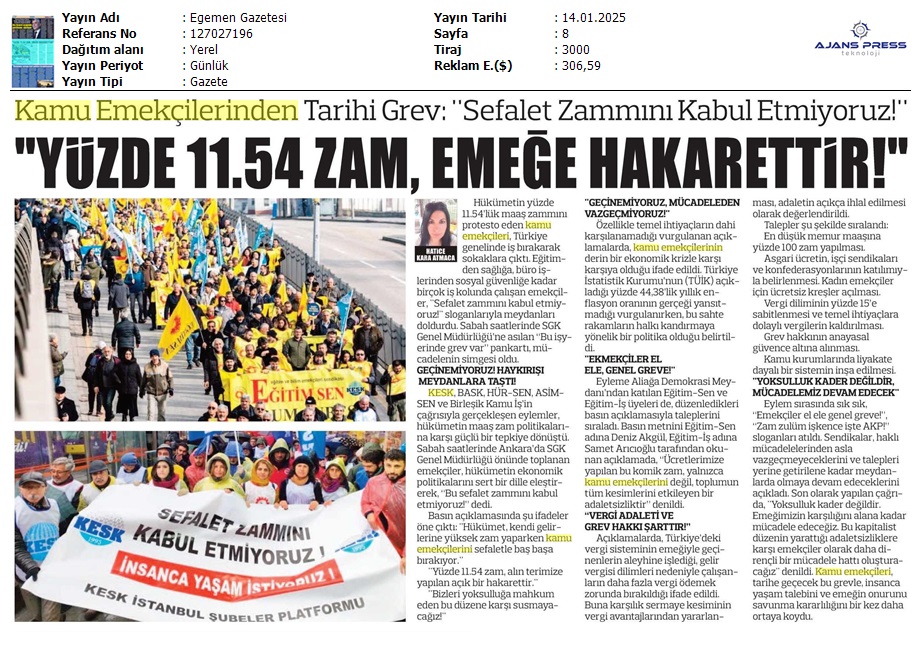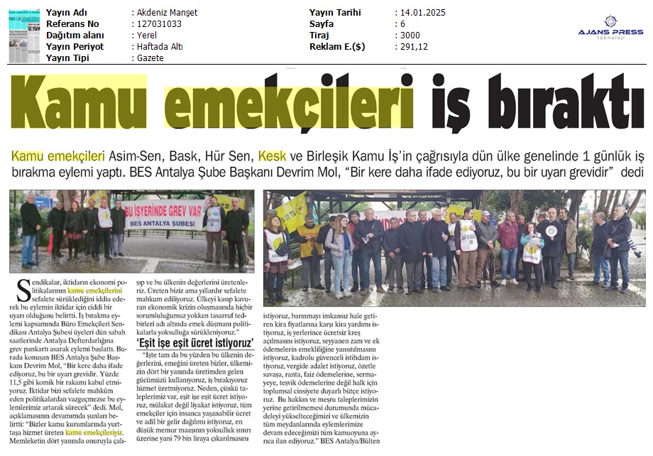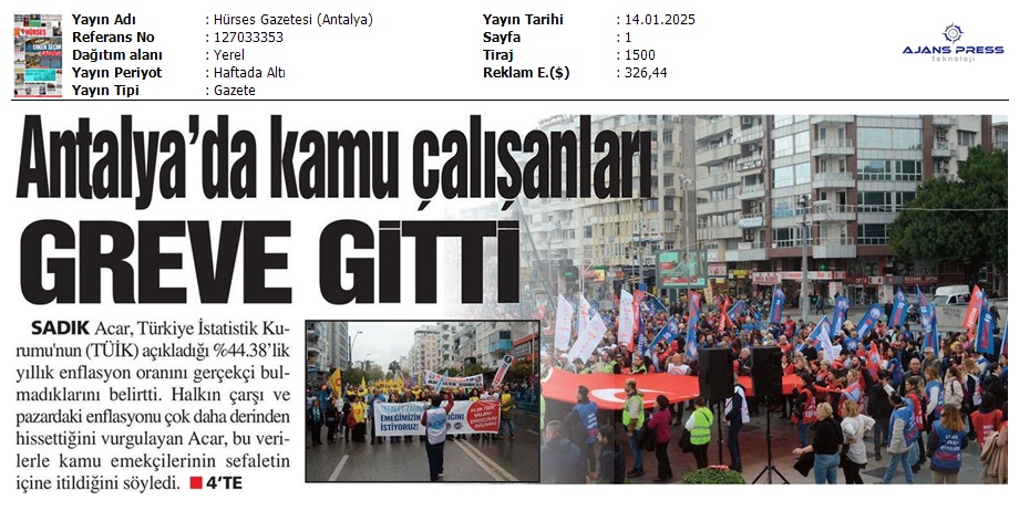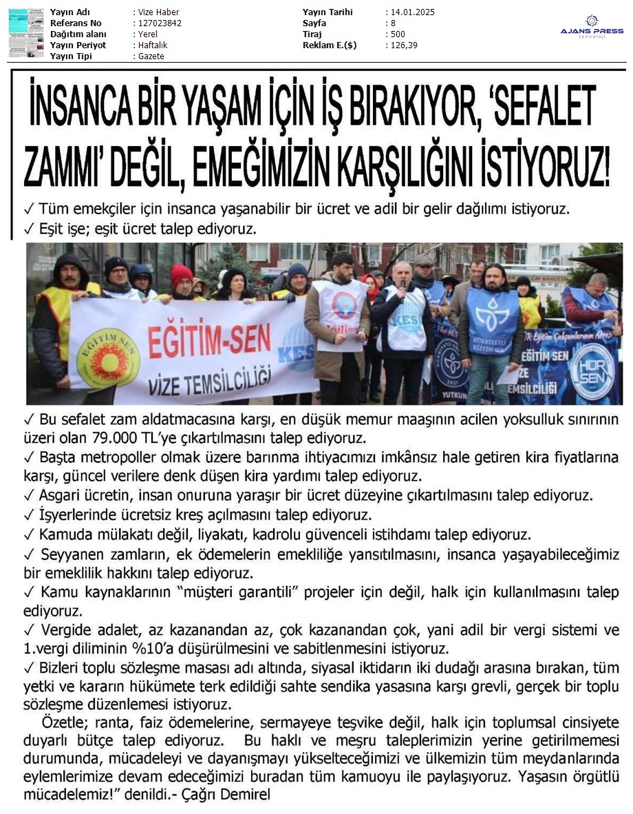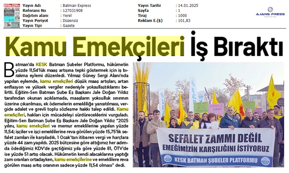 Basında 13 Ocak İş Bırakma Grevimizi
