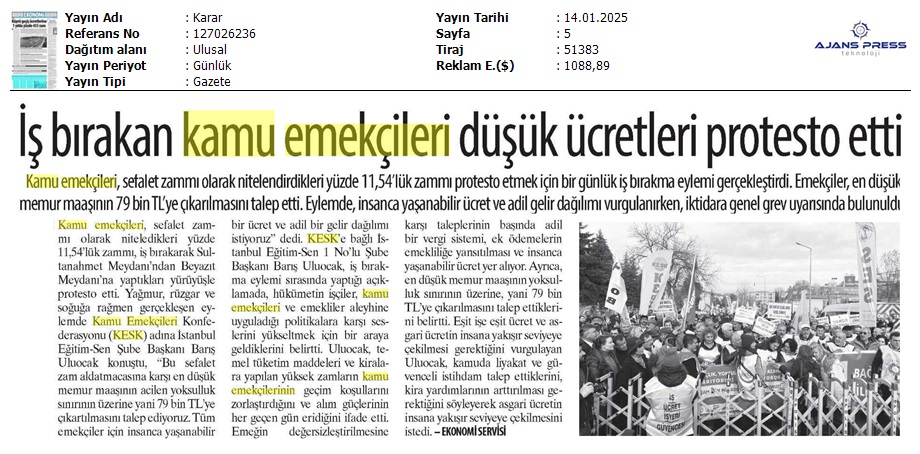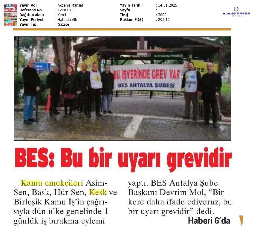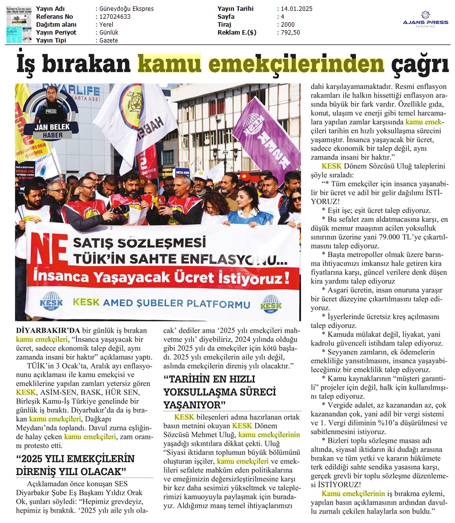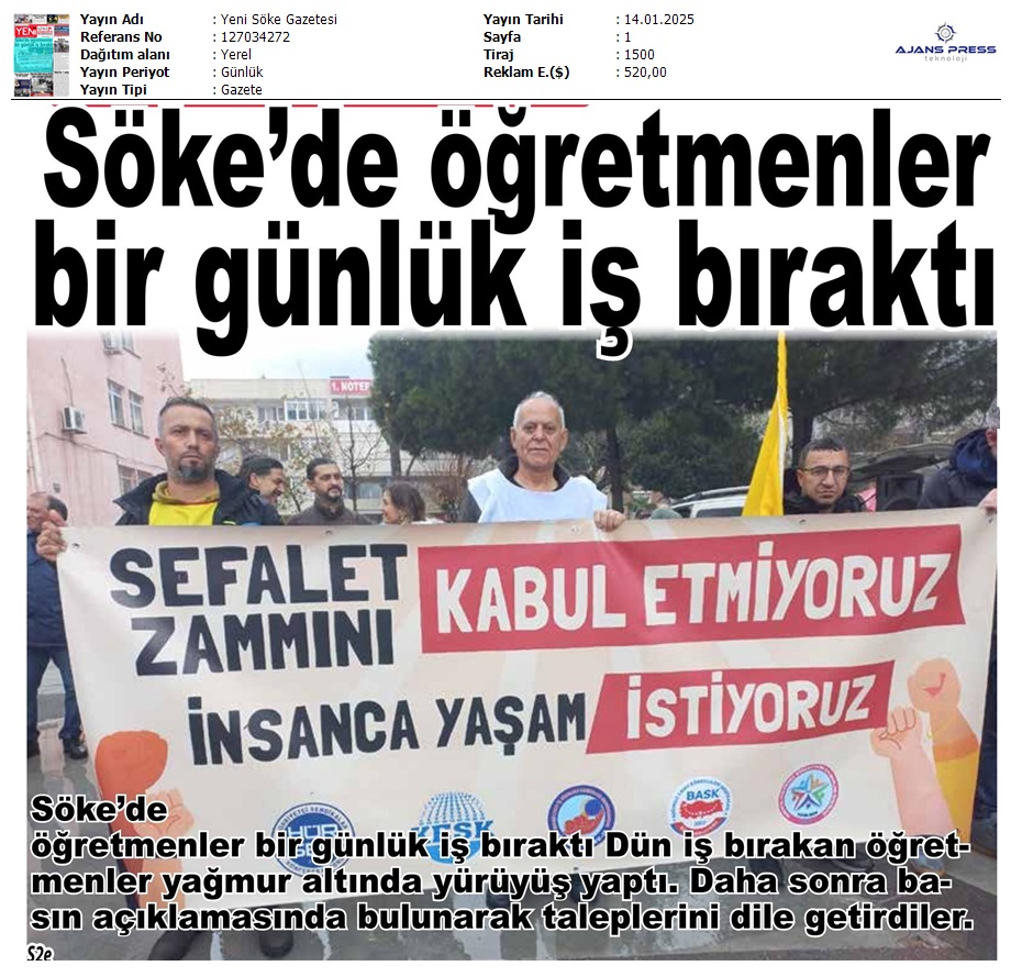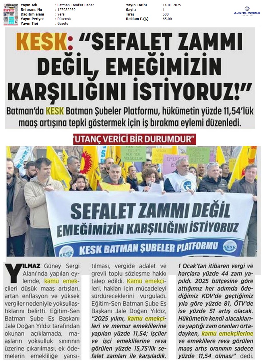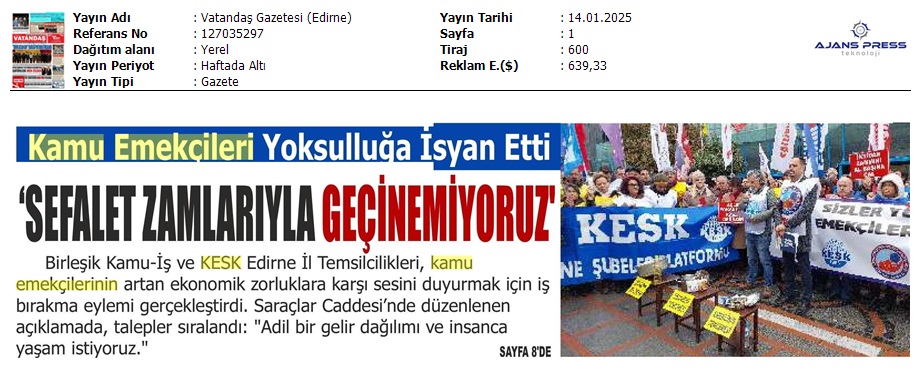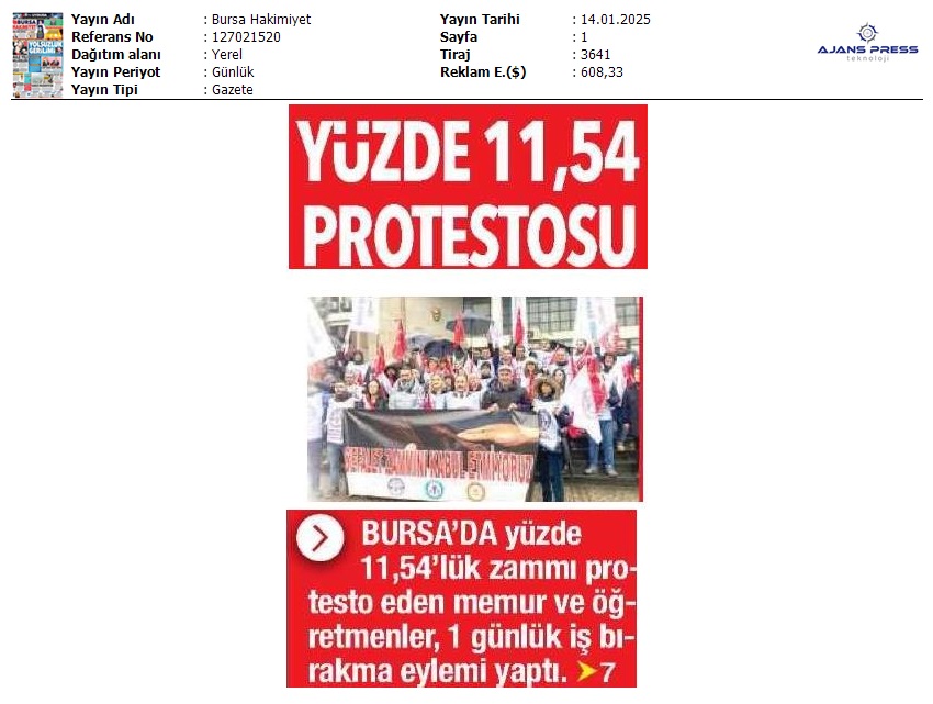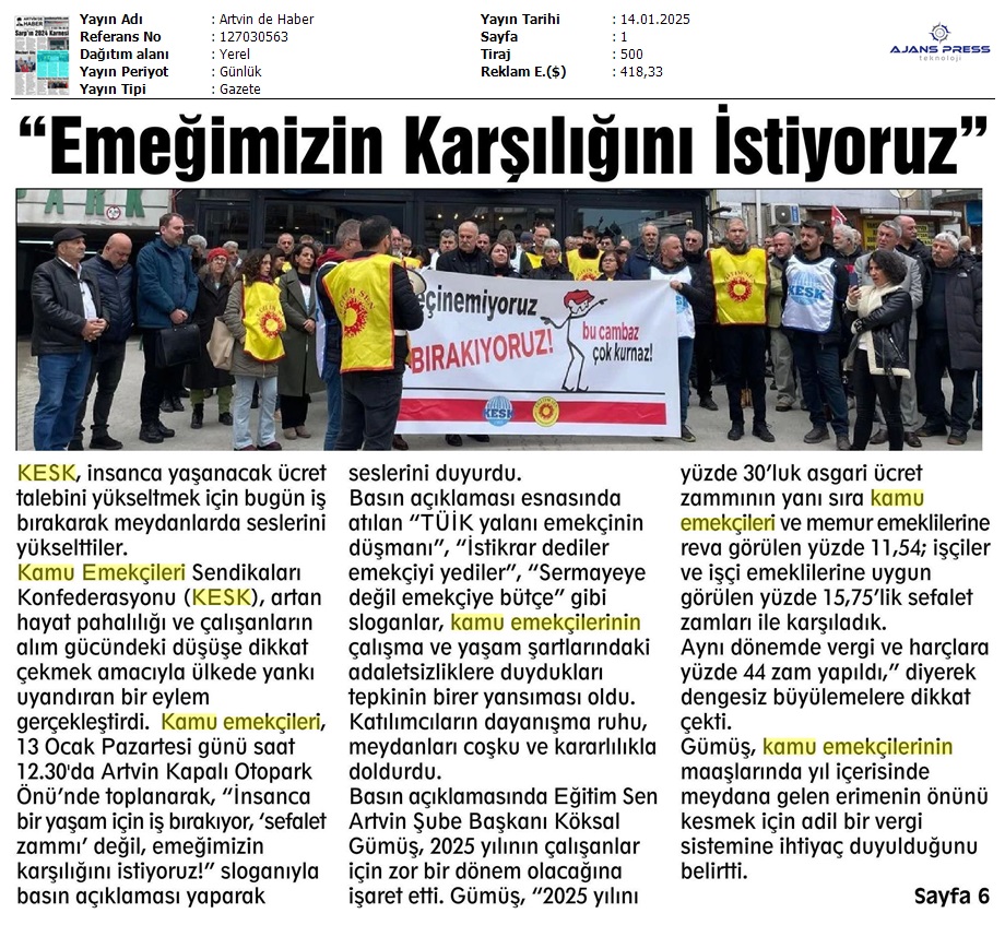 Basında 13 Ocak İş Bırakma Grevimizi