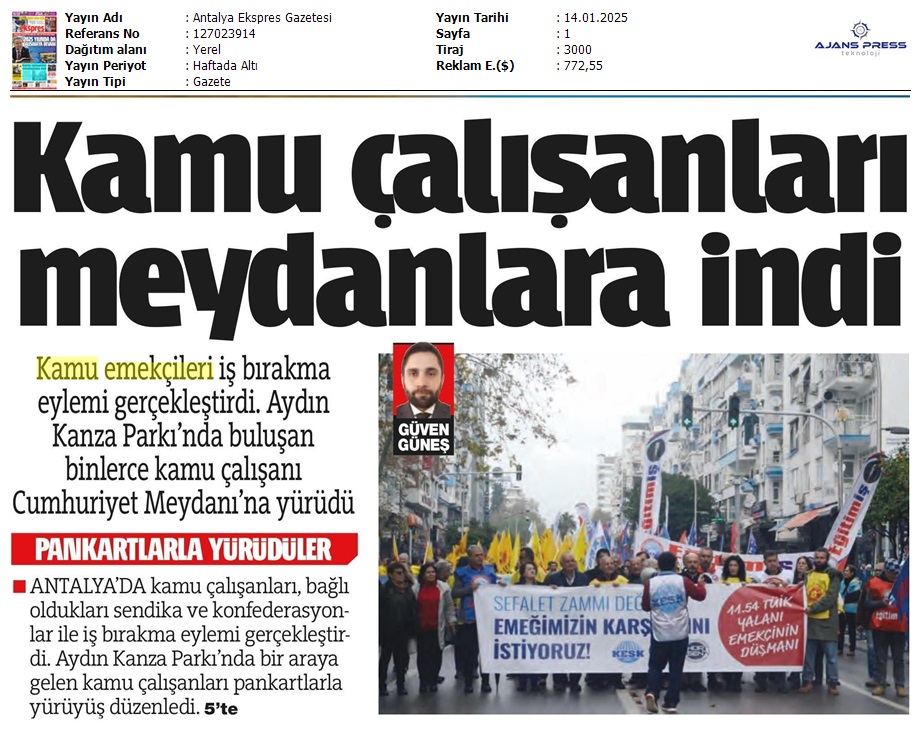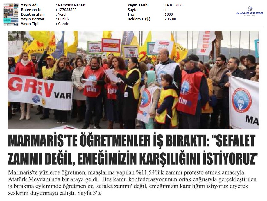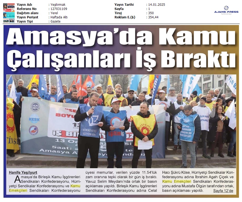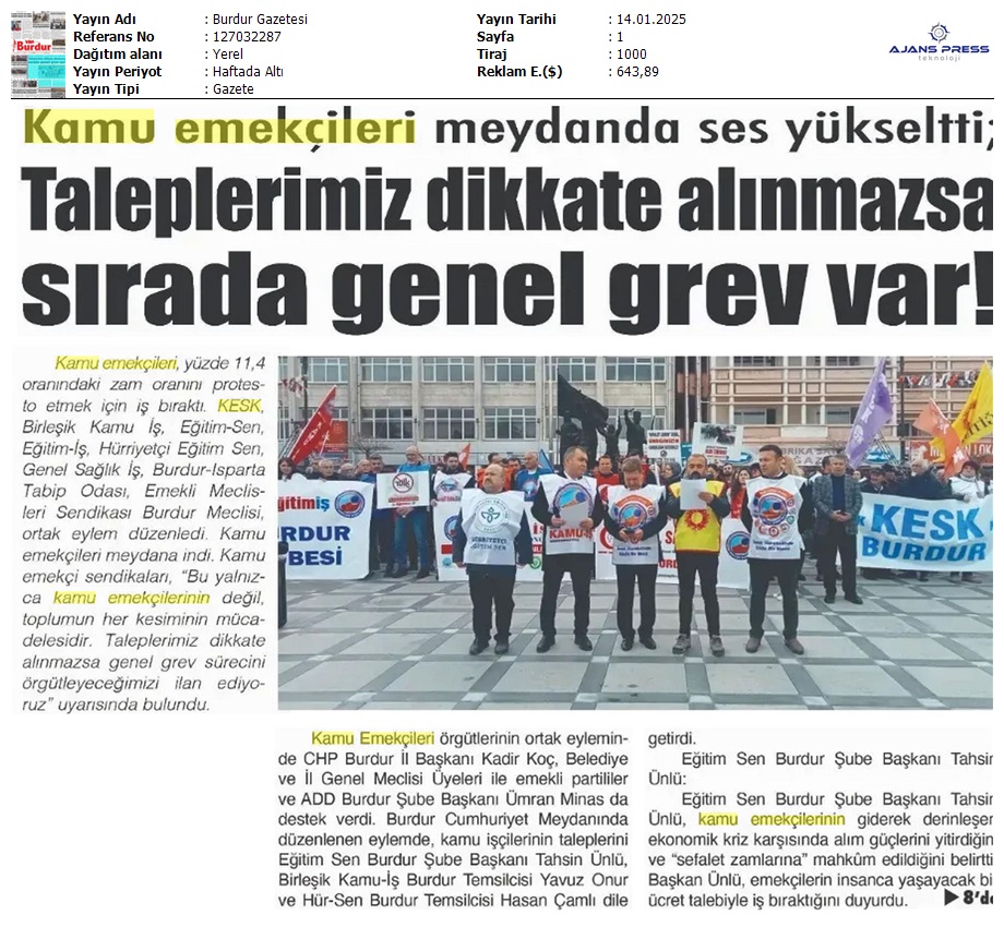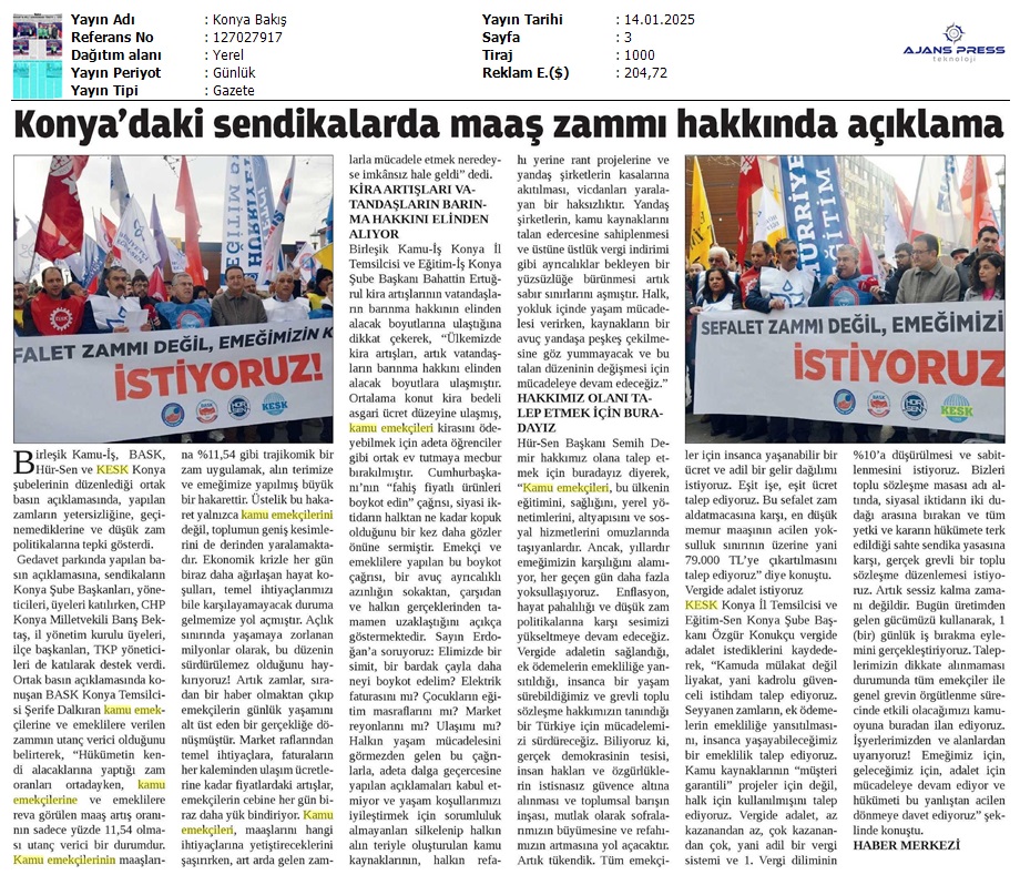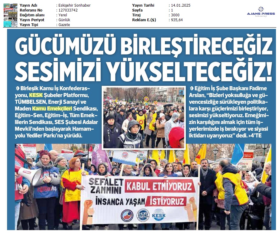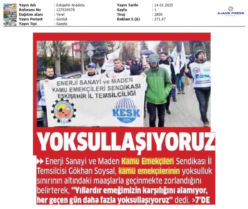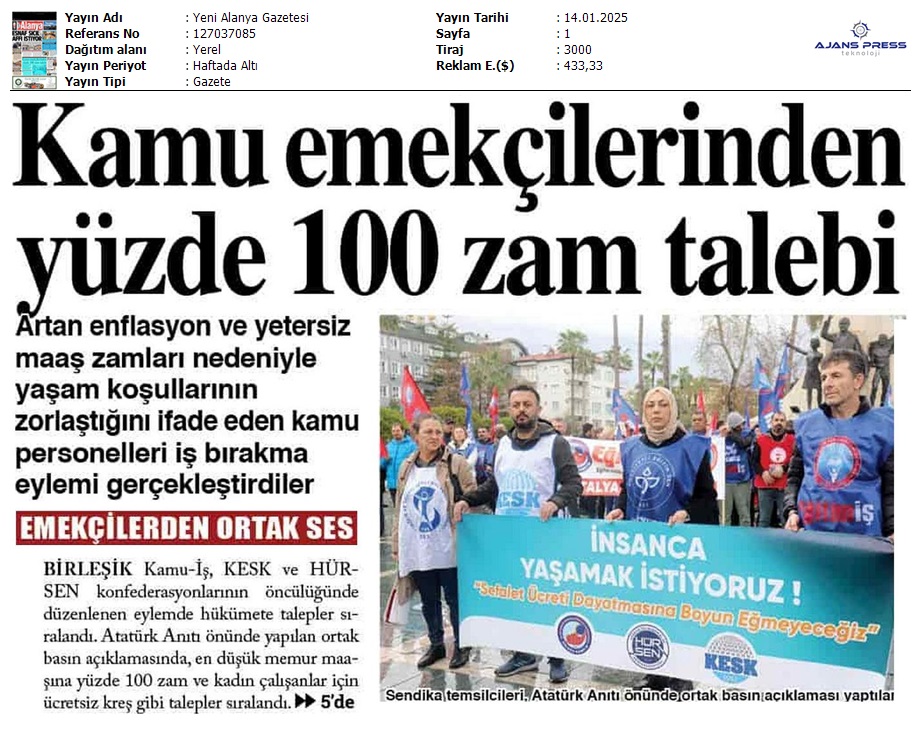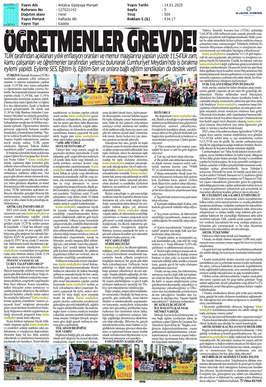 Basında 13 Ocak İş Bırakma Grevimizi