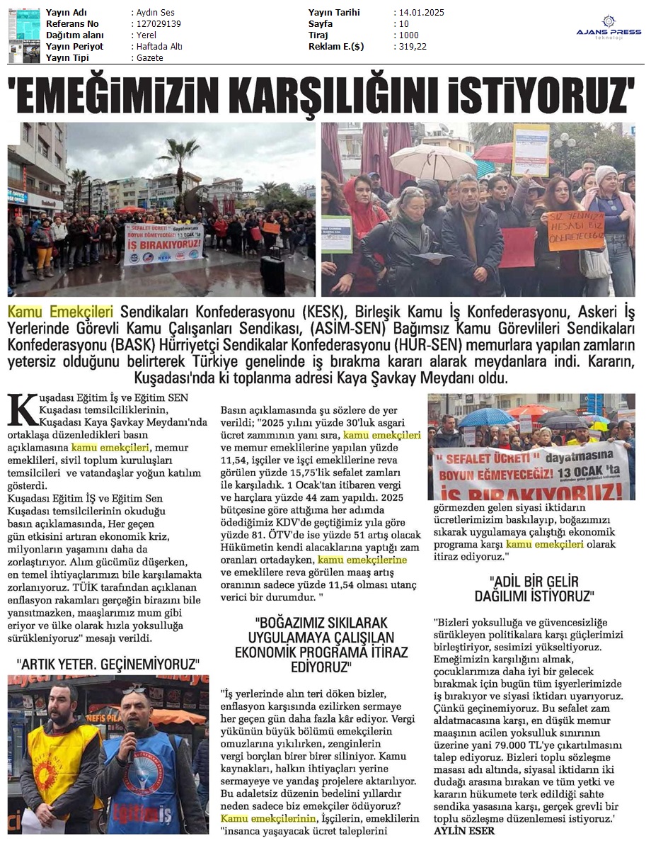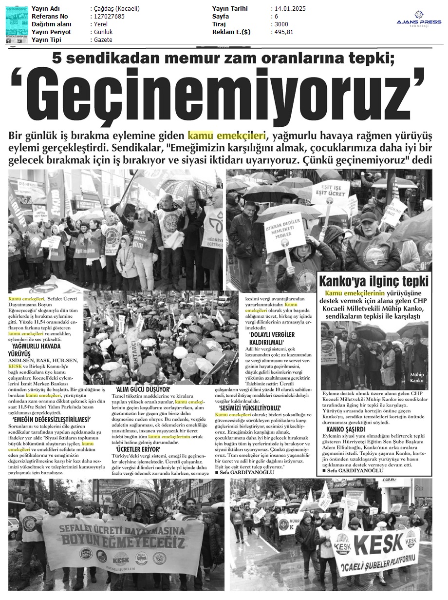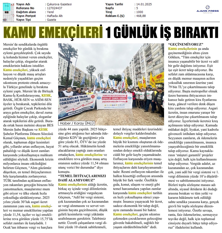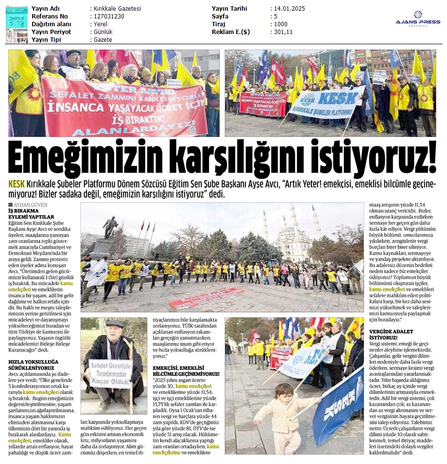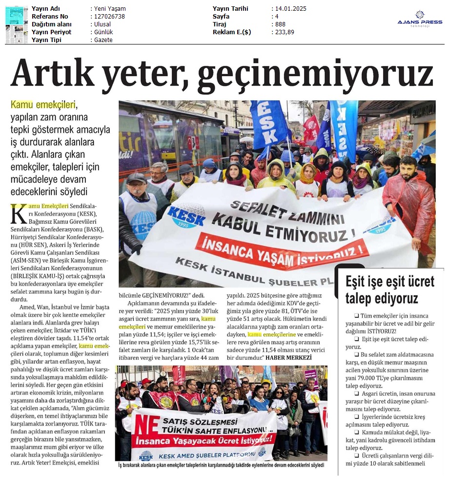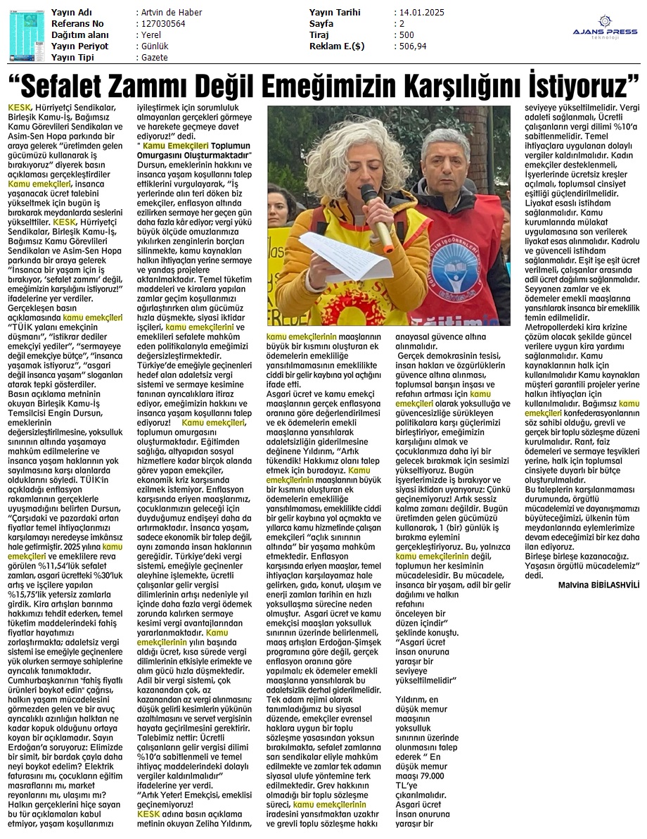 Basında 13 Ocak İş Bırakma Grevimizi