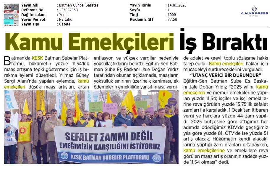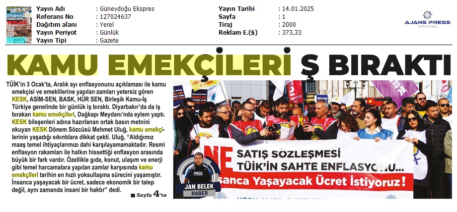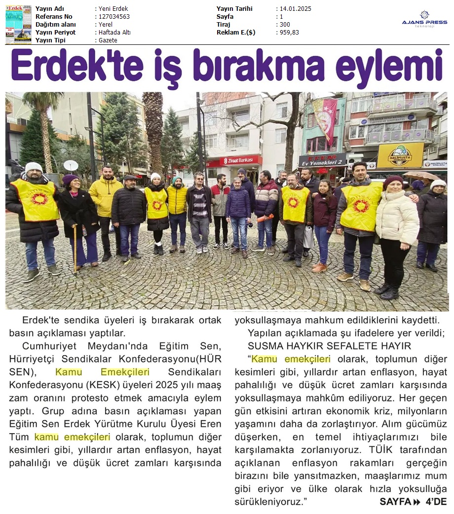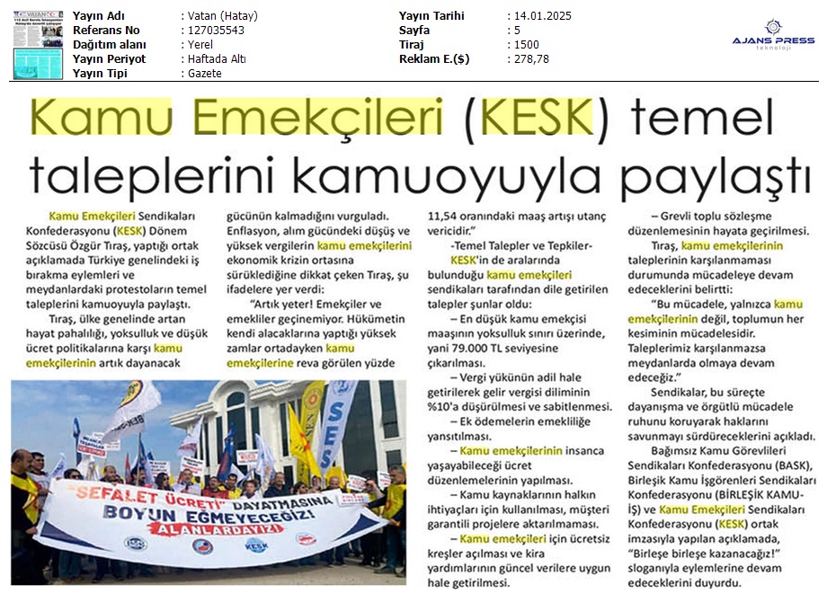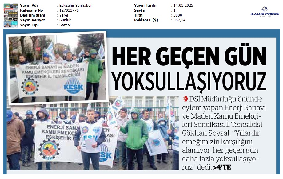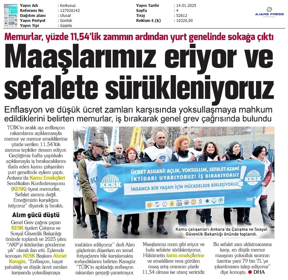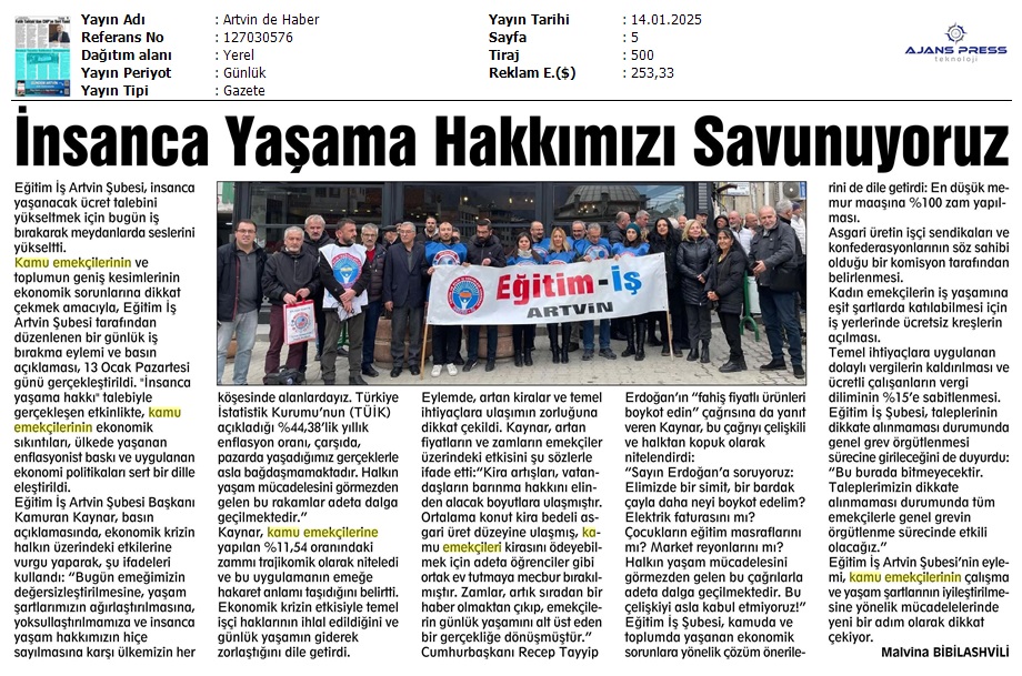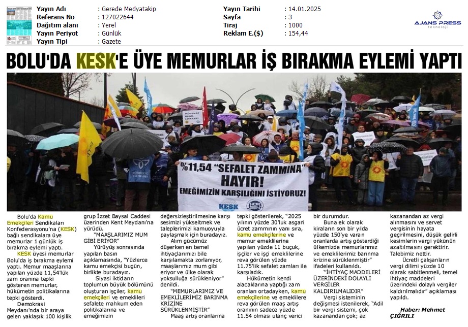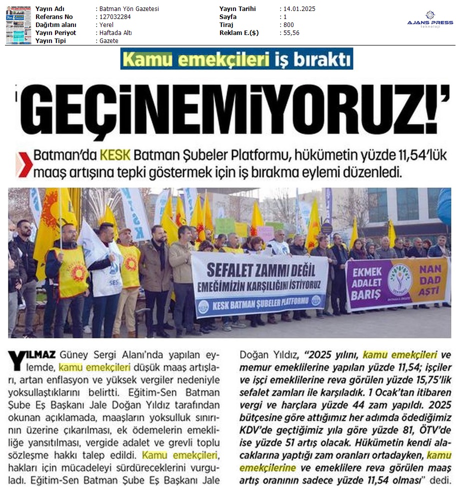 Basında 13 Ocak İş Bırakma Grevimizi